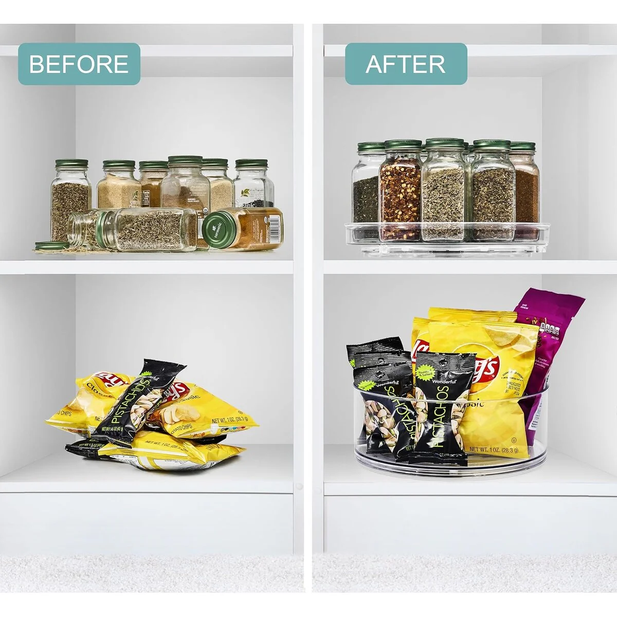 Clear Lazy Susan Organizer: The clear lazy susan organizer design offers easy visibility, making them the ideal refrigerator organizer bins for your kitchen and a practical fridge lazy susan