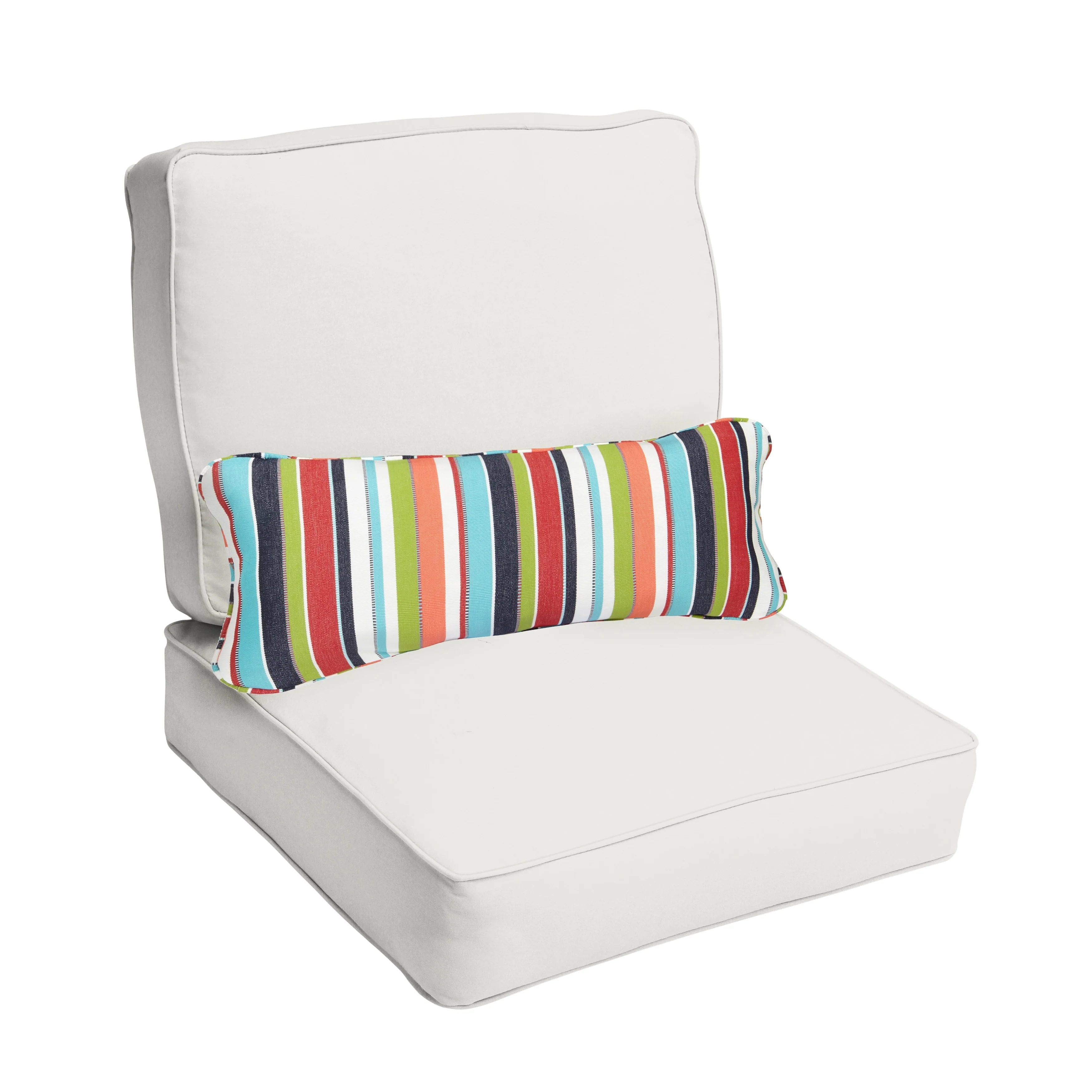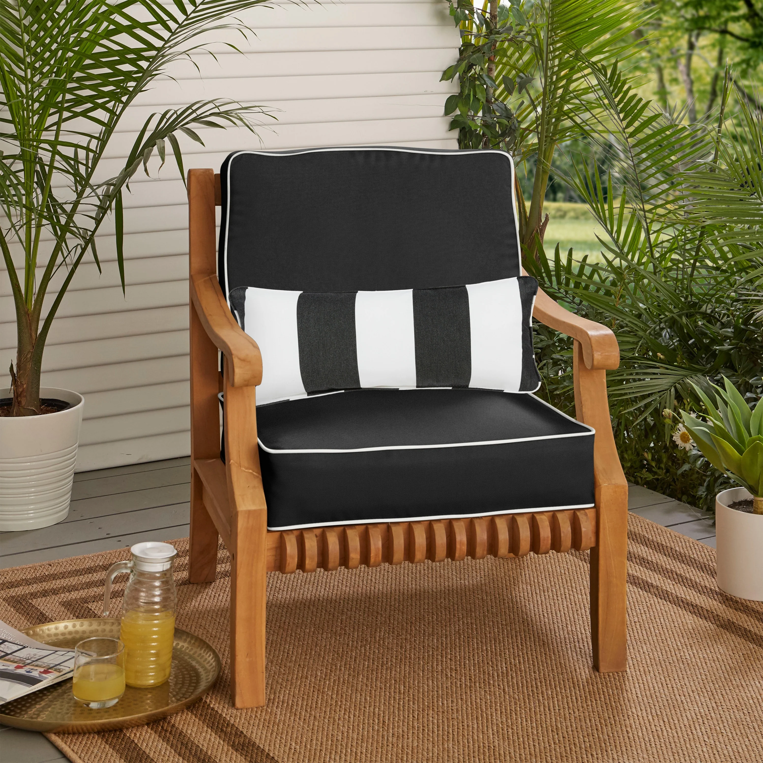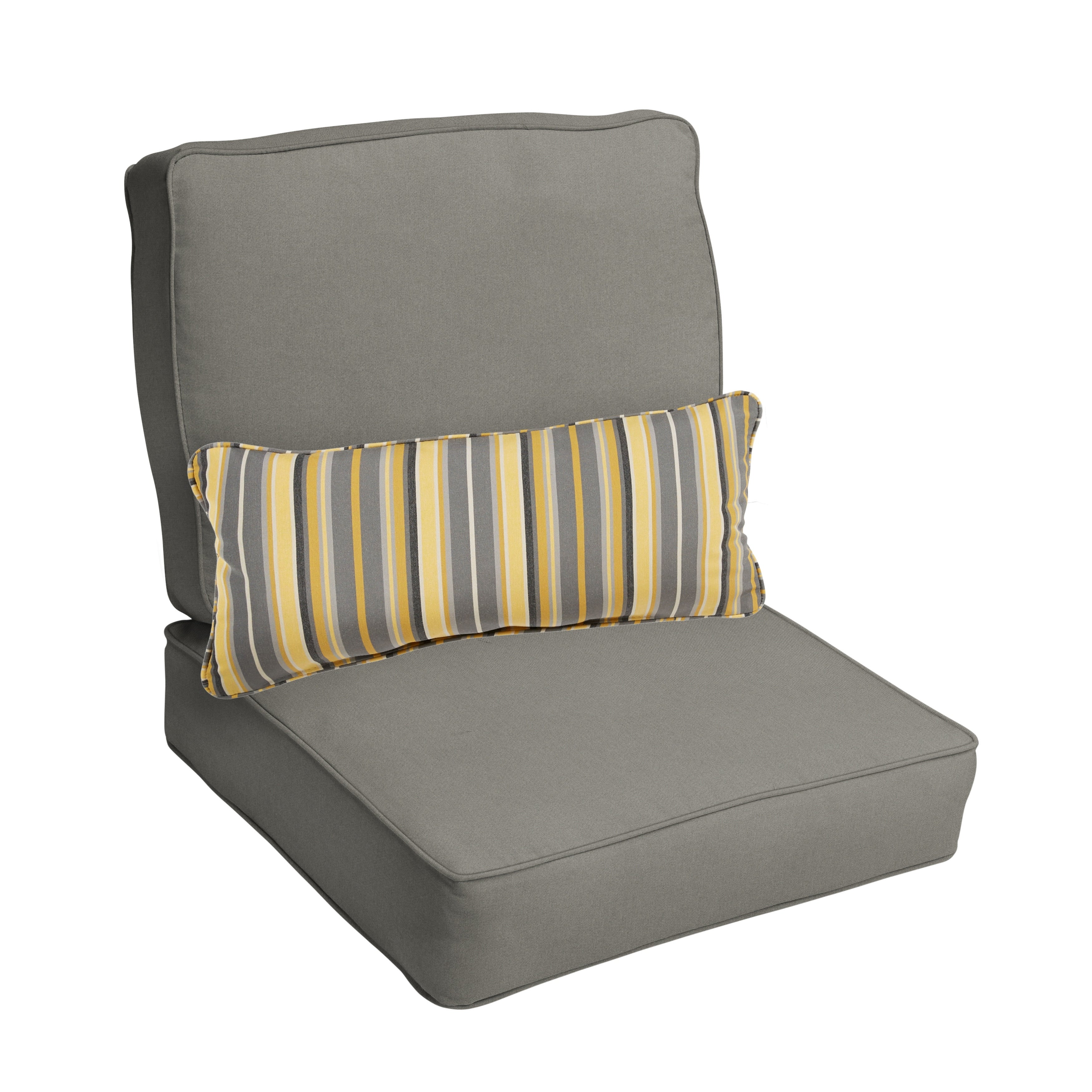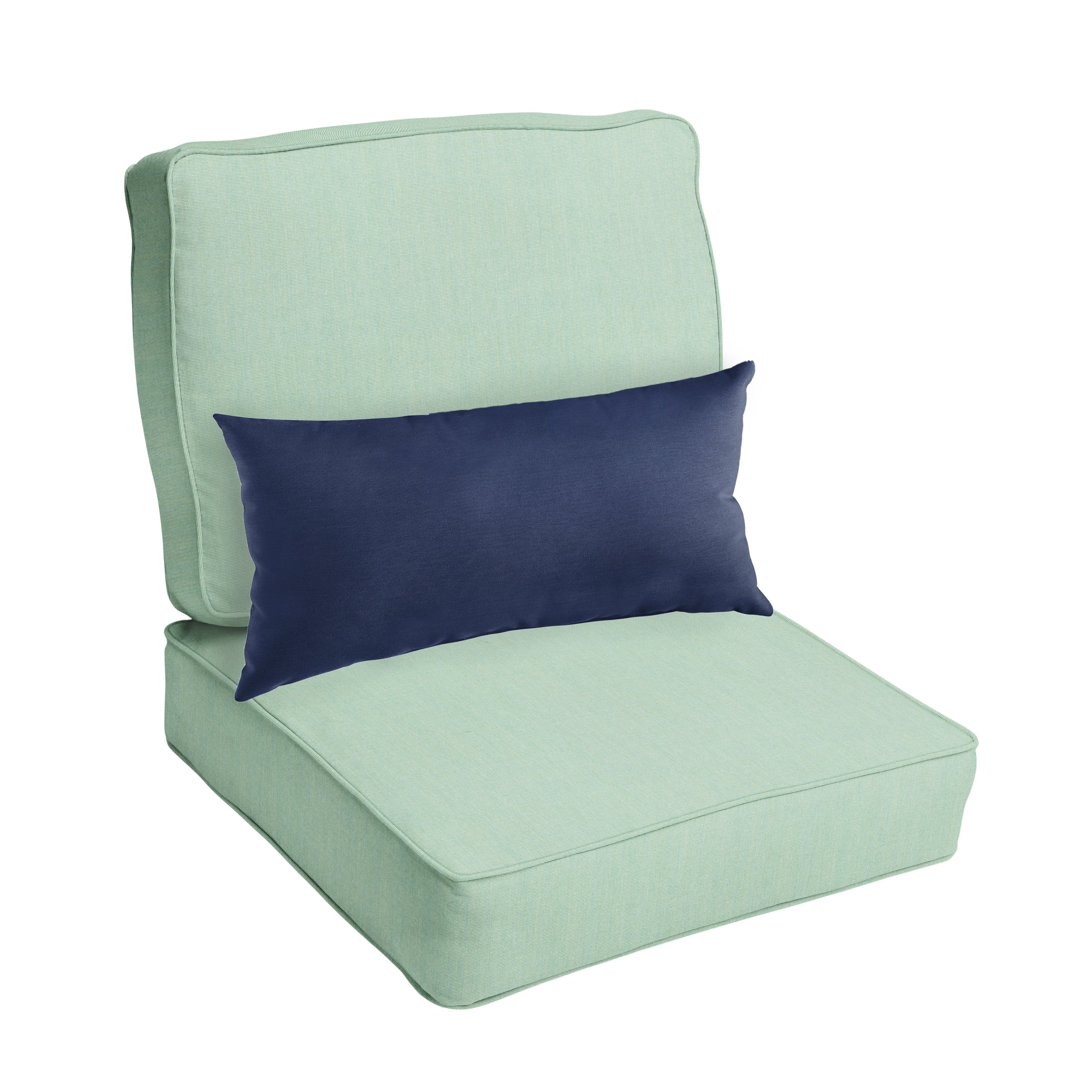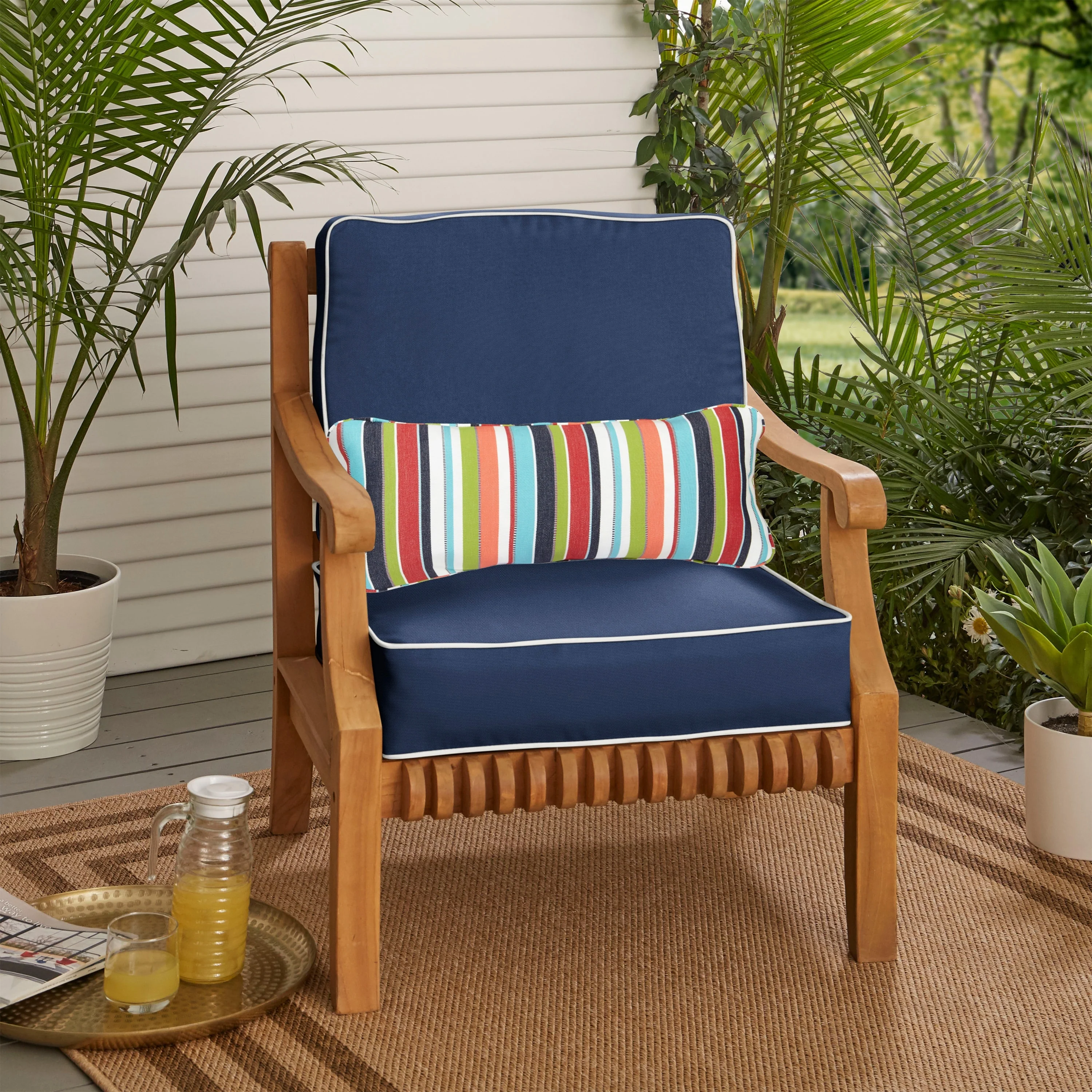 Spend an afternoon in the fresh air while enjoying a comfortable seat with this chair cushion set and lumbar pillow. The lumbar pillow supports the small of your back to minimize aches and pains. Featuring Sunbrella material, the cushions are weather, UV, mildew, and fade-resistant for durability and a long-lasting visual appeal.