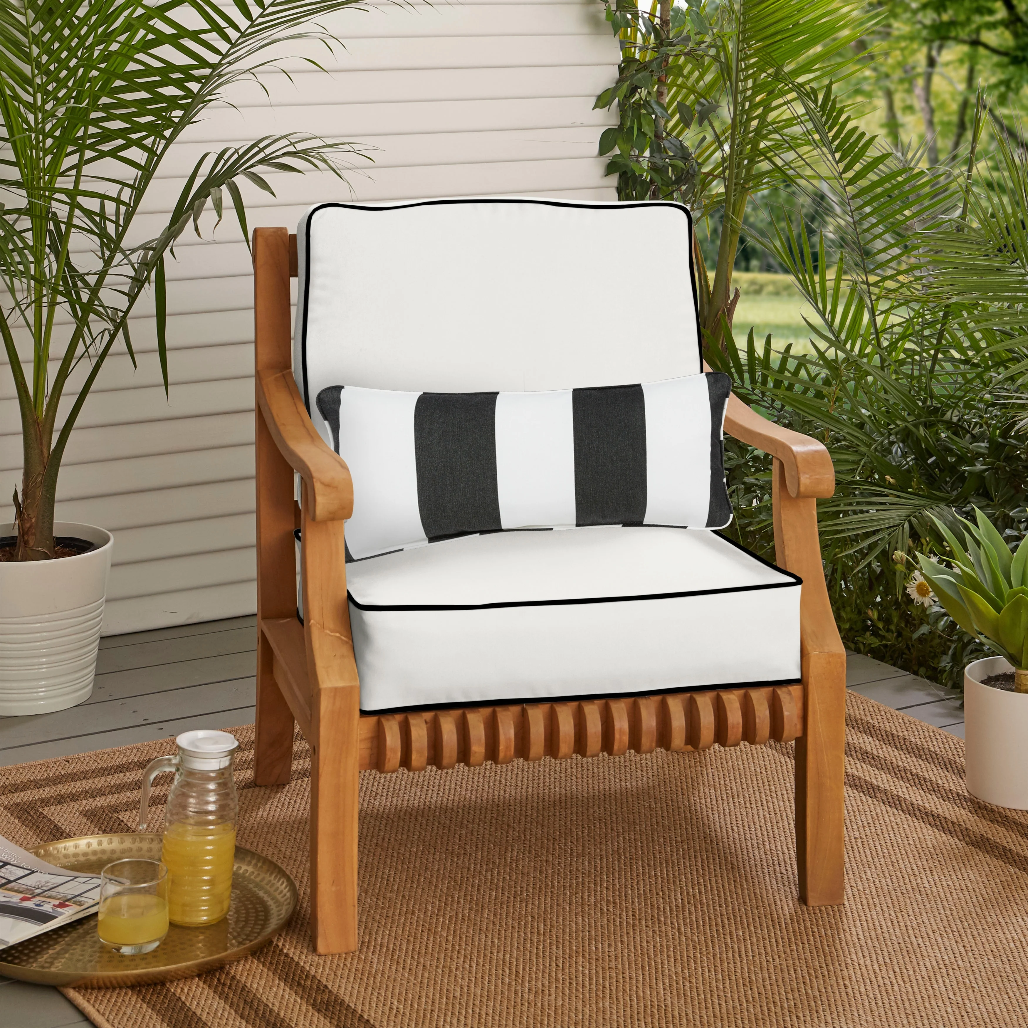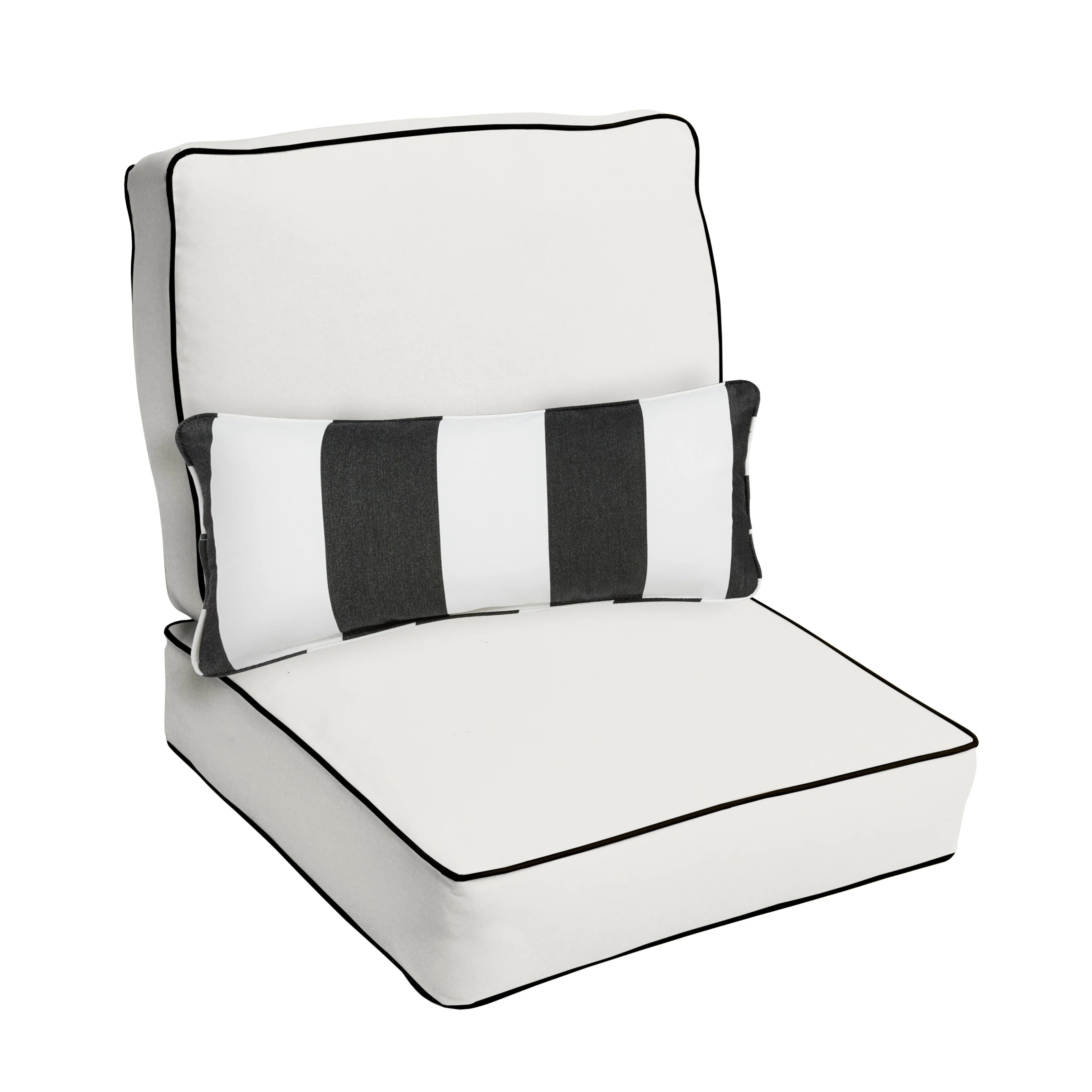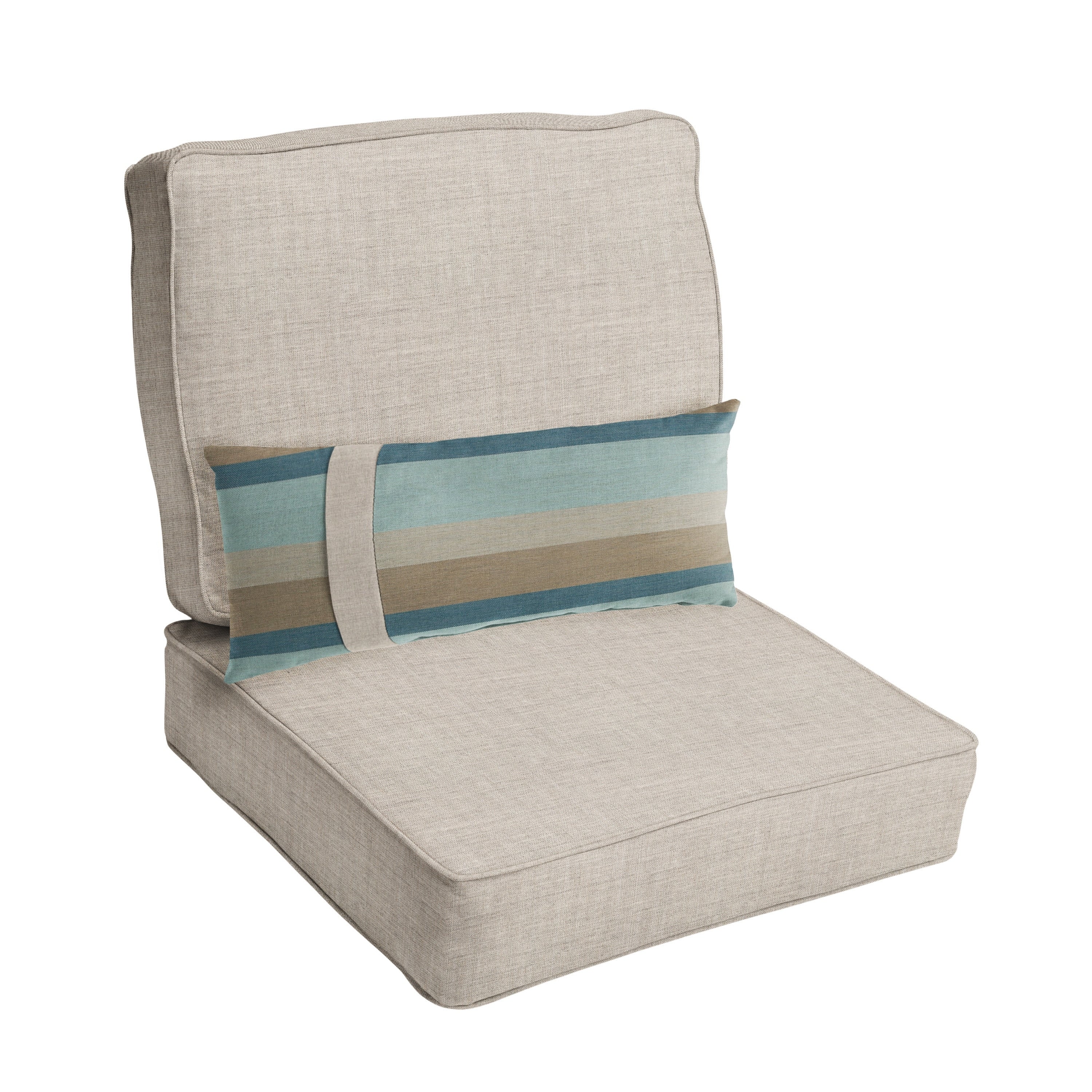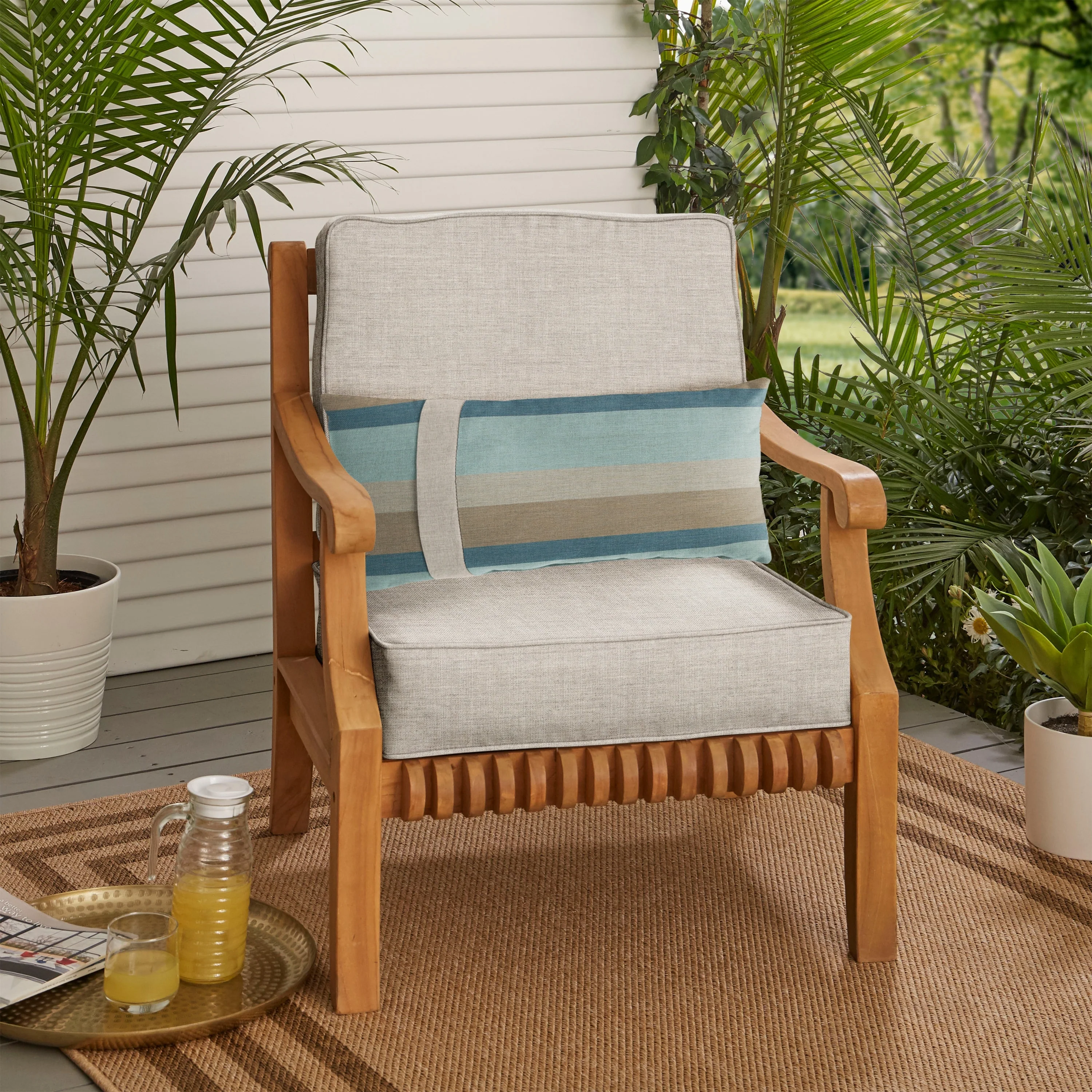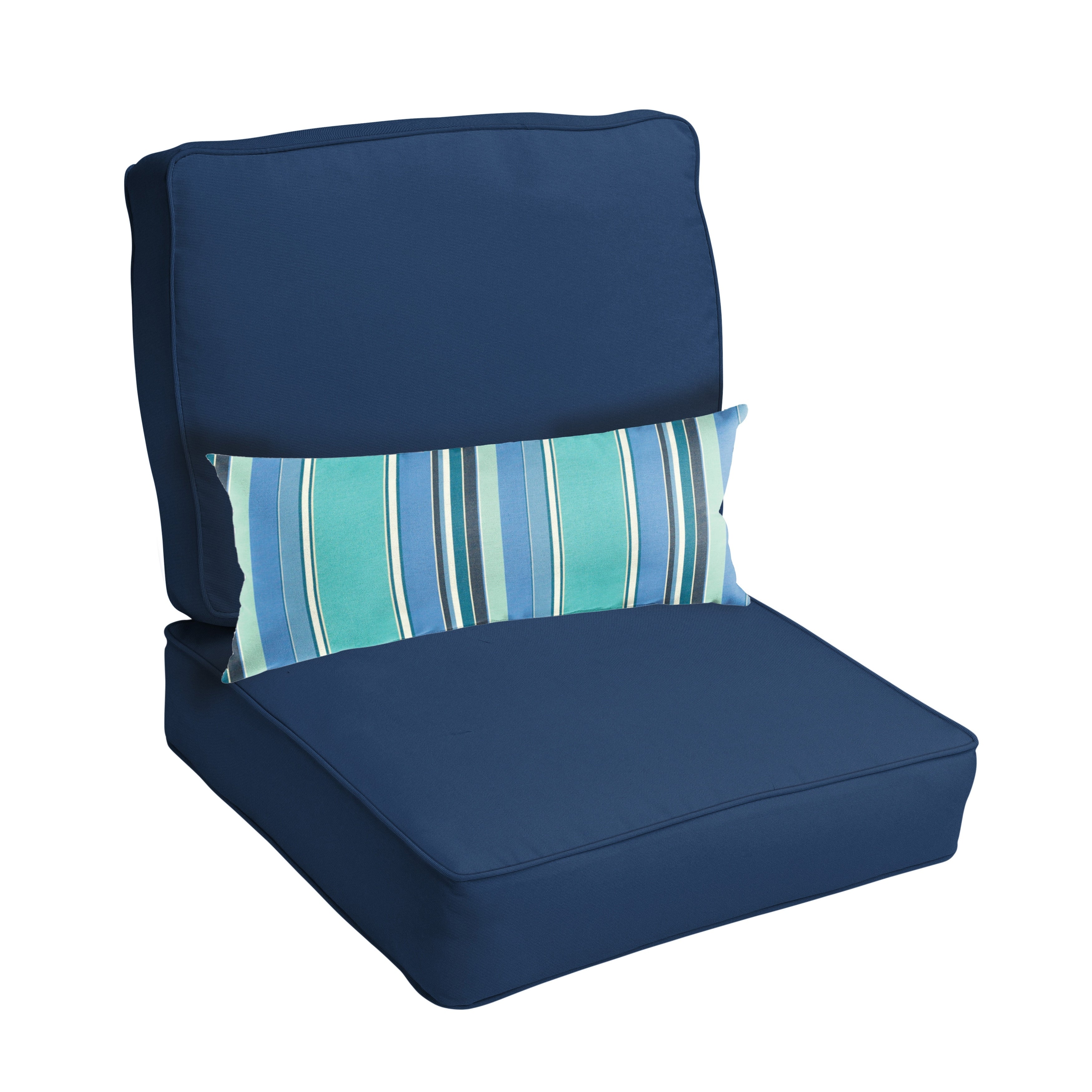 Spend an afternoon in the fresh air while enjoying a comfortable seat with this chair cushion set and lumbar pillow. The lumbar pillow supports the small of your back to minimize aches and pains. Featuring Sunbrella material, the cushions are weather, UV, mildew, and fade-resistant for durability and a long-lasting visual appeal.