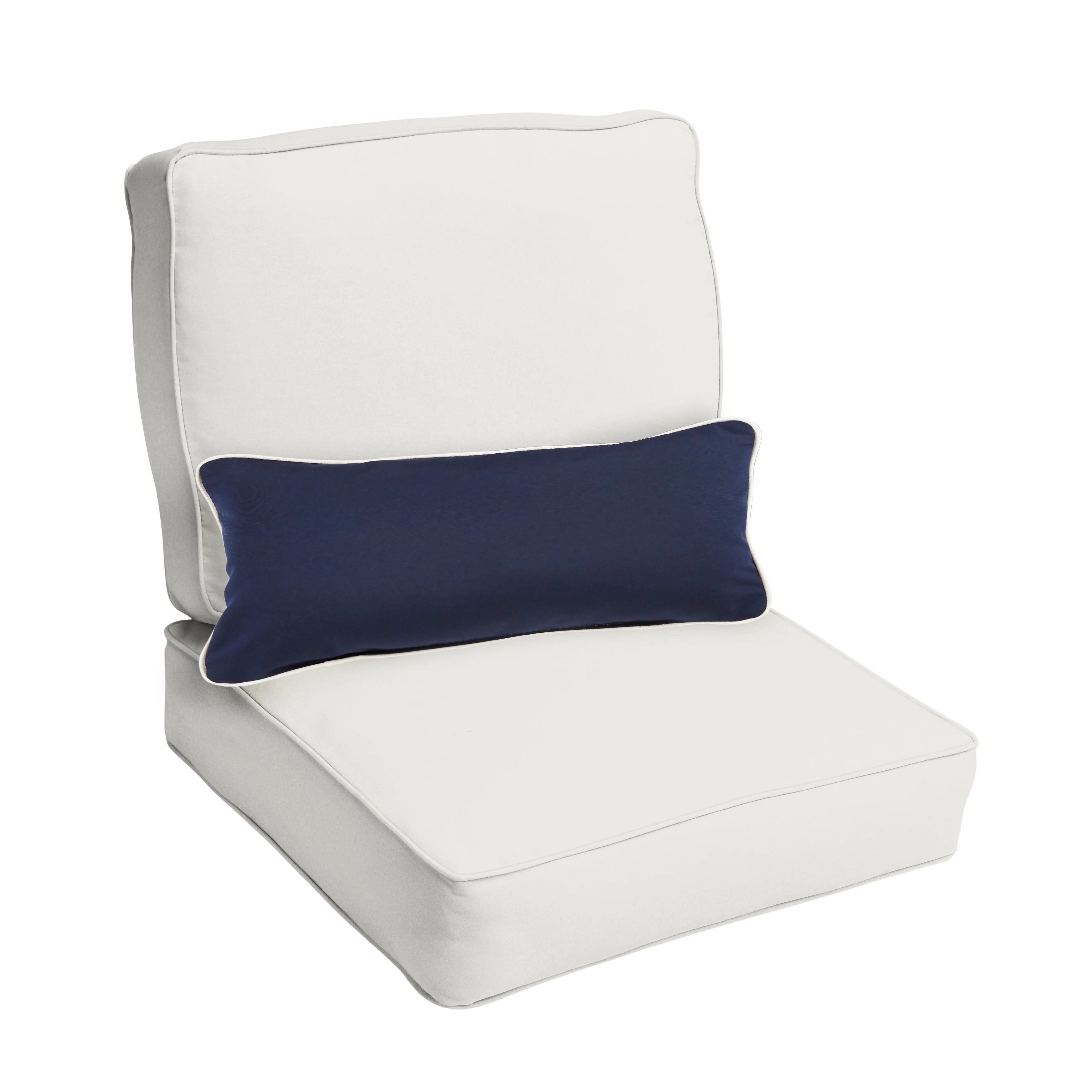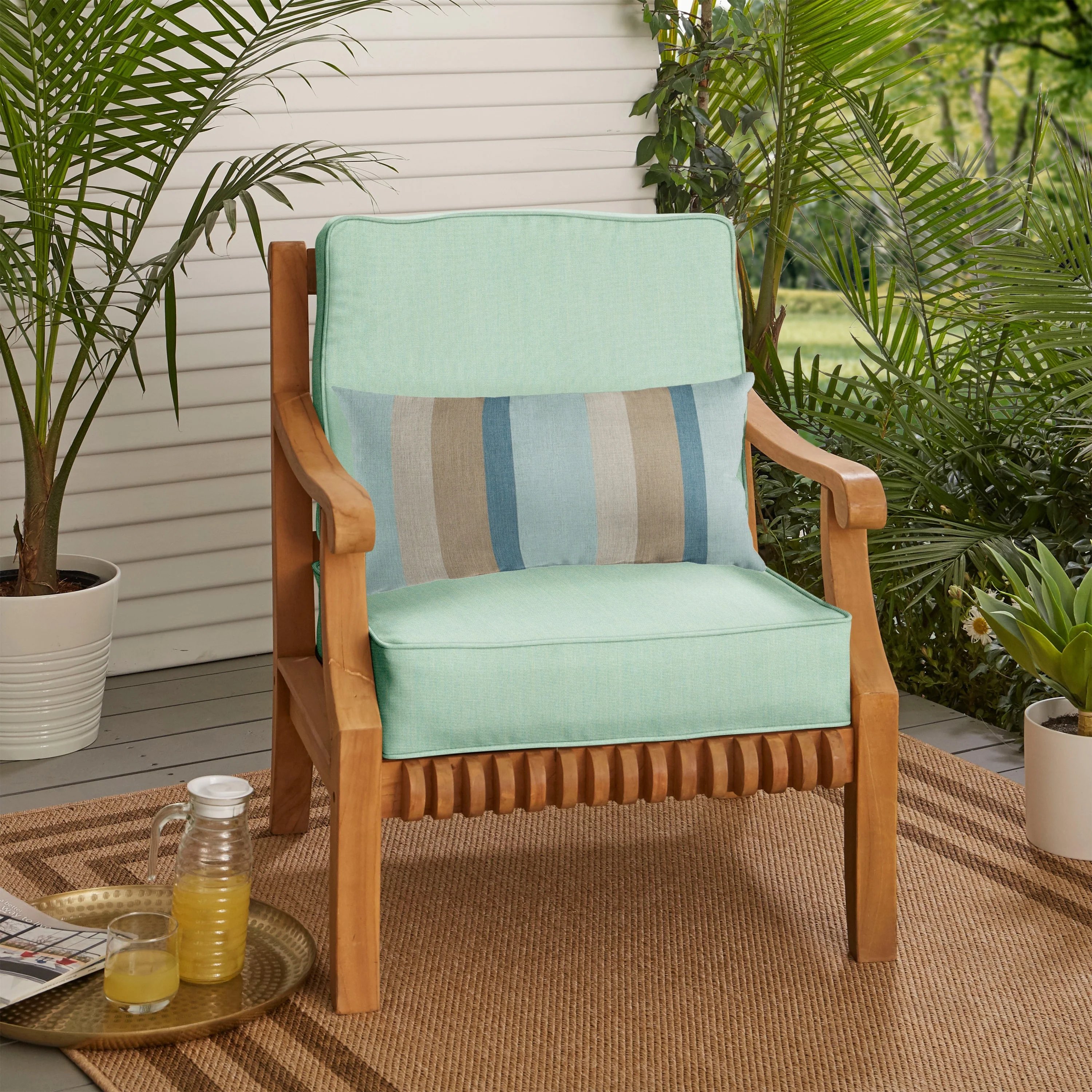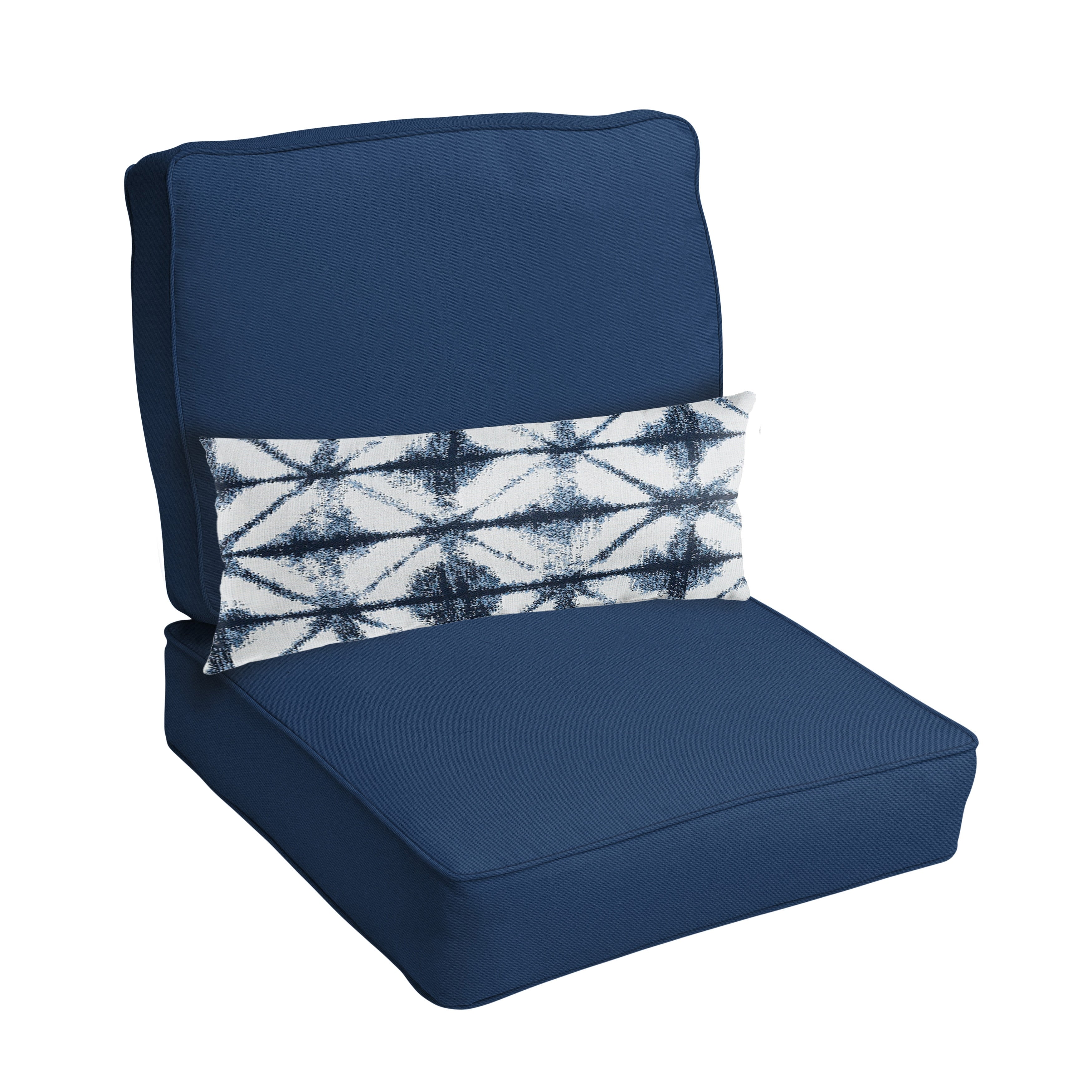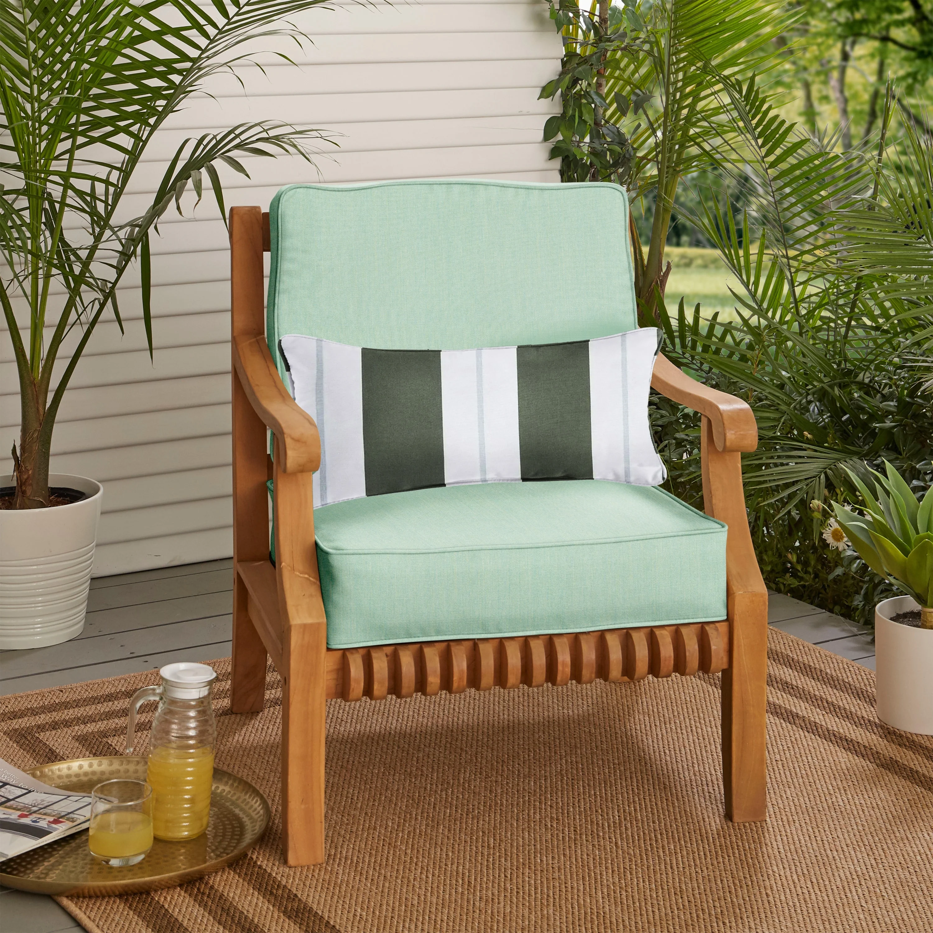 Spend an afternoon in the fresh air while enjoying a comfortable seat with this chair cushion set and lumbar pillow. The lumbar pillow supports the small of your back to minimize aches and pains. Featuring Sunbrella material, the cushions are weather, UV, mildew, and fade-resistant for durability and a long-lasting visual appeal.