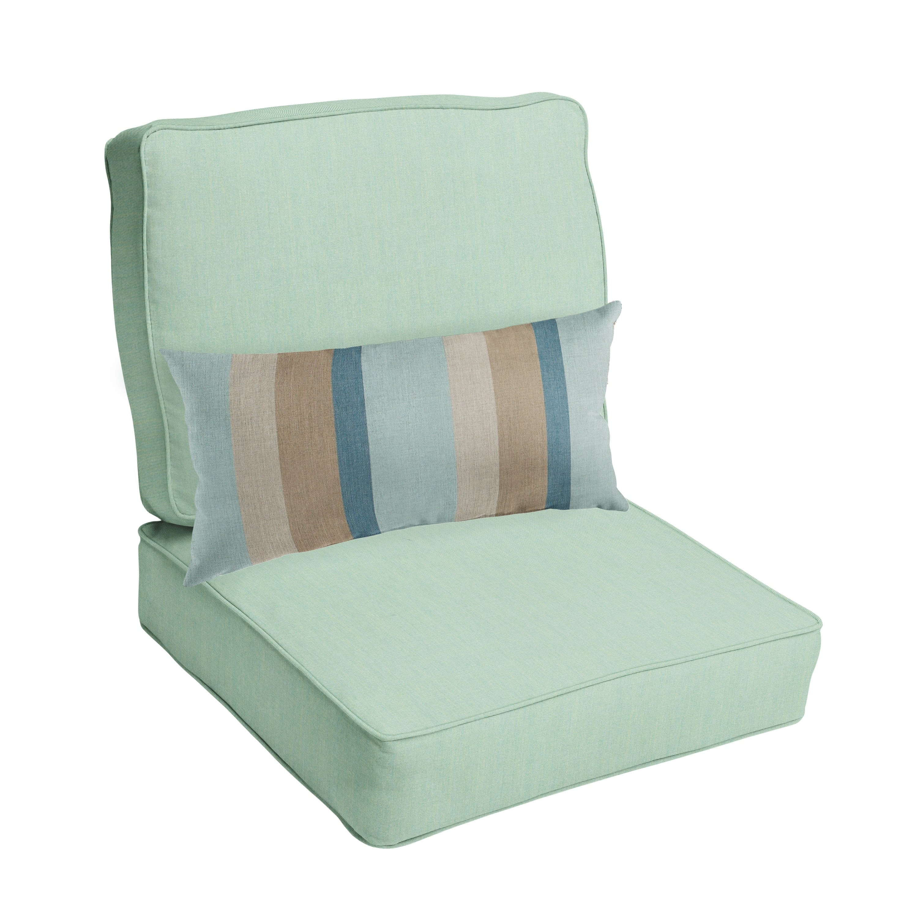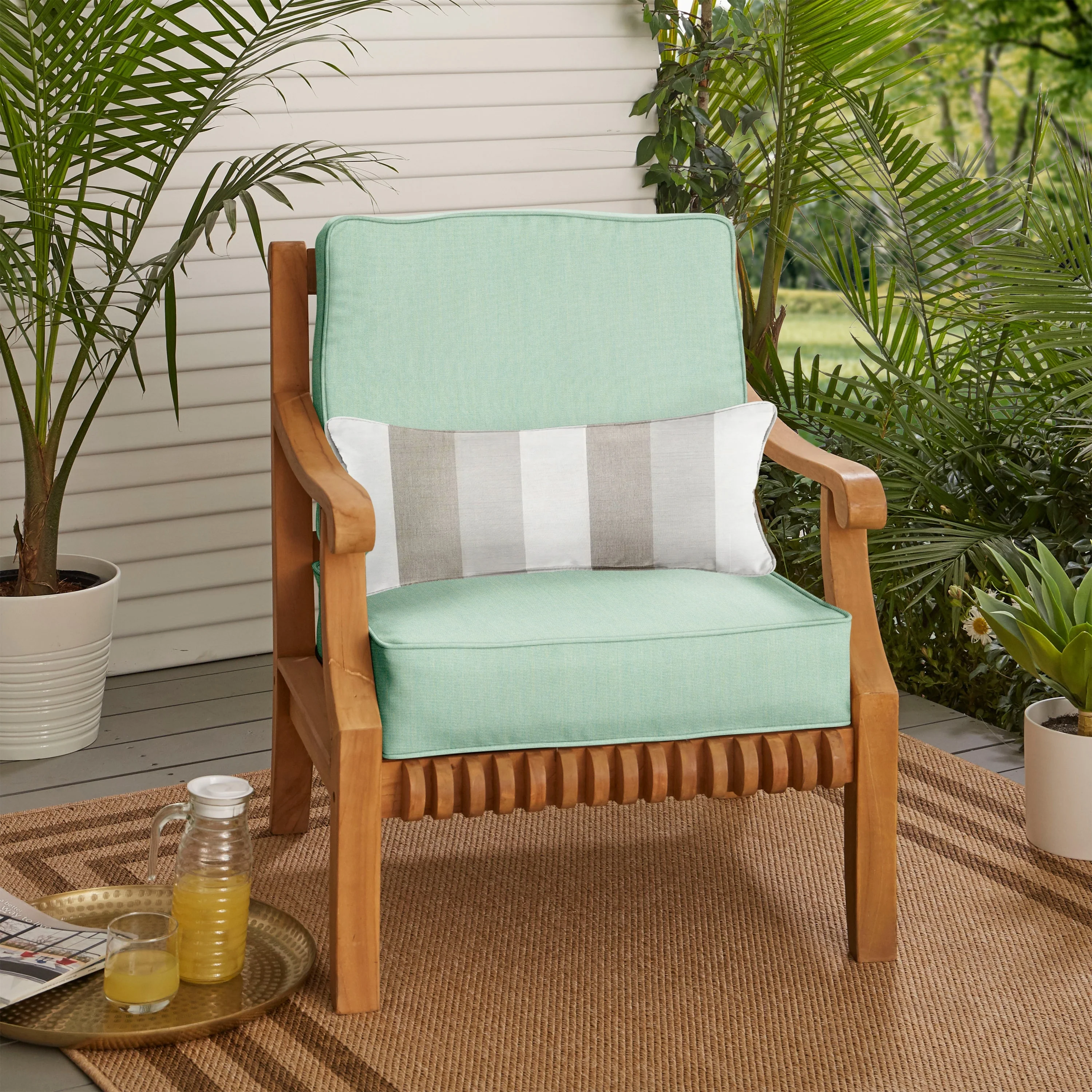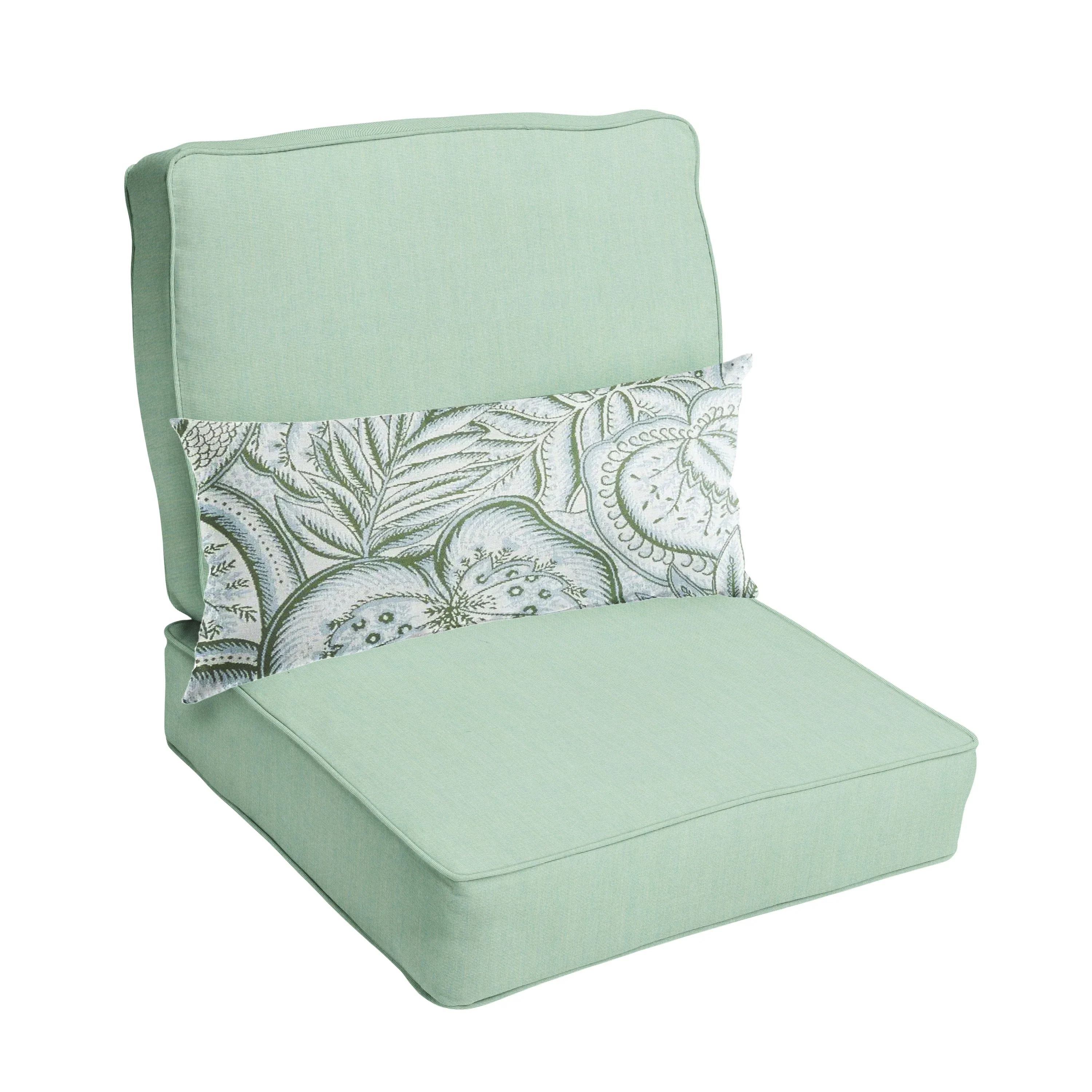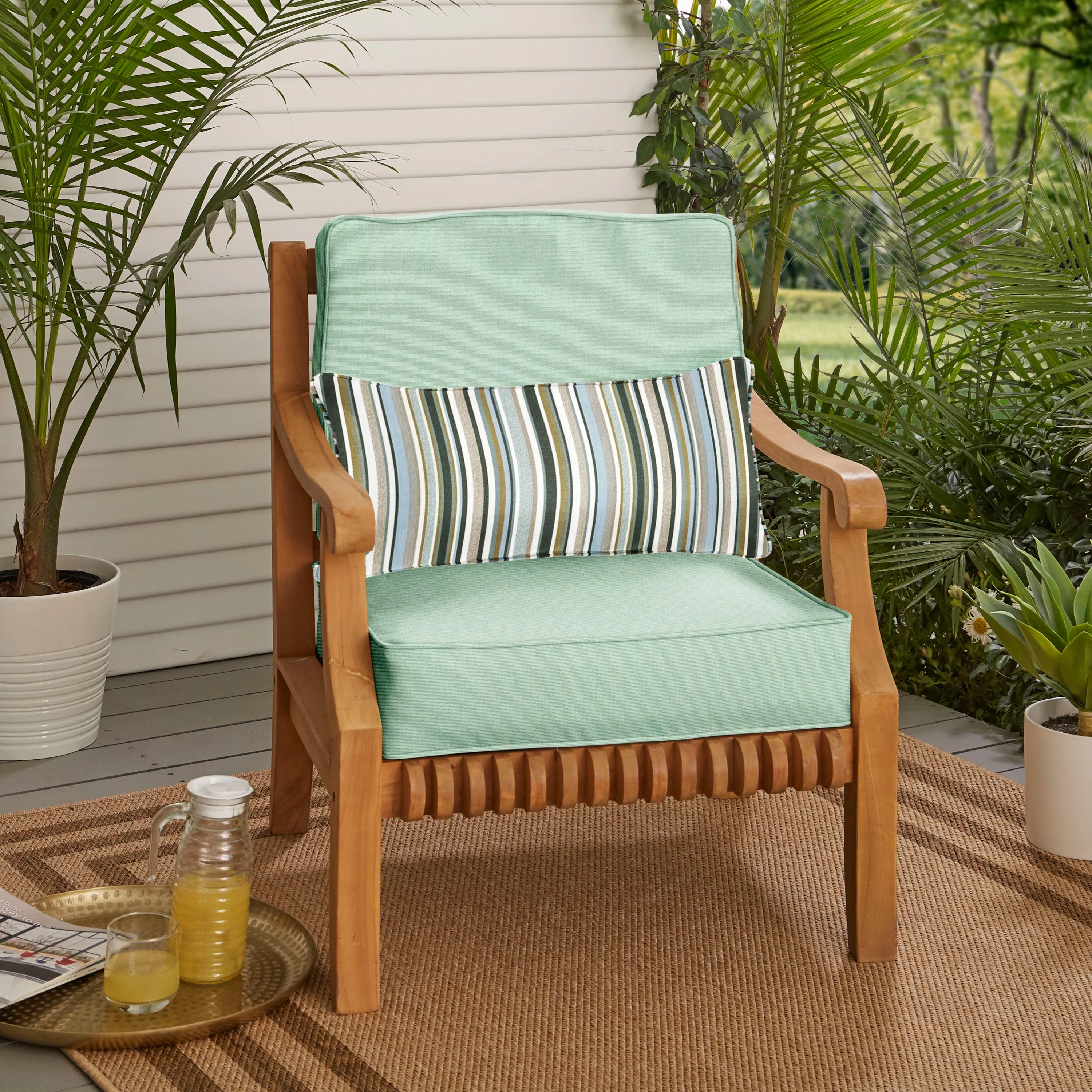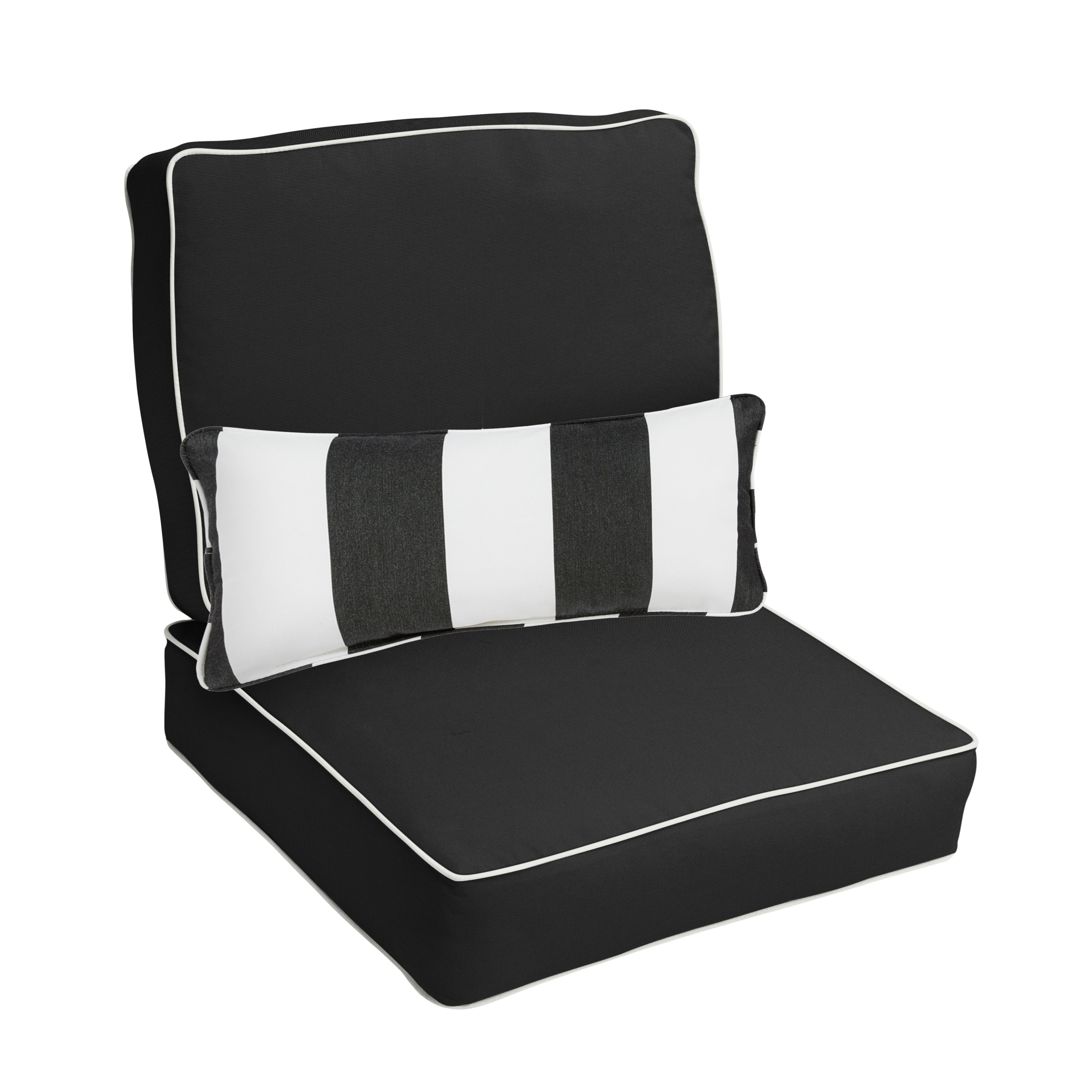 Spend an afternoon in the fresh air while enjoying a comfortable seat with this chair cushion set and lumbar pillow. The lumbar pillow supports the small of your back to minimize aches and pains. Featuring Sunbrella material, the cushions are weather, UV, mildew, and fade-resistant for durability and a long-lasting visual appeal.