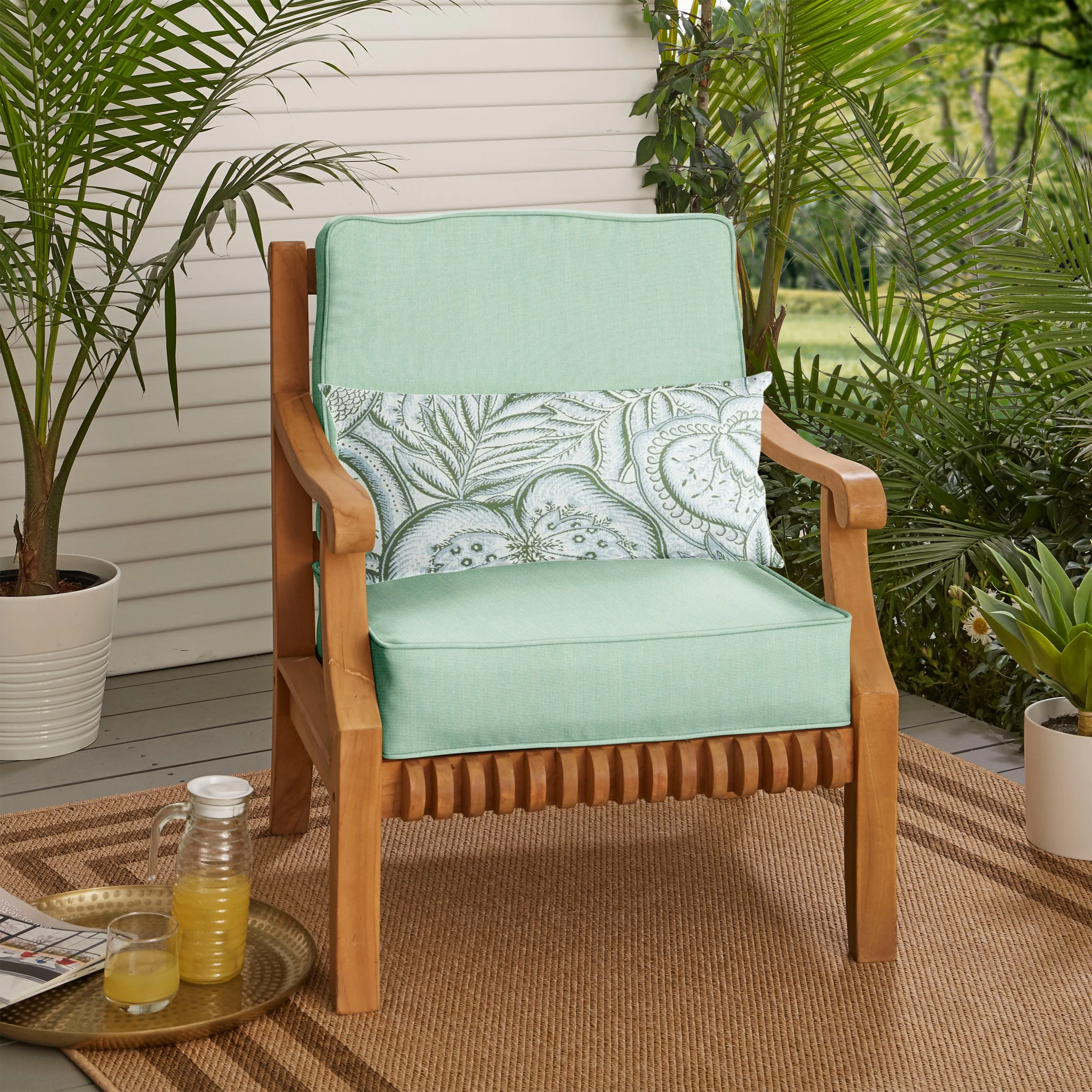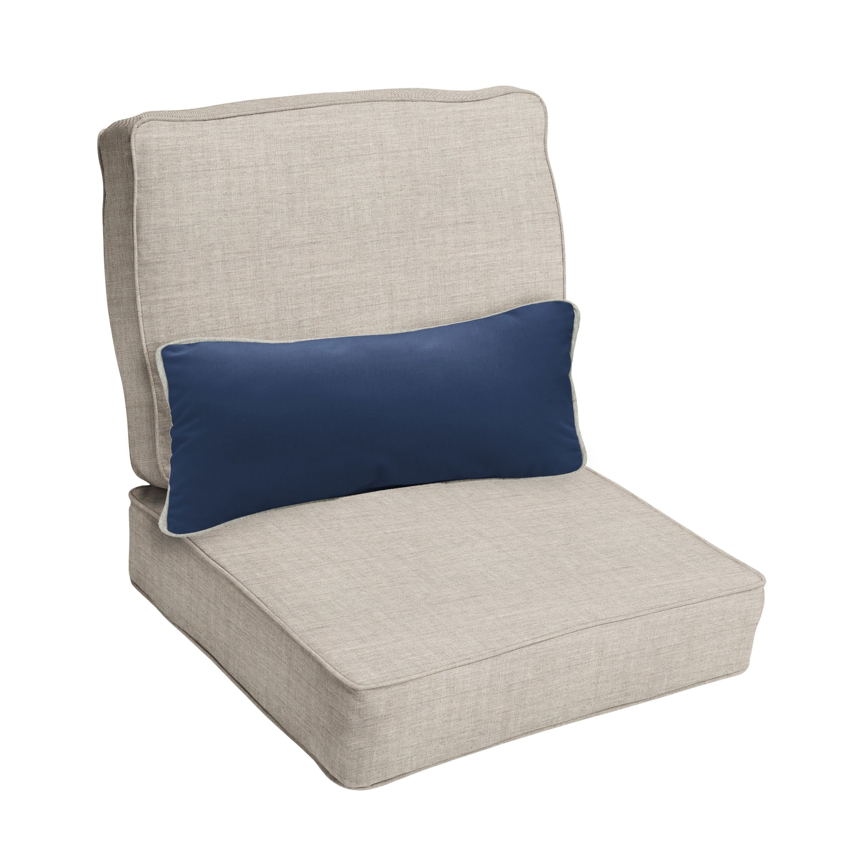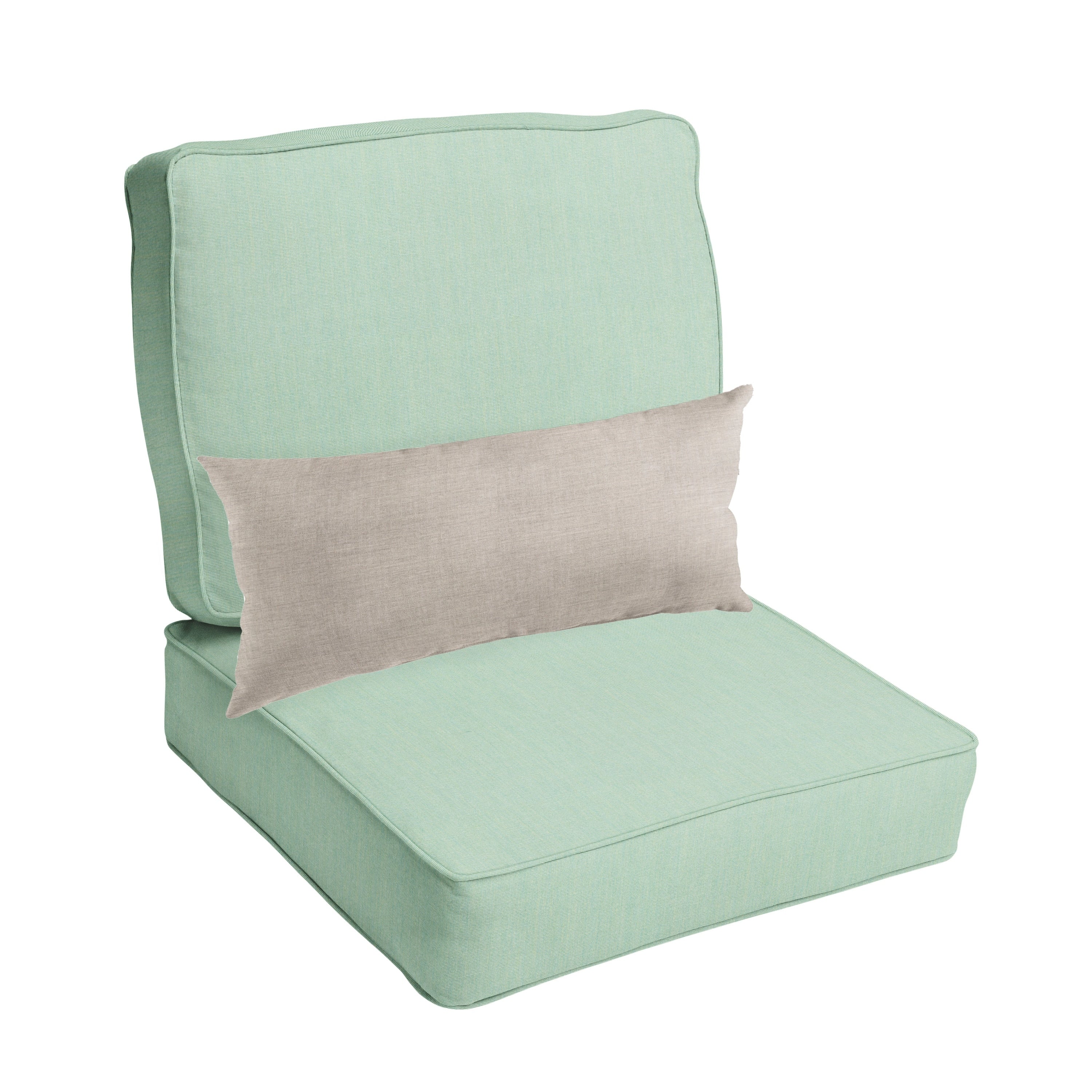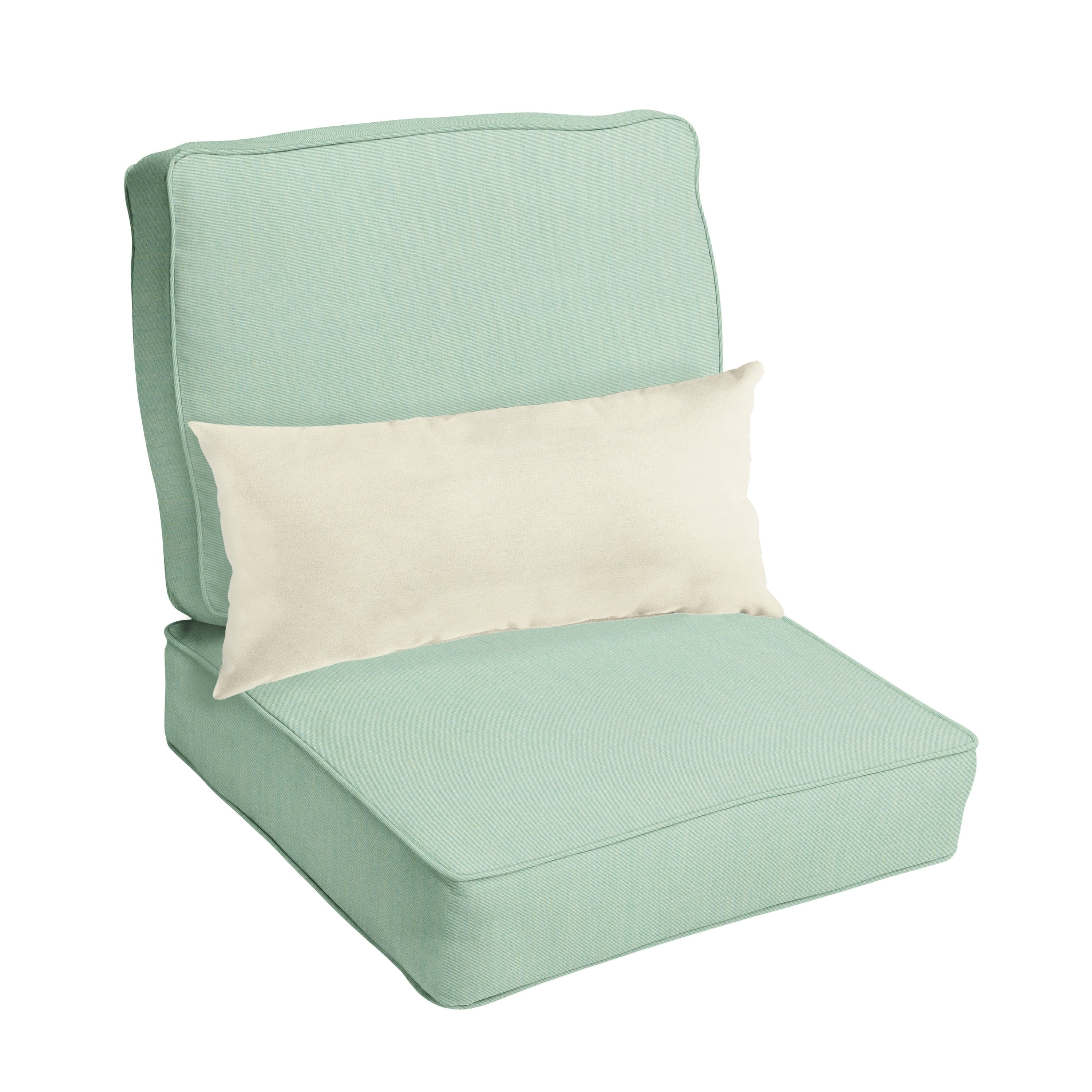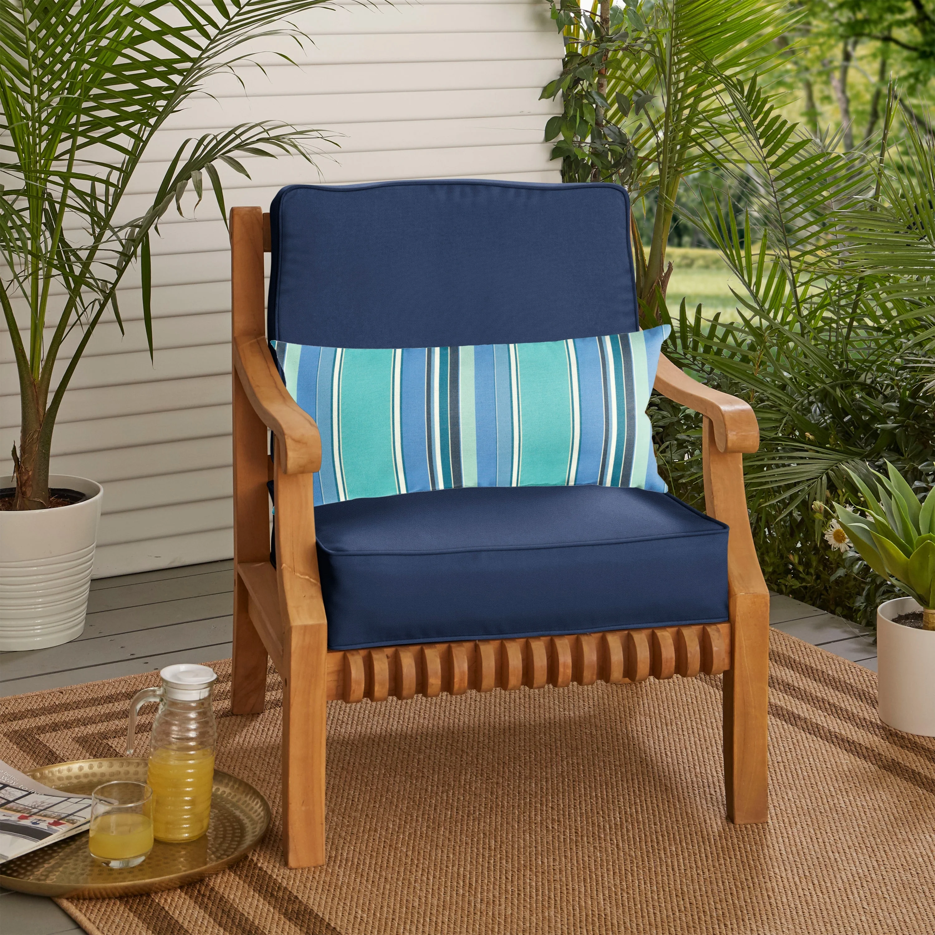 Spend an afternoon in the fresh air while enjoying a comfortable seat with this chair cushion set and lumbar pillow. The lumbar pillow supports the small of your back to minimize aches and pains. Featuring Sunbrella material, the cushions are weather, UV, mildew, and fade-resistant for durability and a long-lasting visual appeal.
