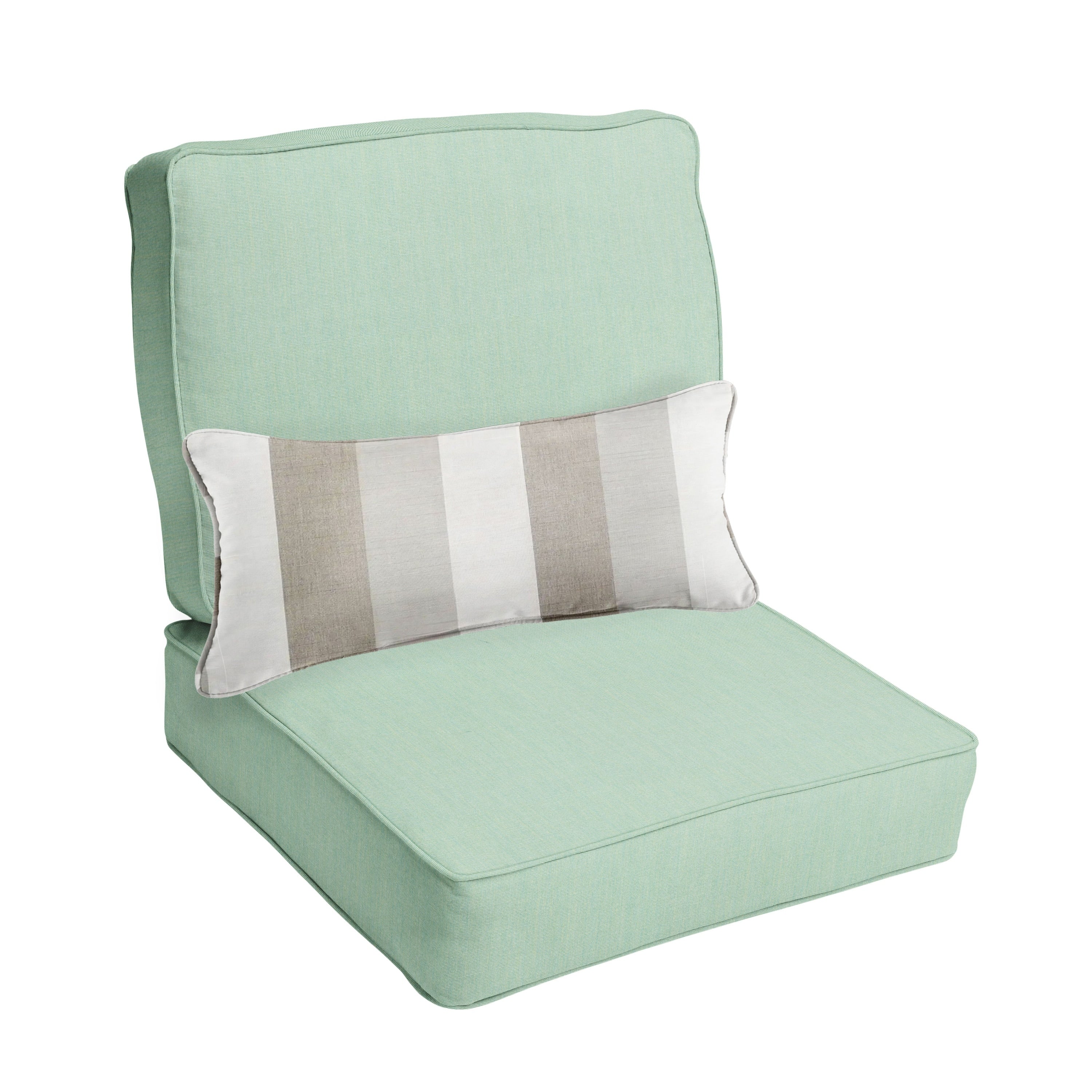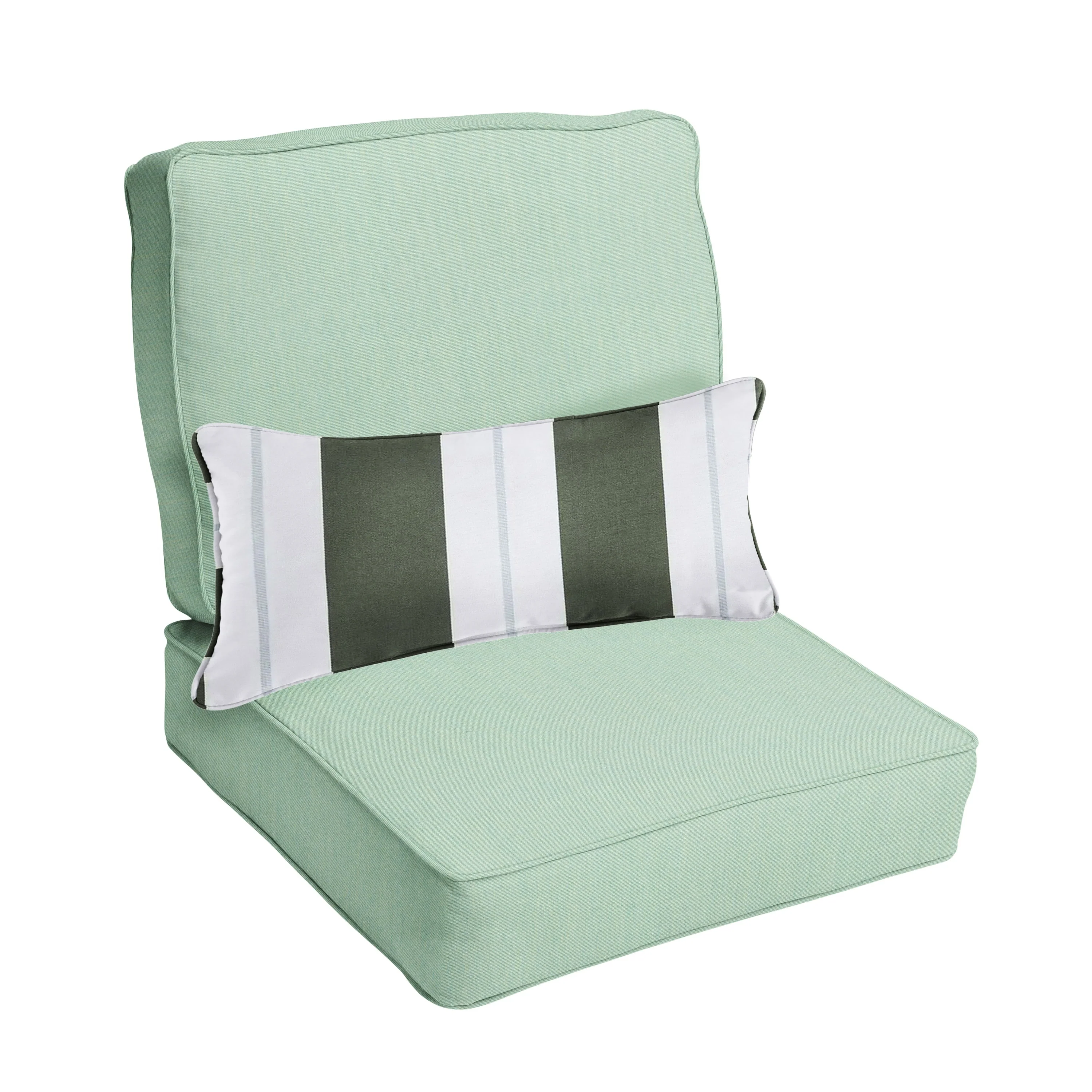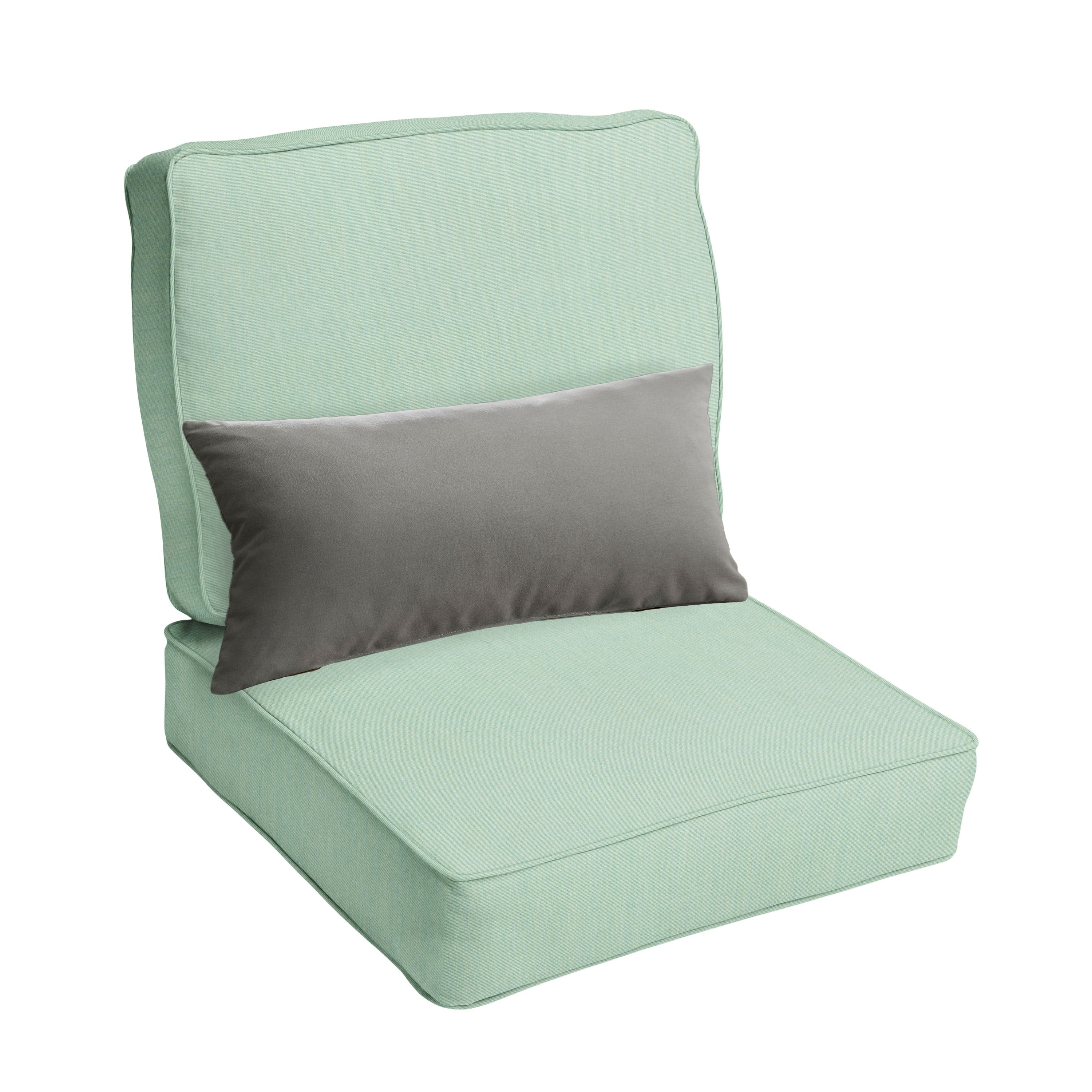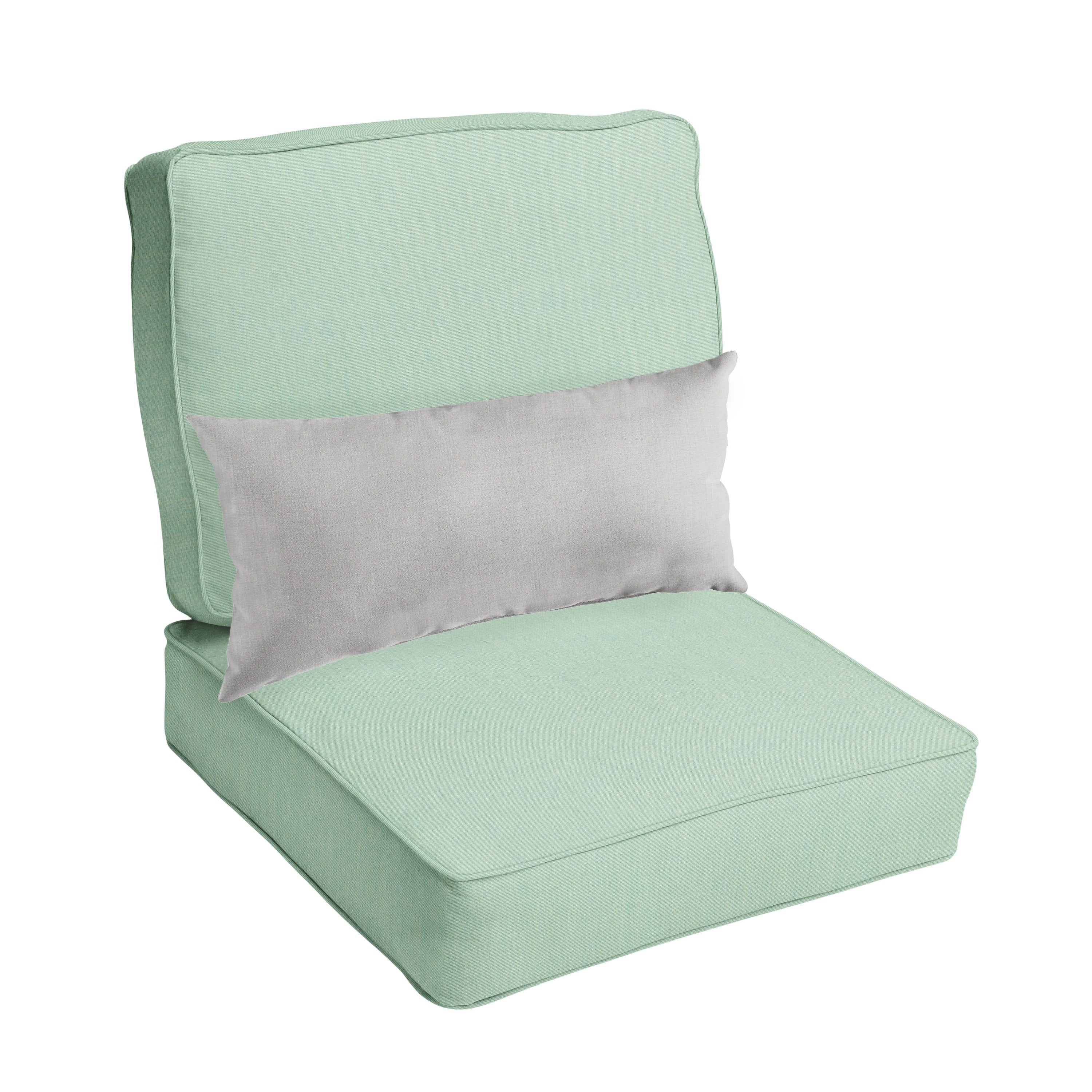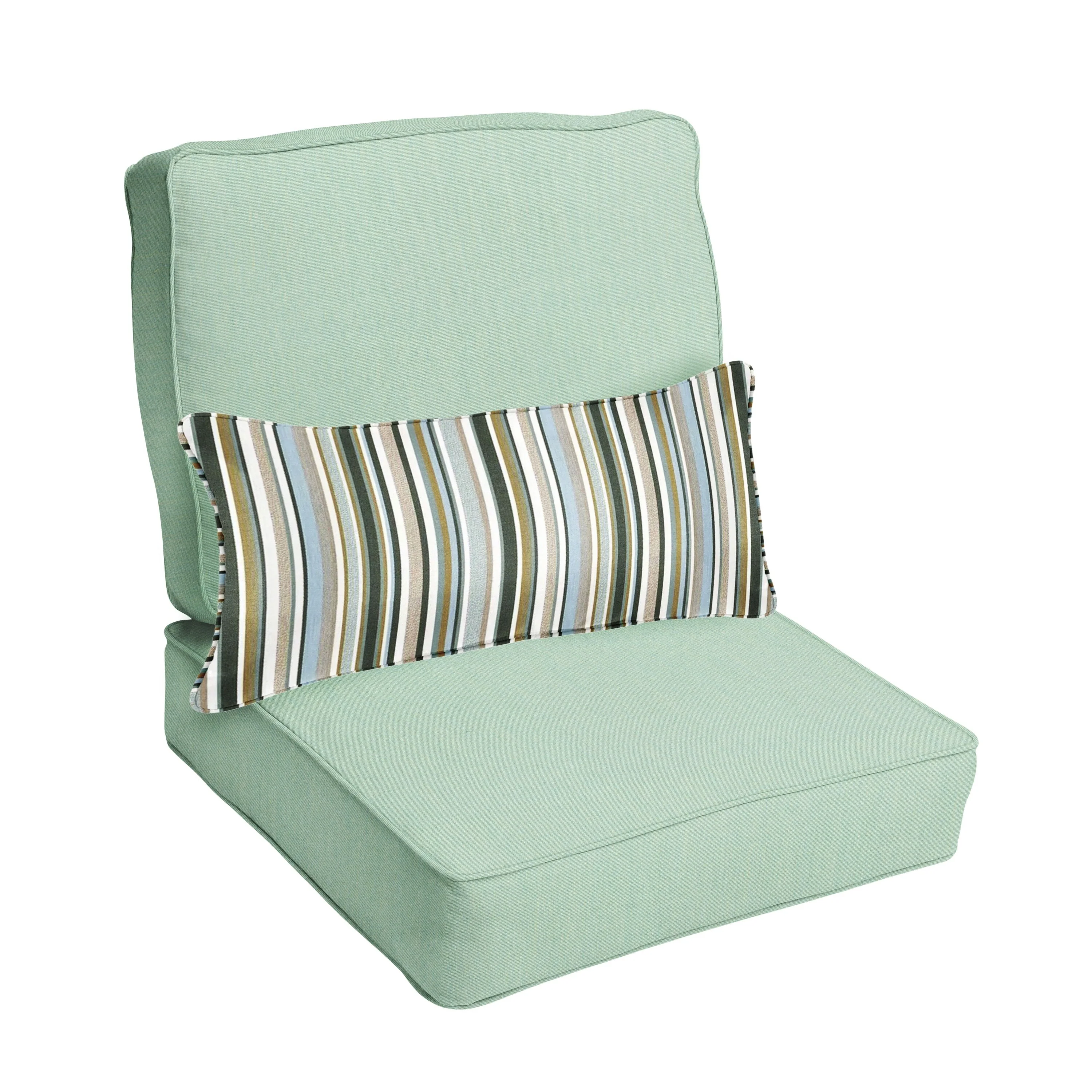 Spend an afternoon in the fresh air while enjoying a comfortable seat with this chair cushion set and lumbar pillow. The lumbar pillow supports the small of your back to minimize aches and pains. Featuring Sunbrella material, the cushions are weather, UV, mildew, and fade-resistant for durability and a long-lasting visual appeal.