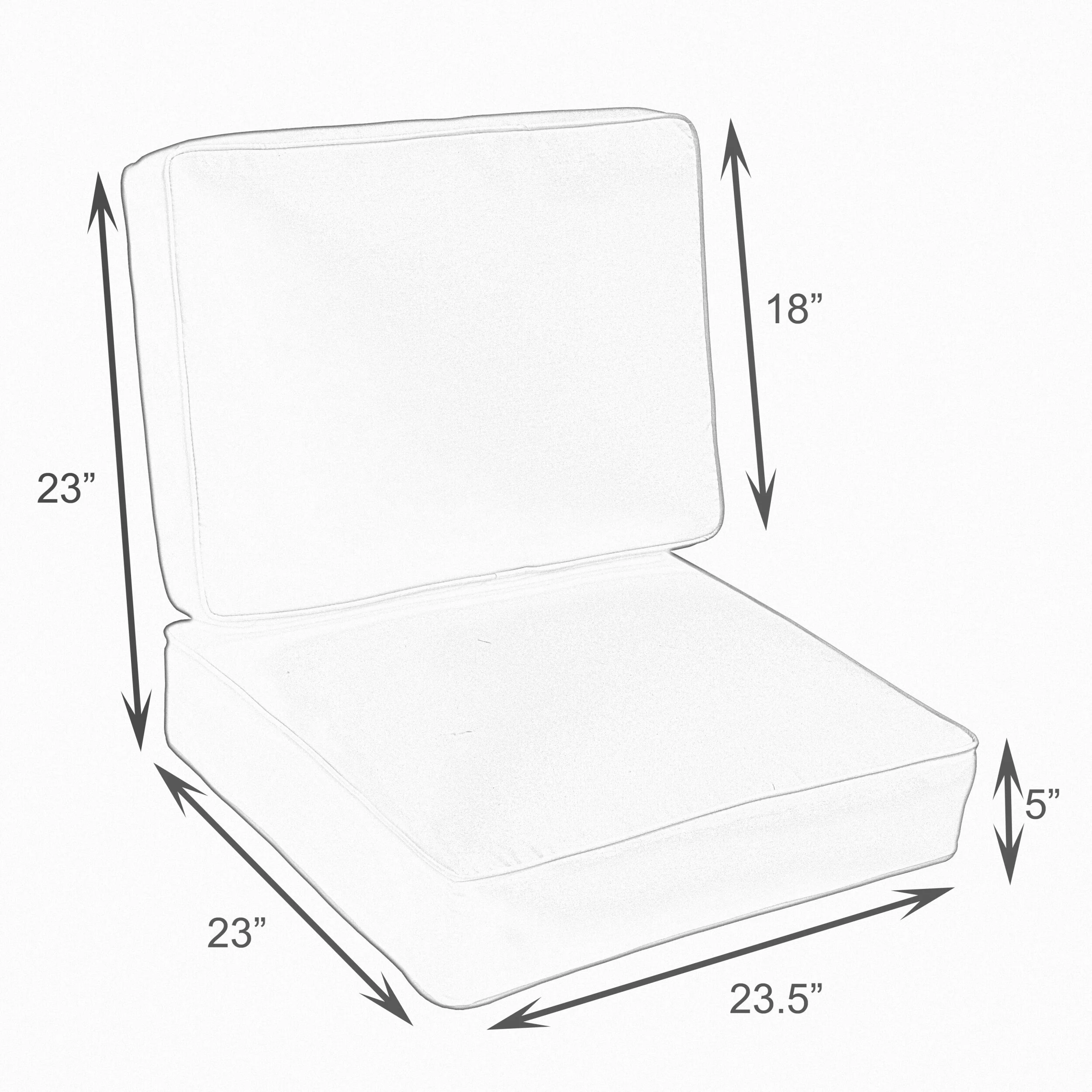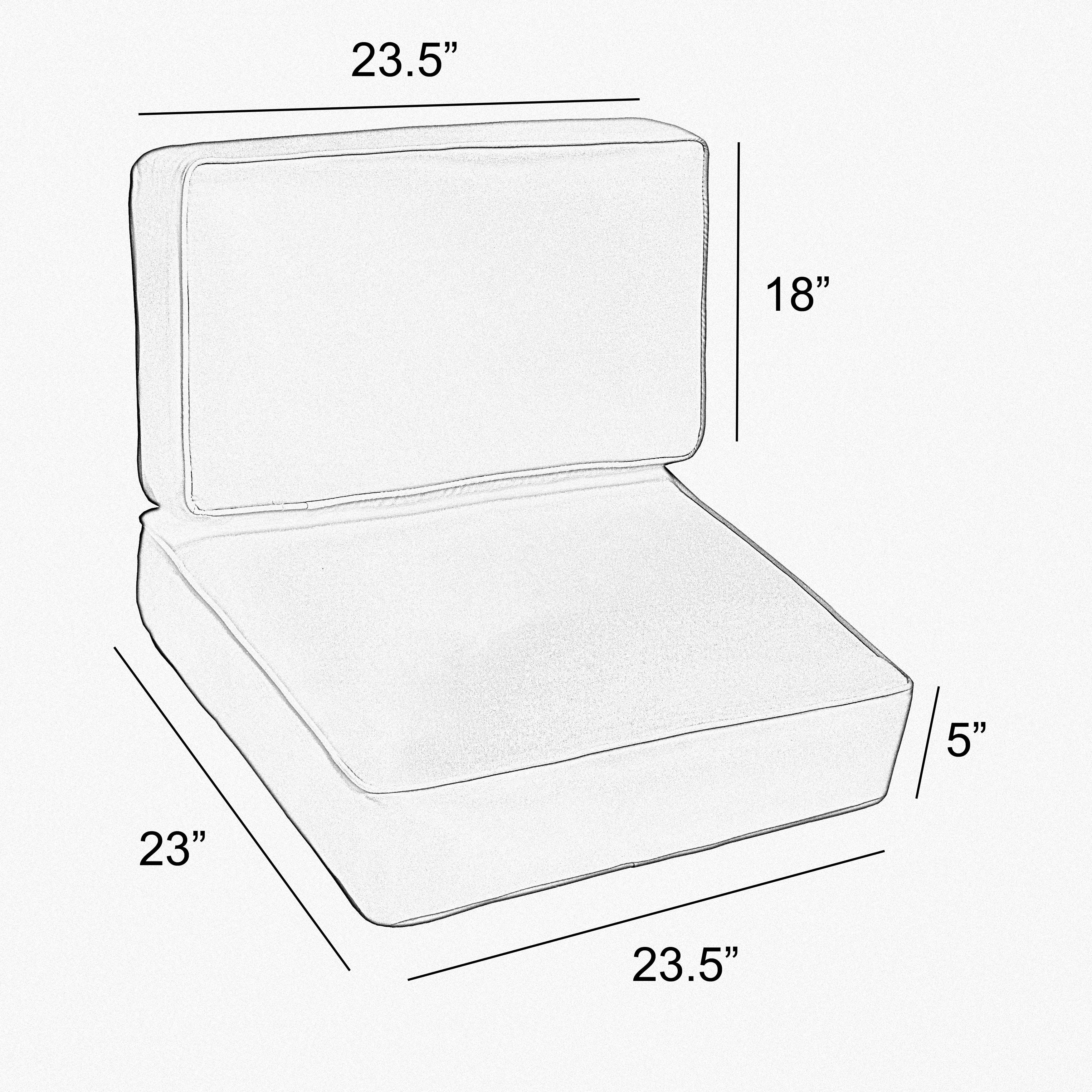 - Seat cushion: 23.5 inches wide x 23 inches deep x 5 inches thick