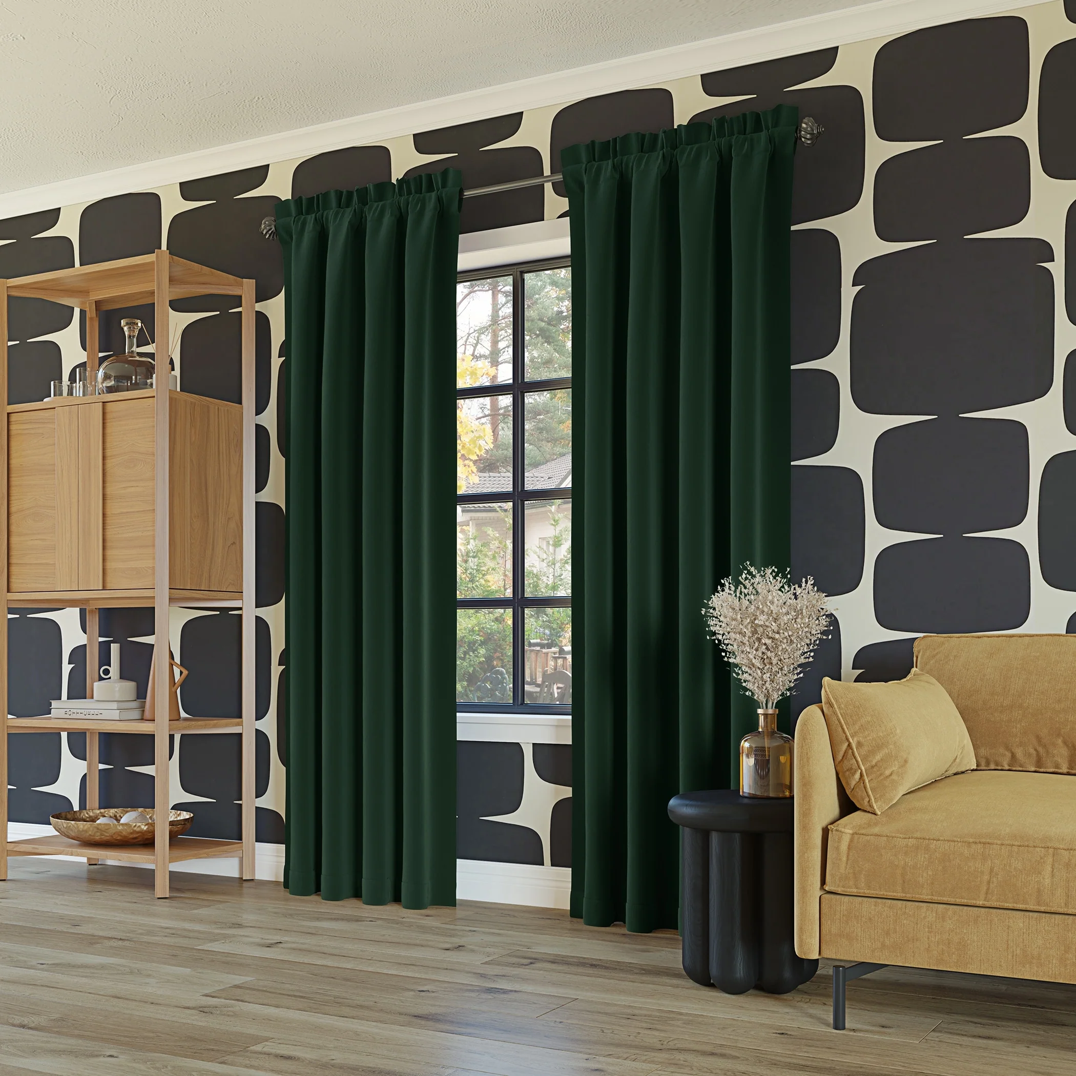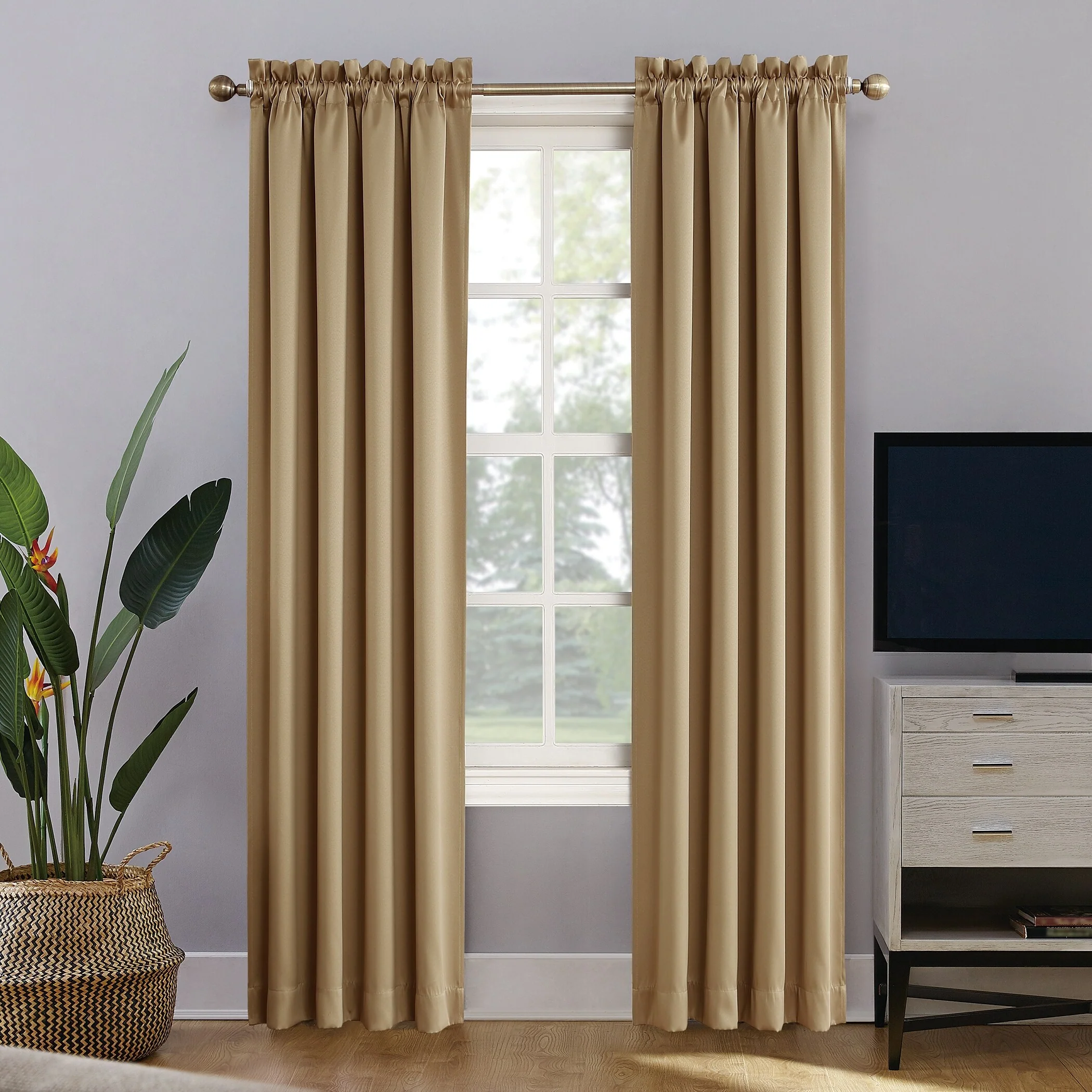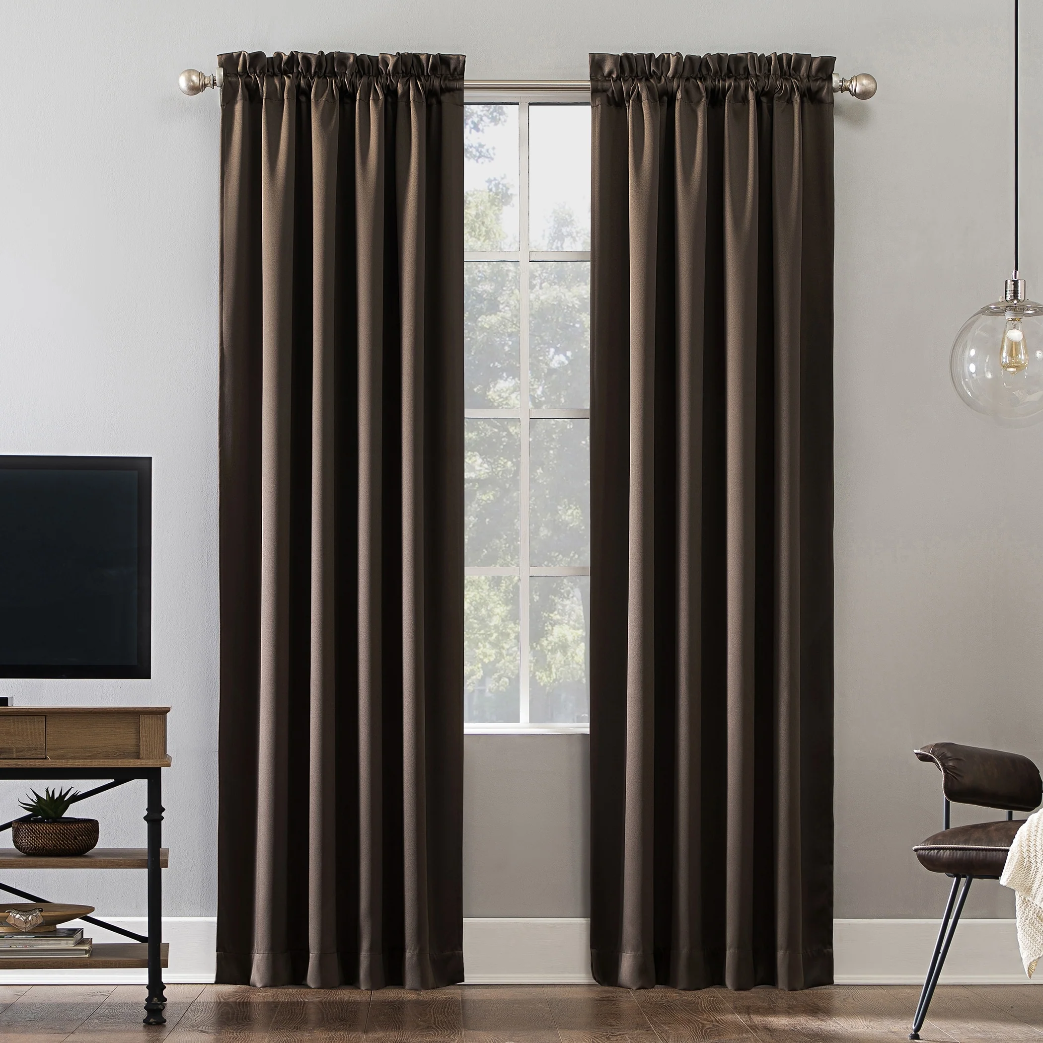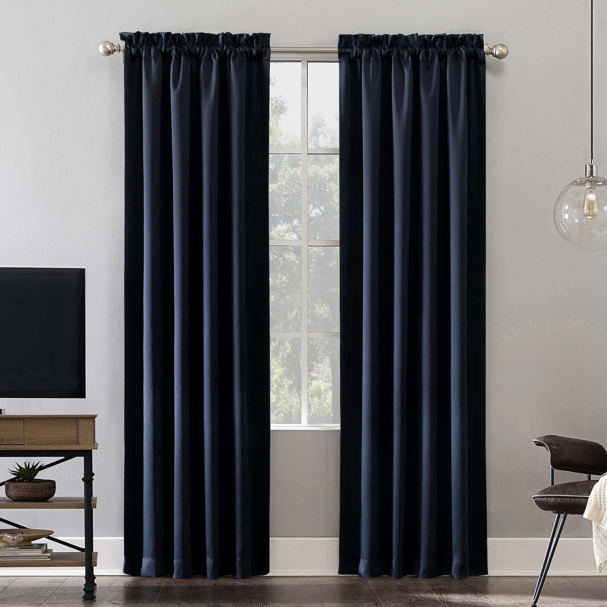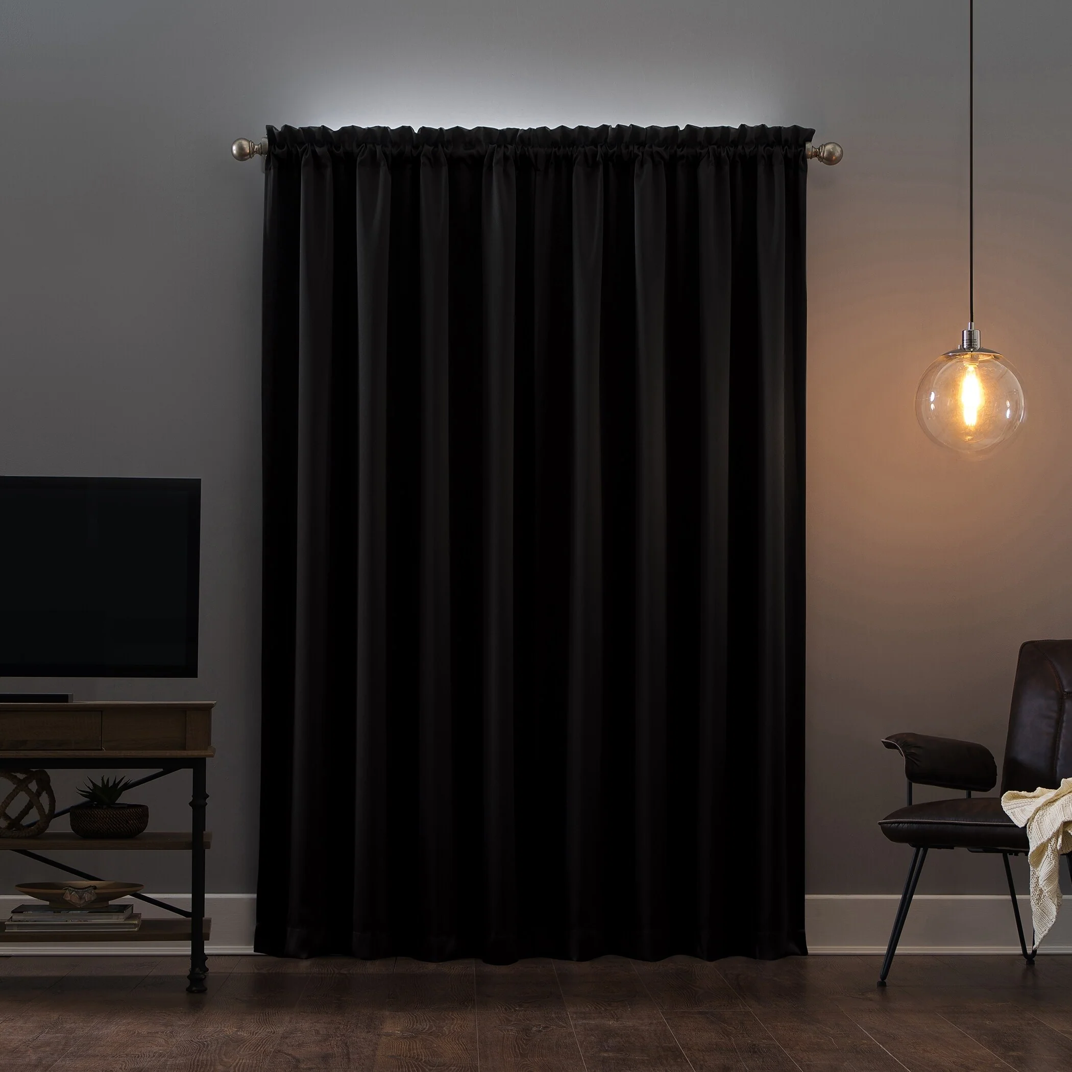 Sun Zero Oslo Curtain Panels provide the ultimate in light blocking technology to keep out even the harshest of light while bringing an elegant urban sophistication to any room of your home. Sun Zero Extreme Blackout technology is laboratory tested to block out 100% of light, reduce outside noise by up to 45%, and decrease energy lost through your windows by up to 50%. Comfort is optimized with thermal properties that help keep summer heat and winter chill out of your home. Built-in rod pocket design allows for easy slide-through installation on curtain rods up to 1.5" in diameter. Hang in your entertainment room to eliminate screen glare and reduce distracting outside noise, or in your bedroom for enhanced privacy and a sounder, more uninterrupted sleep.