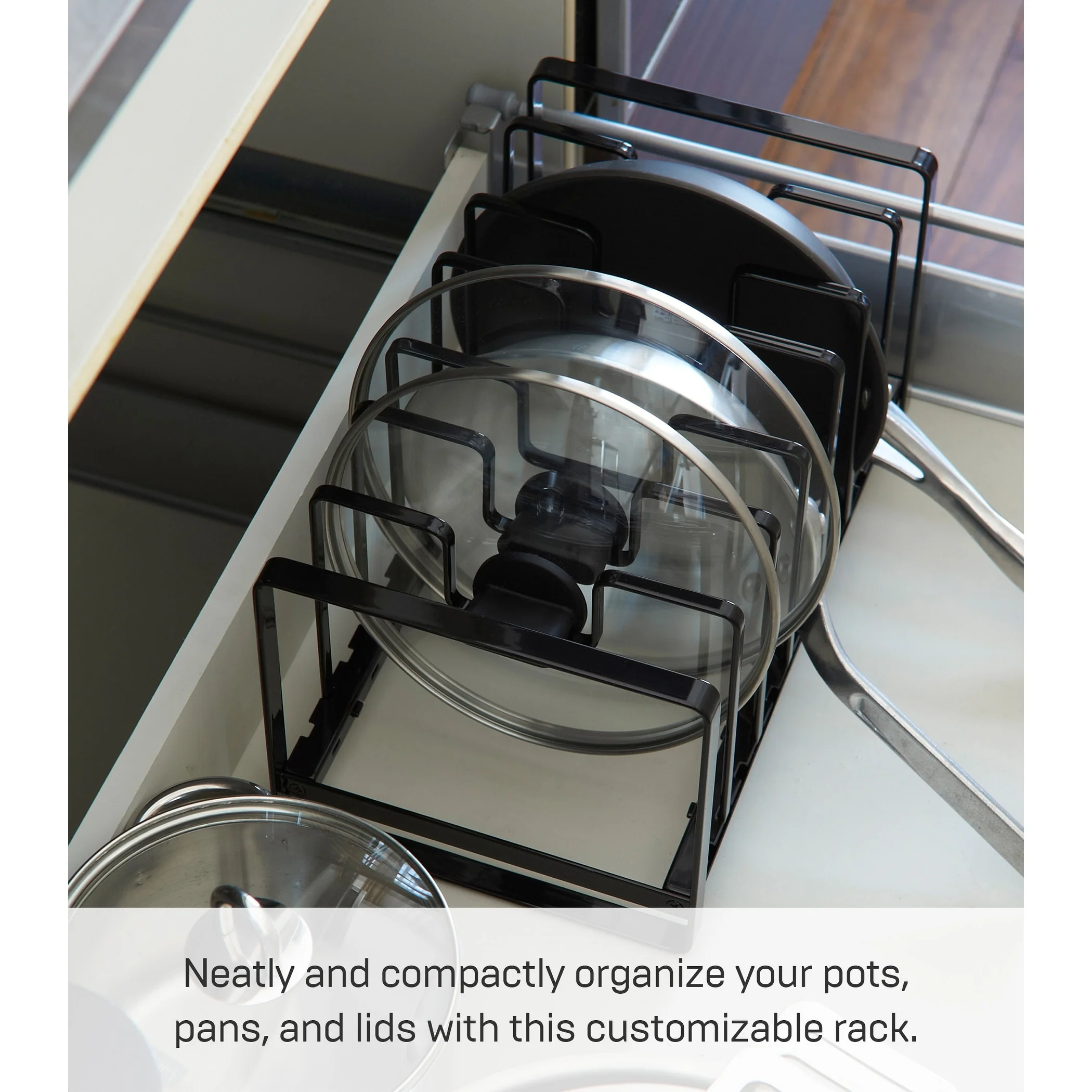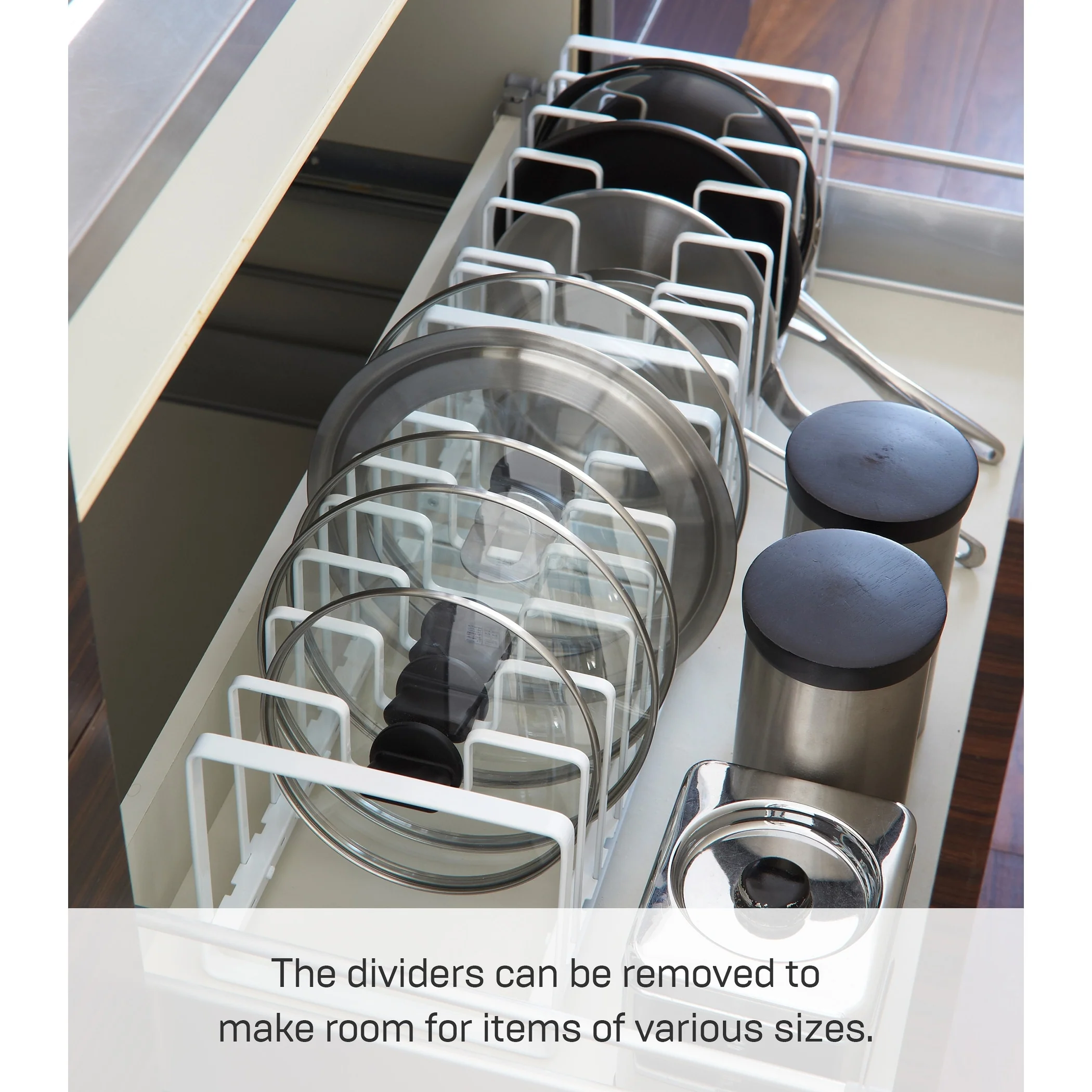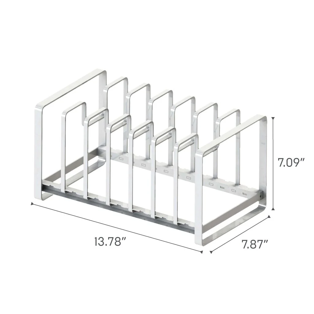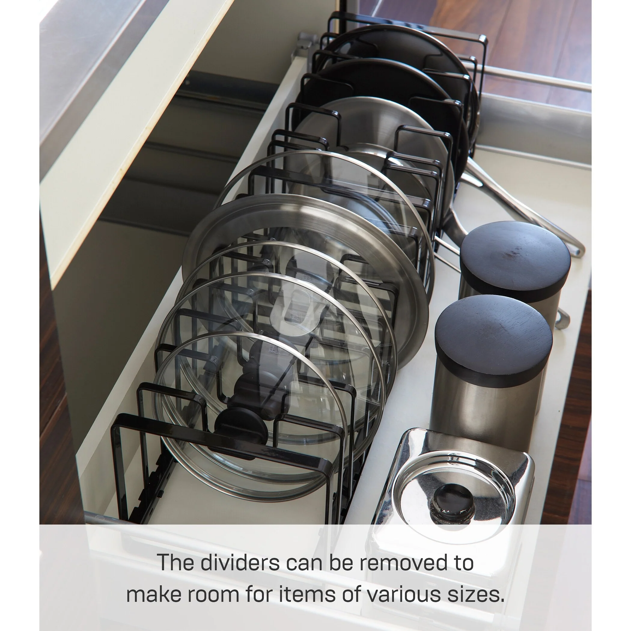 Say goodbye to the precarious stack of frying pans and pot lids in the cupboard, and hello to a tidy and sensible storage system. This foolproof rack features adjustable dividers and a sturdy steel frame that can be stored in kitchen cabinets or under the sink. The dividers feature a nook for the handle, making it much easier to quickly access the pot lid you need. Here��s to smooth frying, stewing, and braising!