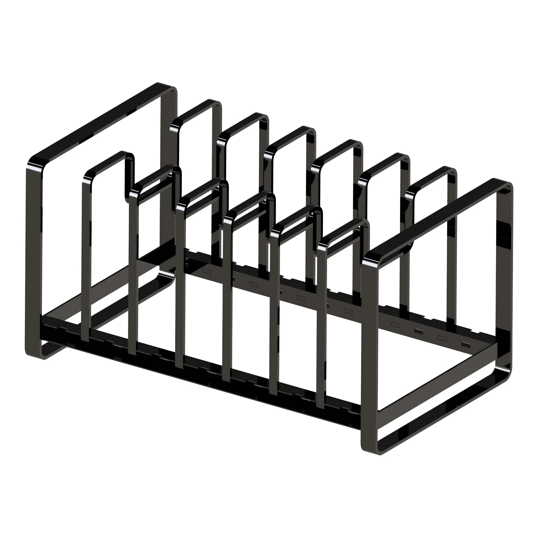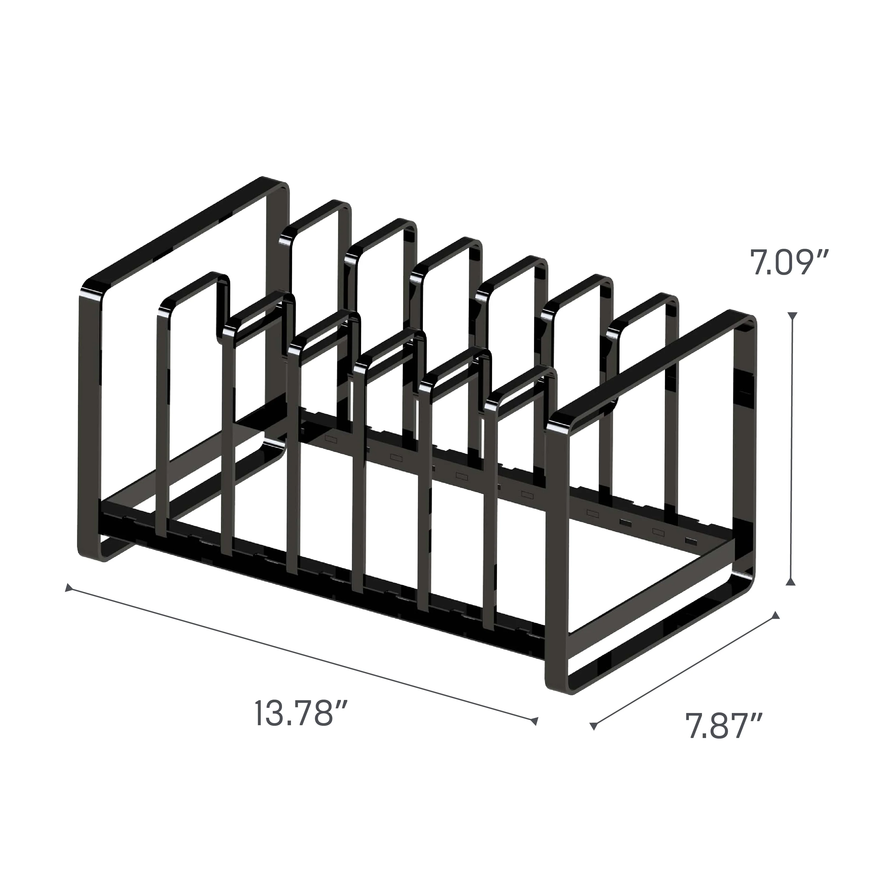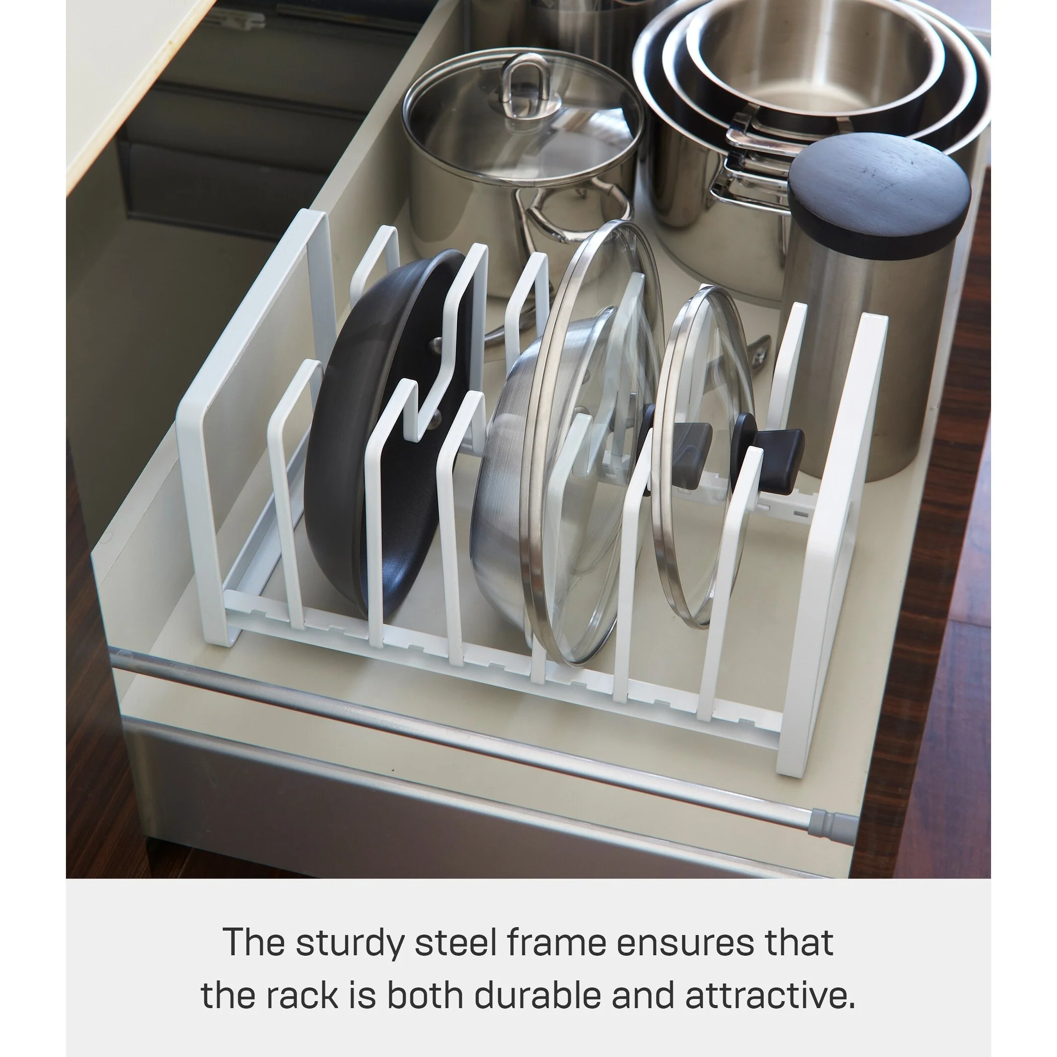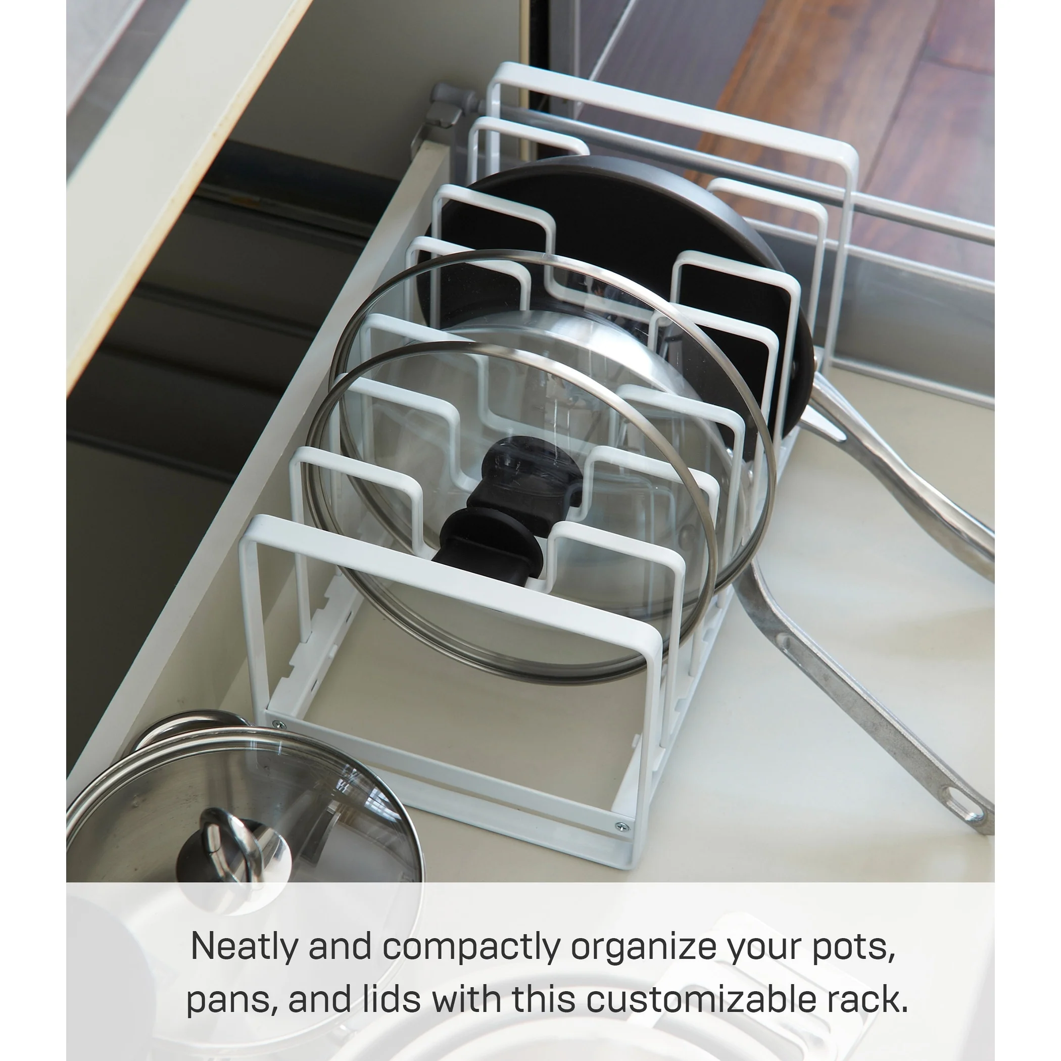 Say goodbye to the precarious stack of frying pans and pot lids in the cupboard, and hello to a tidy and sensible storage system. This foolproof rack features adjustable dividers and a sturdy steel frame that can be stored in kitchen cabinets or under the sink. The dividers feature a nook for the handle, making it much easier to quickly access the pot lid you need. Here��s to smooth frying, stewing, and braising!