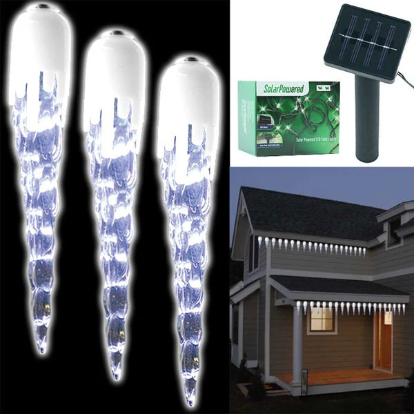 Set of 20 LED Solar Powered Icicle Christmas Lights