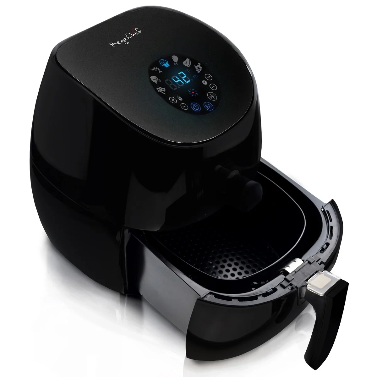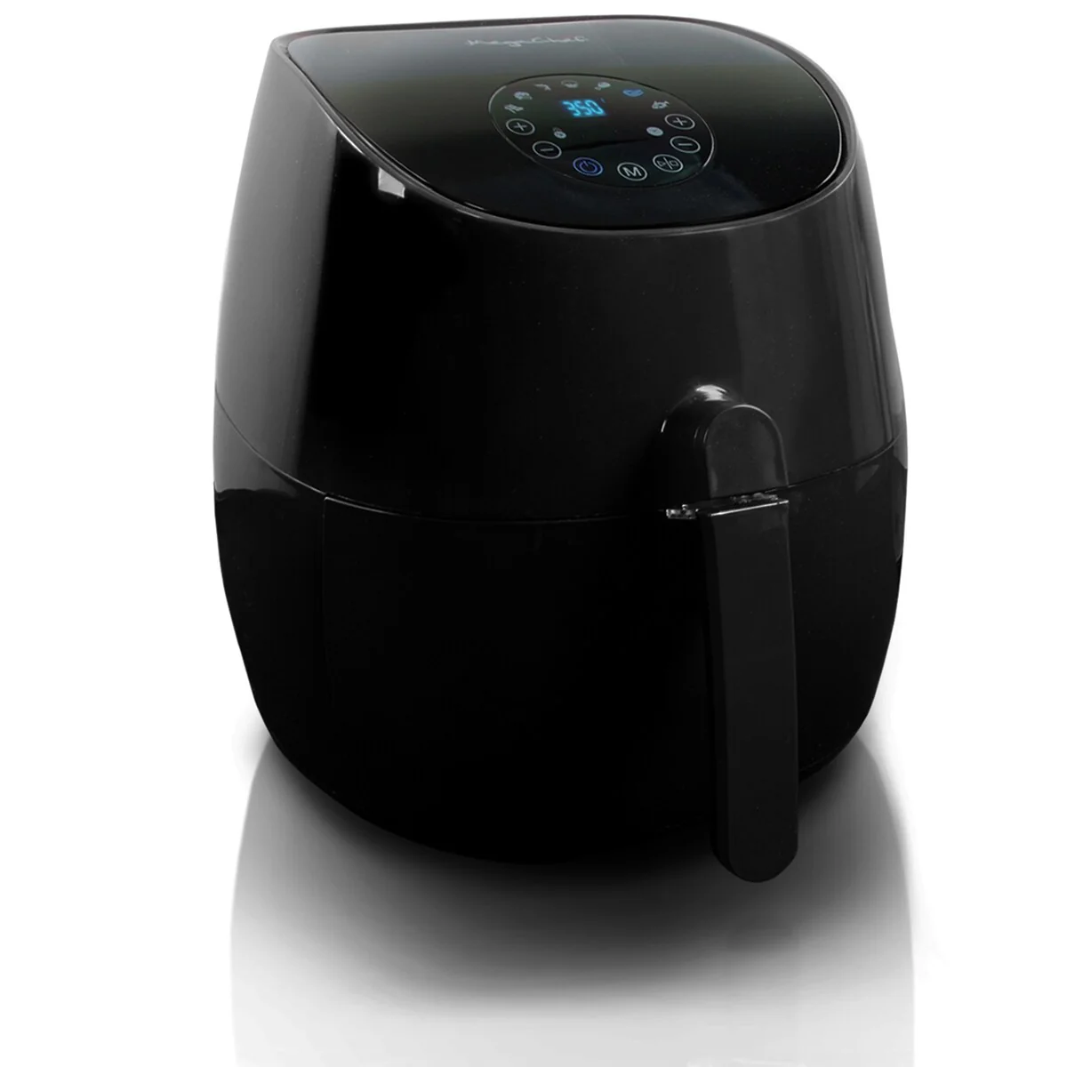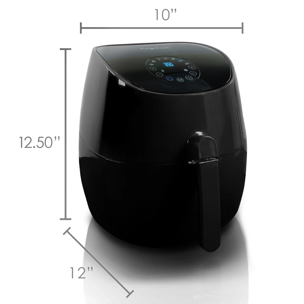 Enjoy tasty and healthy foods in style with this 3.5 Quart AirFryer And Multicooker With 7 Pre-programmed Settings. The clean, rounded edges of this unit make it a stunning addition to your home and kitchen. Whether you plan to entertain or are preparing a warm meal for your closest family and friends, this unit won't be the item you choose to remove from your counter-tops! The innovative hot-air circulation technology allows an even cooking of your food from all angles, which means you get crispier crunchier foods even with minimal cooking oils or completely oil free! This device will do much much more than fry, and with the growing popularity of these amazing items, you won't soon run out of recipe ideas. One 3.5 Qt. Airfryer MulticookerSettings: 7 Pre-SetColor: BlackConstruction: Plastic, AluminumCoating: Non-StickVols: 120V-60HzPower: 1350 WattsItem Dimensions: 12.50' L x 12' W x 10' H
