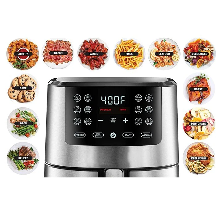 THE PERFECT KITCHEN COOKING GADGET - Multicooker Combo Electric Oven for French Fries, Wings, Fish Fryer, Bacon, Seafood, Vegetables, Bake, Roast, Broil, Dehydrate, Toaster, Reheat, and Keep Warm + 12 1-Touch Digital Presets that deliver the best results