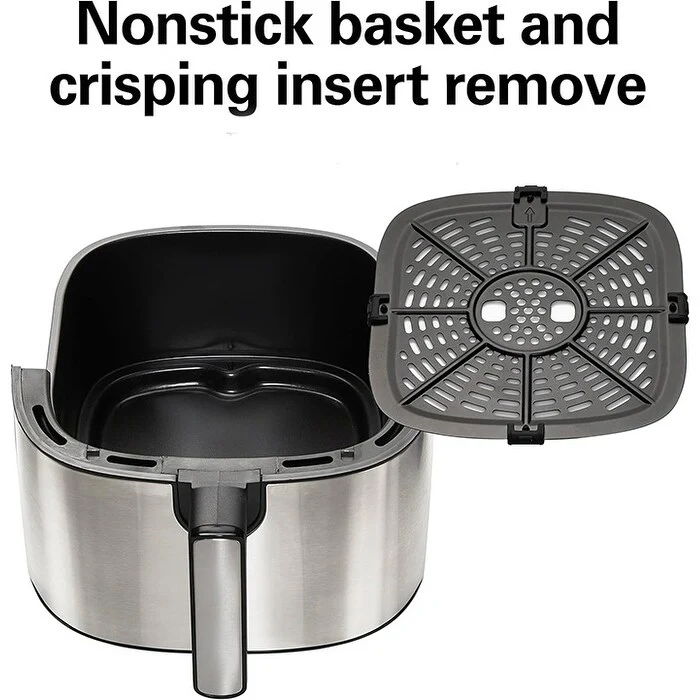 5.8 QUART CAPACITY FOR FAMILY-SIZE PORTIONS. Large 5.8 quart nonstick basket fits a whole 5 lb. chicken or enough food to feed 4-6 people. You'll find yourself using it all week long to cook or reheat everything from small snacks to family-size meals.
