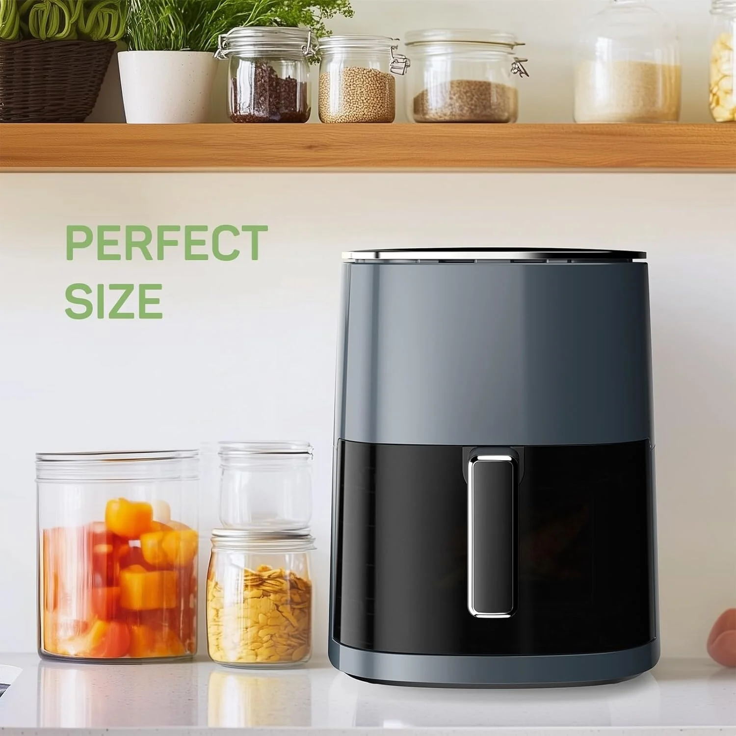 - 𝟲-𝙌𝙩 𝘾𝙖𝙥𝙖𝙘𝙞𝙩𝙮 & 𝘾𝙤𝙢𝙥𝙖𝙘𝙩 𝘿𝙚𝙨𝙞𝙜𝙣: With a 6-quart large capacity, this air fryer is perfect for family meals. It's designed to maximize cooking space while maintaining a compact footprint, keeping your kitchen organized.