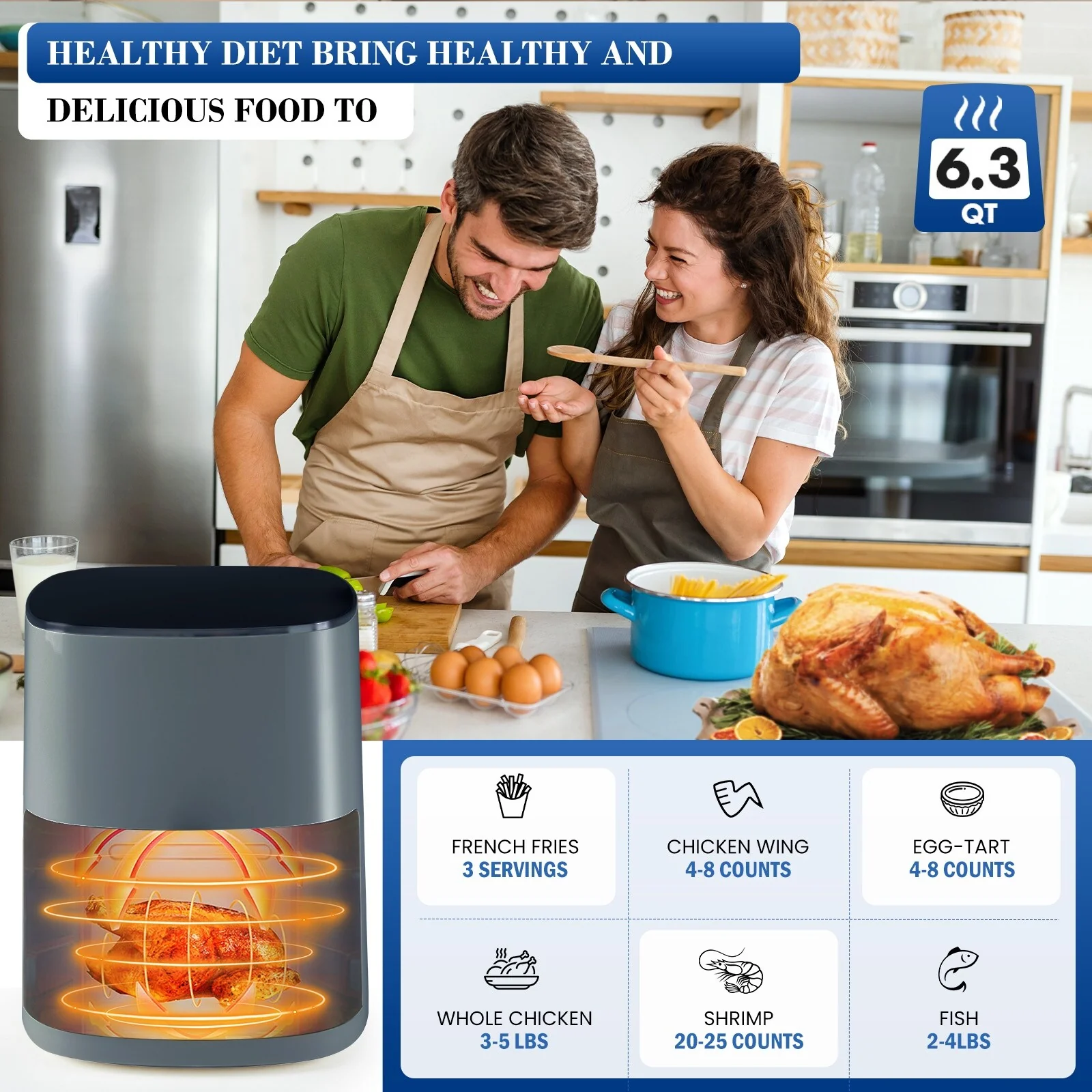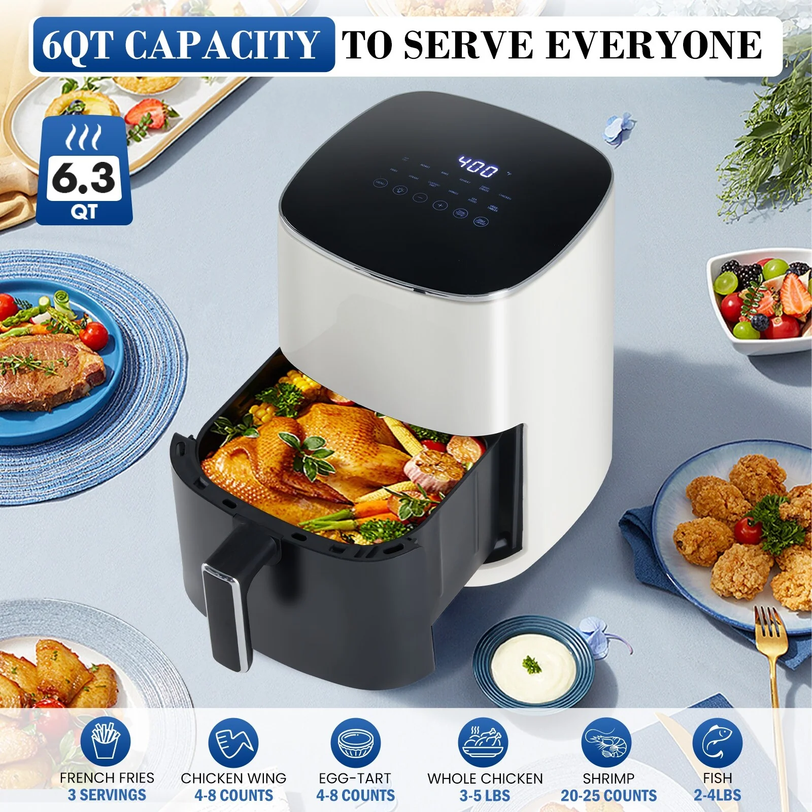 - 【Spacious 6.34QT Capacity】The square-shaped basket design optimizes cooking space, making it ideal for preparing family-sized meals or entertaining guests.