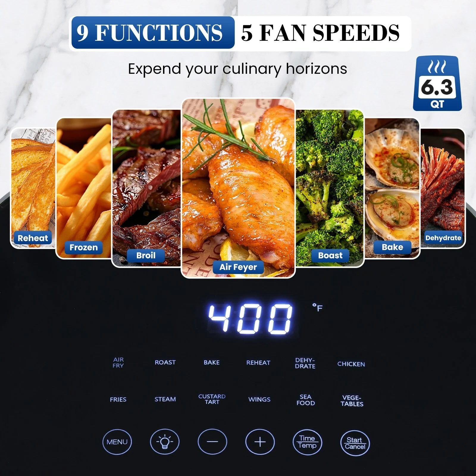 - 【Versatile 12-in-1 Performance】From roasting and baking to dehydrating, this top-rated air fryer delivers restaurant-quality results with its powerful 400°F rapid air circulation technology.