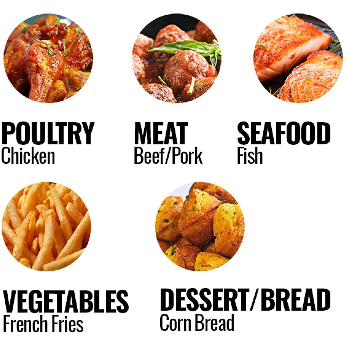 Multi-functions include air fry, grill, BBQ, bake, roast, toast and thaw/defrost to make healthier, faster meals Air Fryer Accessories Included: Expand your cooking capabilities via an extender ring with easy to clean silicone layer (supports up to 7.4 quarts/7 liters of food), a mesh frying basket for oil-less crispy results, a reversible grill rack and handy tongs