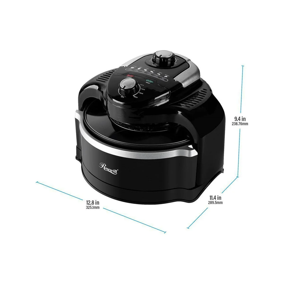 Unique air fryer with glass lid for conveniently monitoring entire cooking process Energy Efficient Multifunctional Cooker: Higher temperature levels and lower wattage requirement compared to a conventional halogen oven or air fryer;