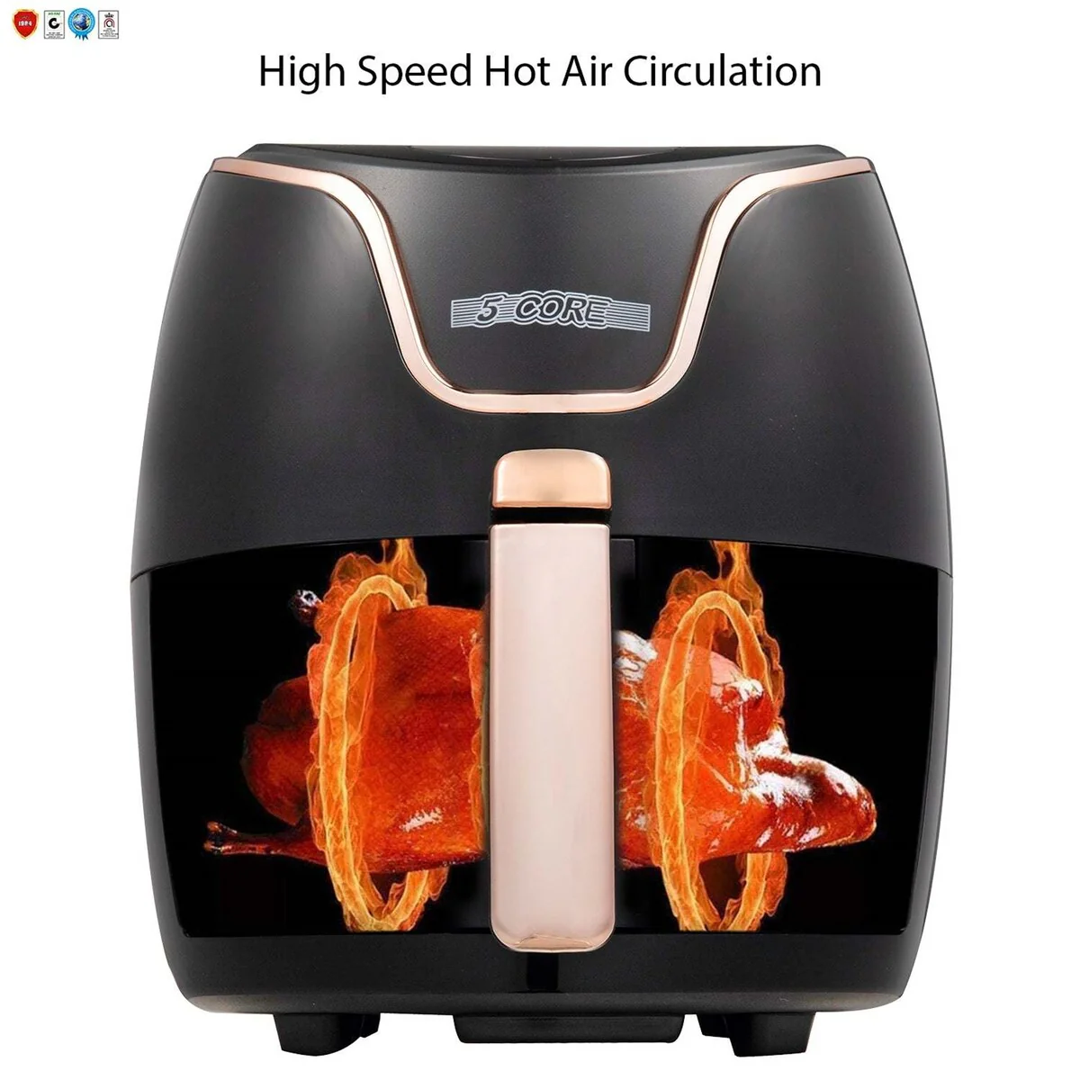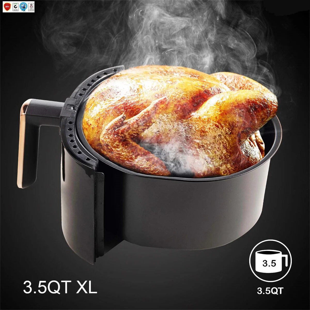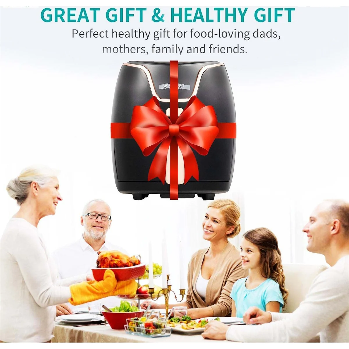 HEALTHIER FRYING: This air fryer makes 'healthy fried foods' a reality. Temperature range from 200-400°F allows you to cook at your desired temperature, achieving a healthy, crispy, fried finish using at least 98% less oil than traditional fryers. Air fry vegetables, pizza, frozen foods and leftovers - this air fryer evenly crisps every inch of your food.