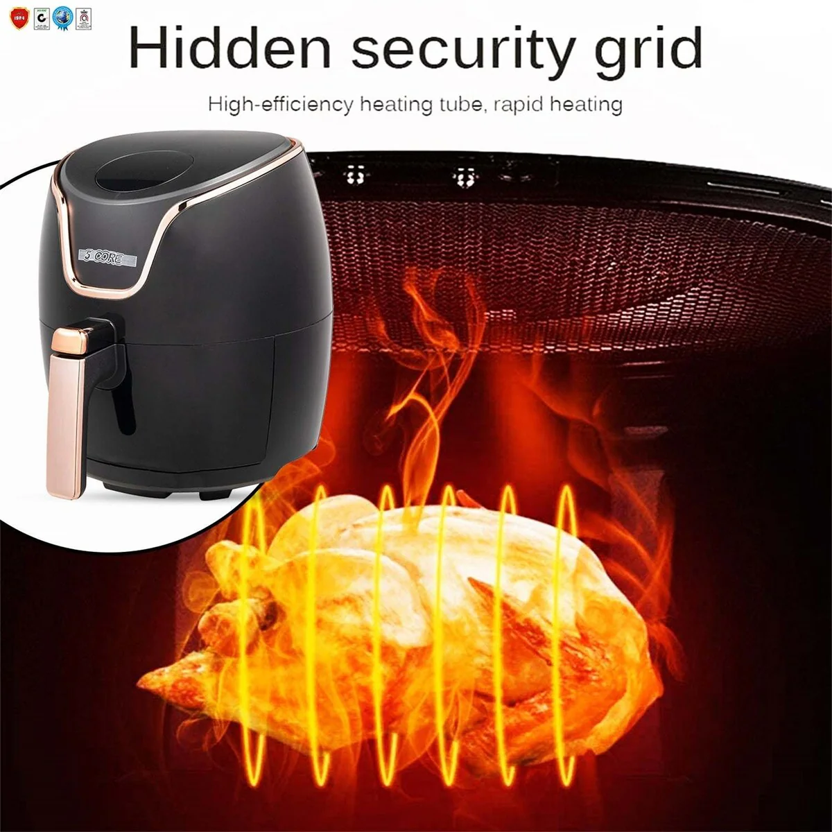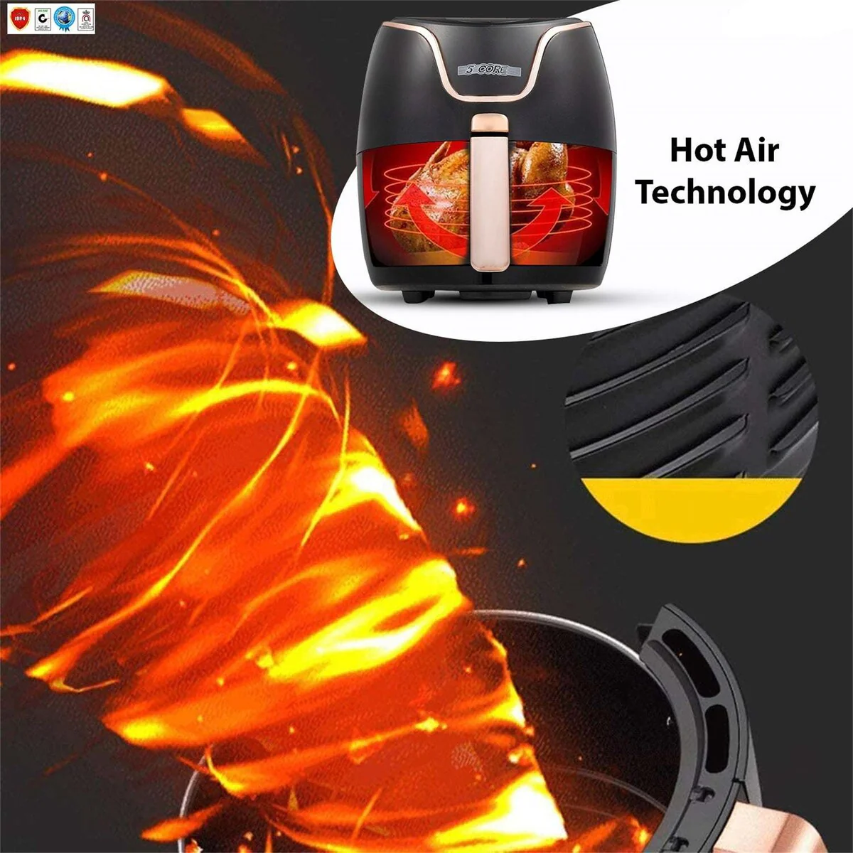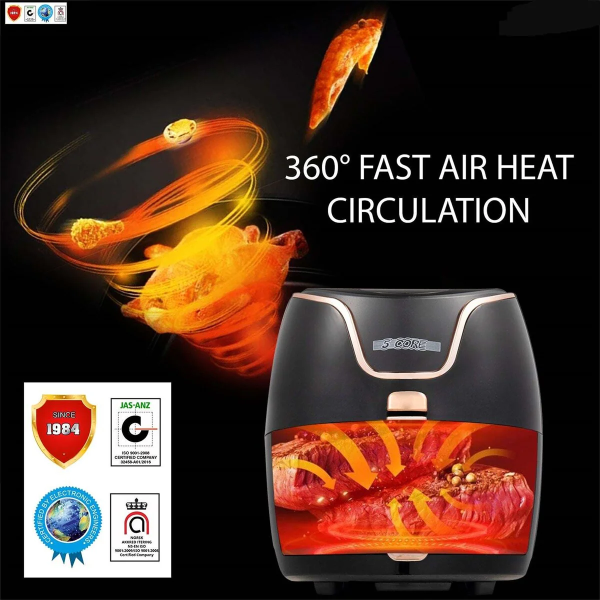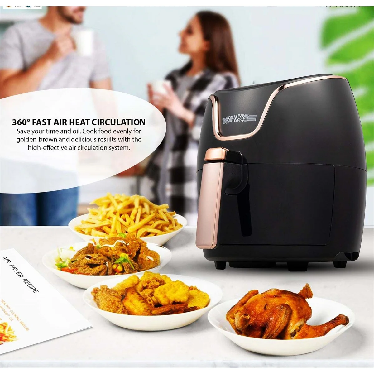 HEALTHIER FRYING: This air fryer makes 'healthy fried foods' a reality. Temperature range from 200-400°F allows you to cook at your desired temperature, achieving a healthy, crispy, fried finish using at least 98% less oil than traditional fryers. Air fry vegetables, pizza, frozen foods and leftovers - this air fryer evenly crisps every inch of your food.