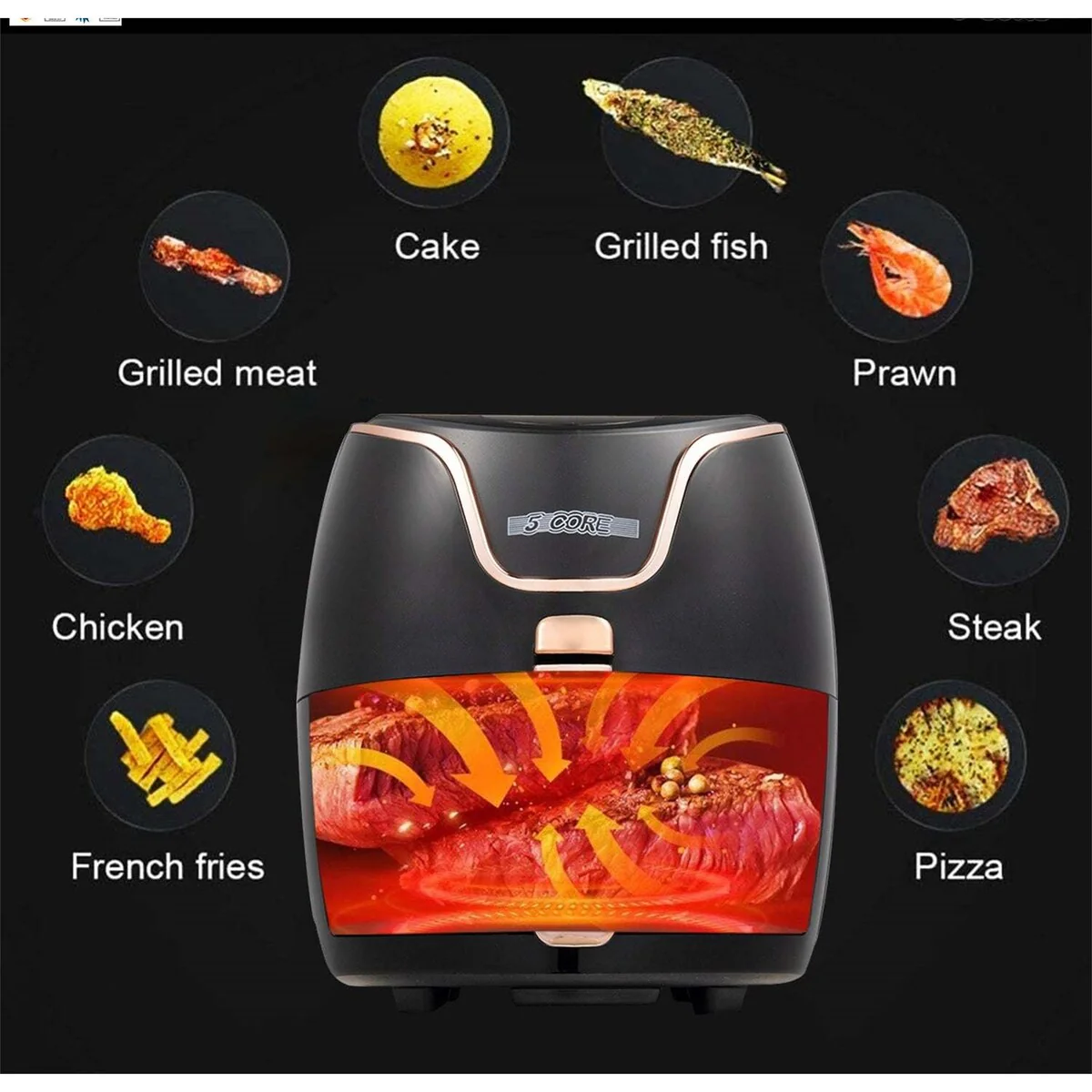 PERFECTLY CRISPY RESULTS: Achieve perfectly crisp results for a wide variety of foods, with little or even no oil. The Touch Display controls both temperature & time; 60-minute integrated timer easily let you air-fry everything from frozen veggies to mozzarella sticks, chicken or fries, and even re-heat yesterday's dessert! No need to worry about overcooking - once the timer is up, the fryer will automatically shut off.