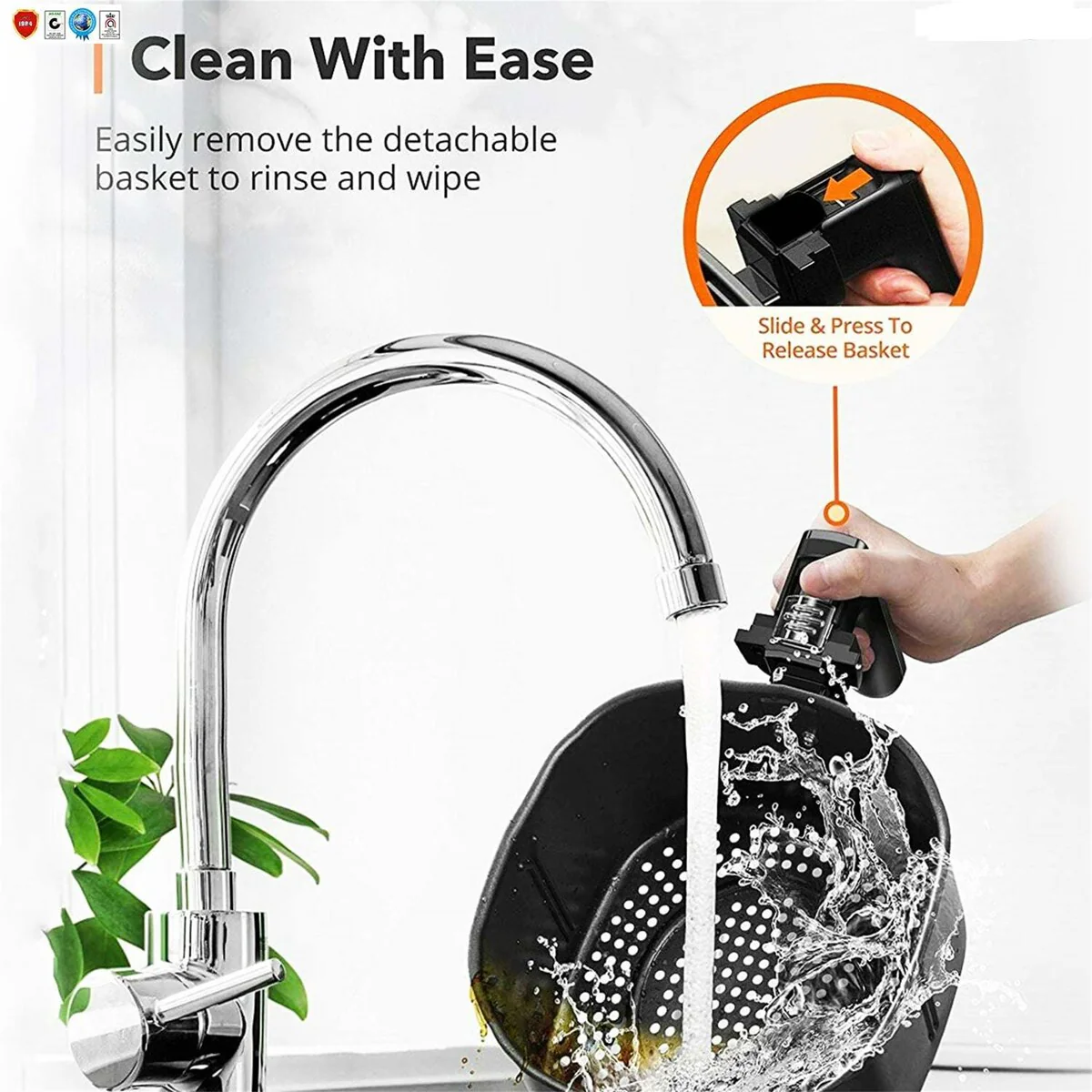 EASY CLEAN: The 3-liter non-stick basket is dishwasher safe, making clean-up a breeze. When you're hand washing, keep the air fryer in great shape by using soft sponges and cloths. (Abrasive sponges like brillo pads are NOT the air fryer's friend!)