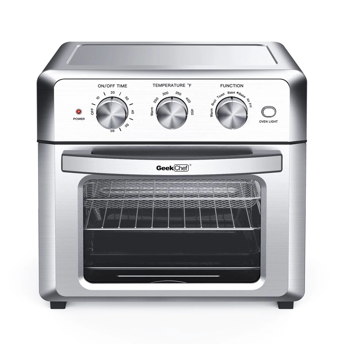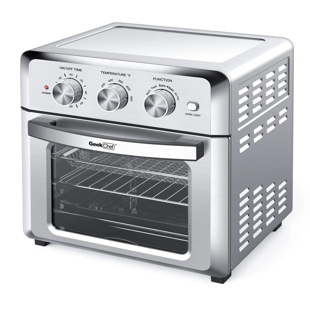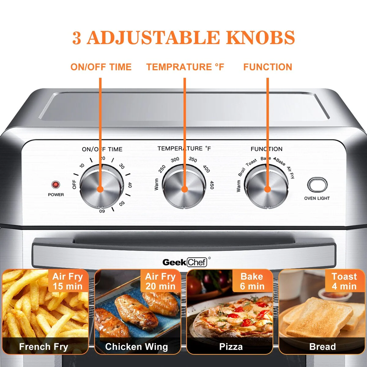 Family Size SpaceSaving Design: 19QT, allow you to prepare family-sized quantities for up to 10 people at once, or control how fast and crispy your food cooks. With a compact and sleek design this air fryer oven can be placed on your countertop or stored away when not in use.