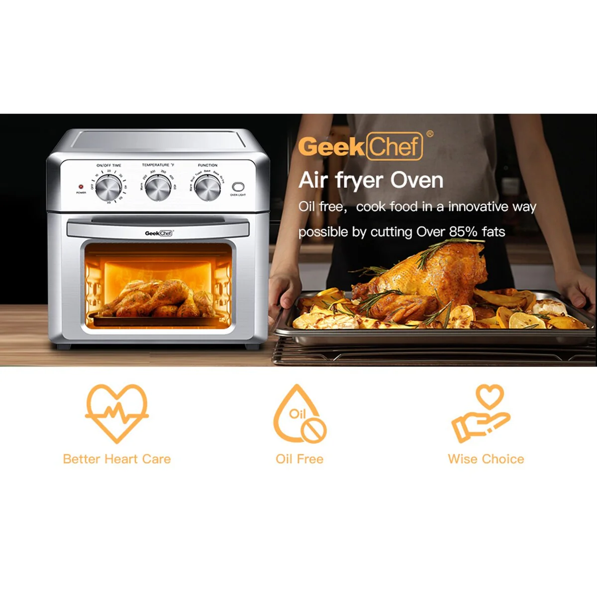 - 【Healthy,Fast,Powerful】 :ETL listed for safety,1500W motor helps to efficiently cook food in the healthiest way possible by cutting over 85% of fats, while an included baking tray also acts as a drip tray to catch any excess oil. Key Product Features