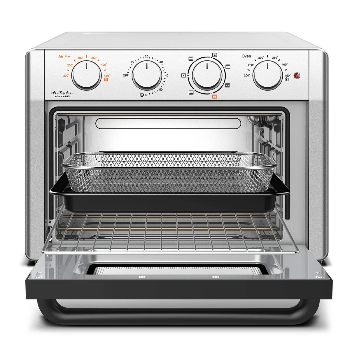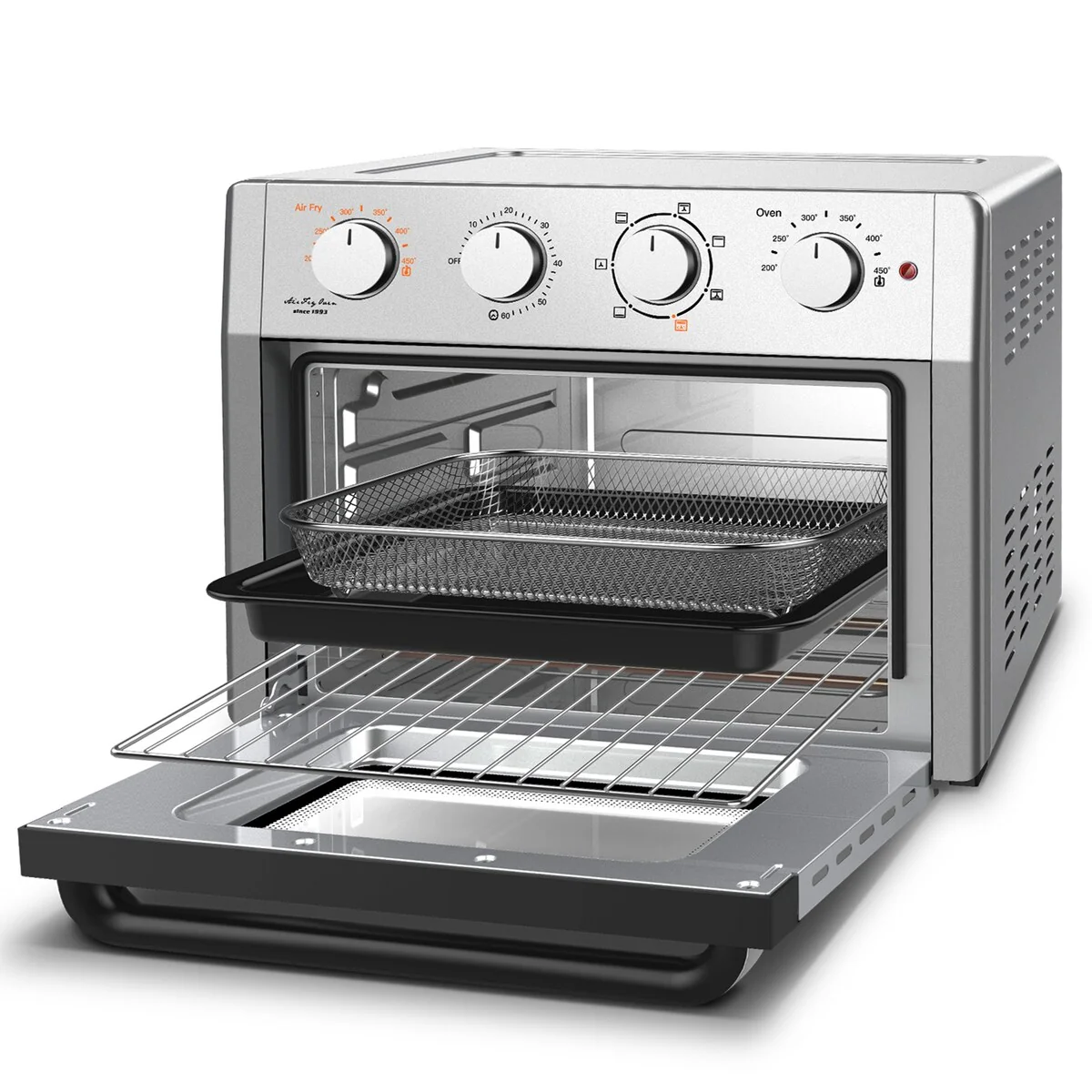 • 【 Multi-Function Toaster Oven 】This air fryer toaster oven includes 7 versatile presets: Air Fry, Toast/Bake, Roast, Broil, Defrost, Convection Broil, and Grill. All-in-One Air Fryer Oven. Accessories included: Air fryer basket, oven rack, baking pan, and drip tray. Easy to clean!