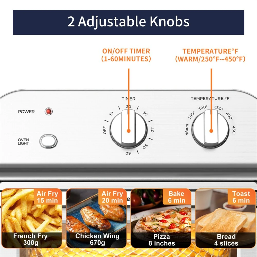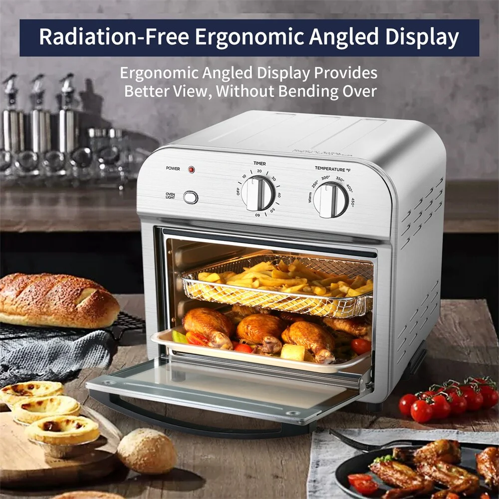 - 2.【Healthy】Powerful, Easy and Duarable ETL listed for safety, 1500W strong Power makes super Efficient to cook food in the Healthiest way by cutting over 85% of fats. Pull-Down Door with a Large Window makes it easy to monitor progress as food cook. Brushed Stainless Steel exterior enhances any kitchen décor; nonstick interior and stainless steel exterior wipe clean in seconds