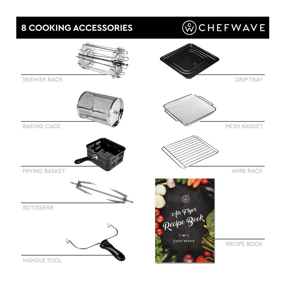 - ChefWave 12.6 Quart Air Fryer Oven with Dehydrator and Rotisserie