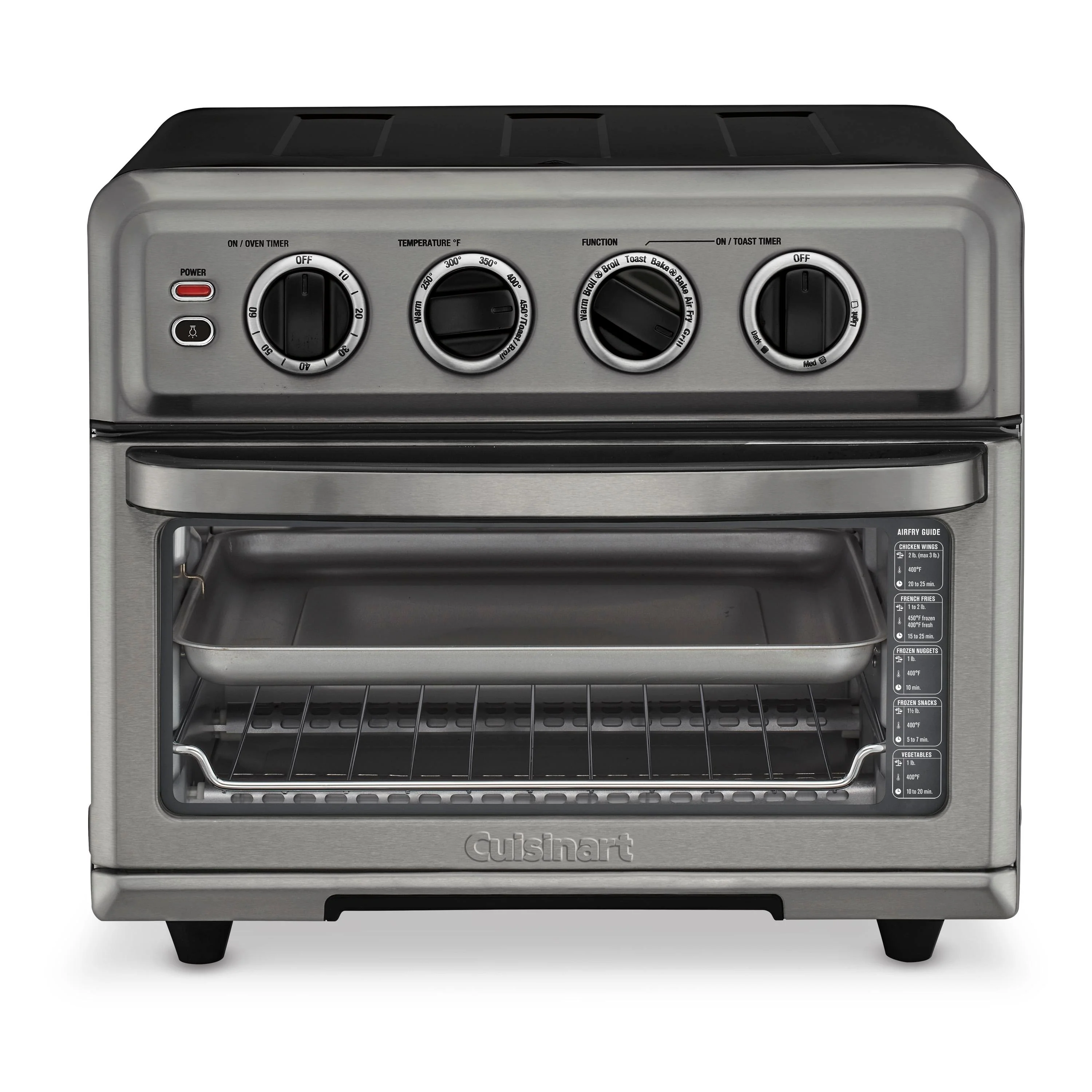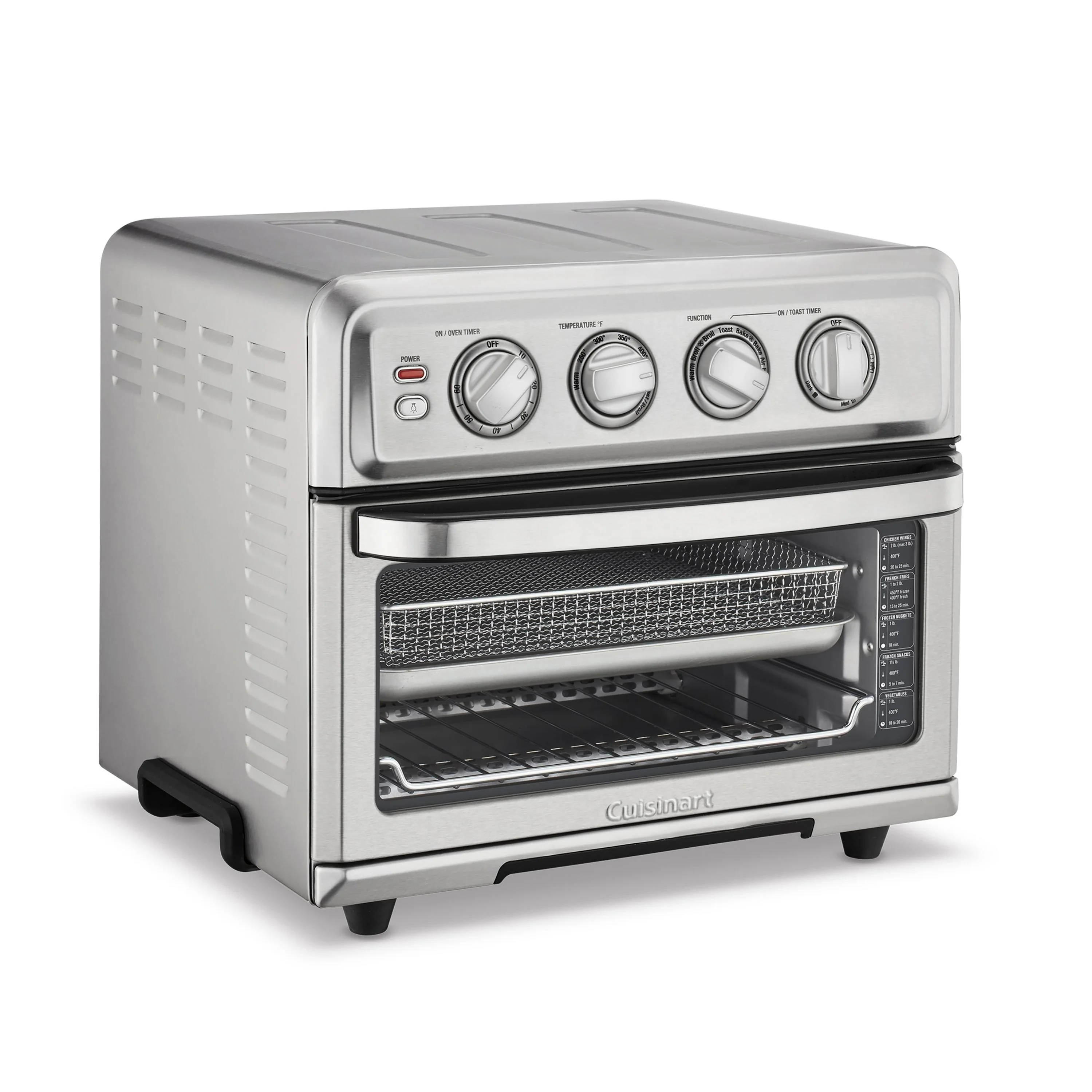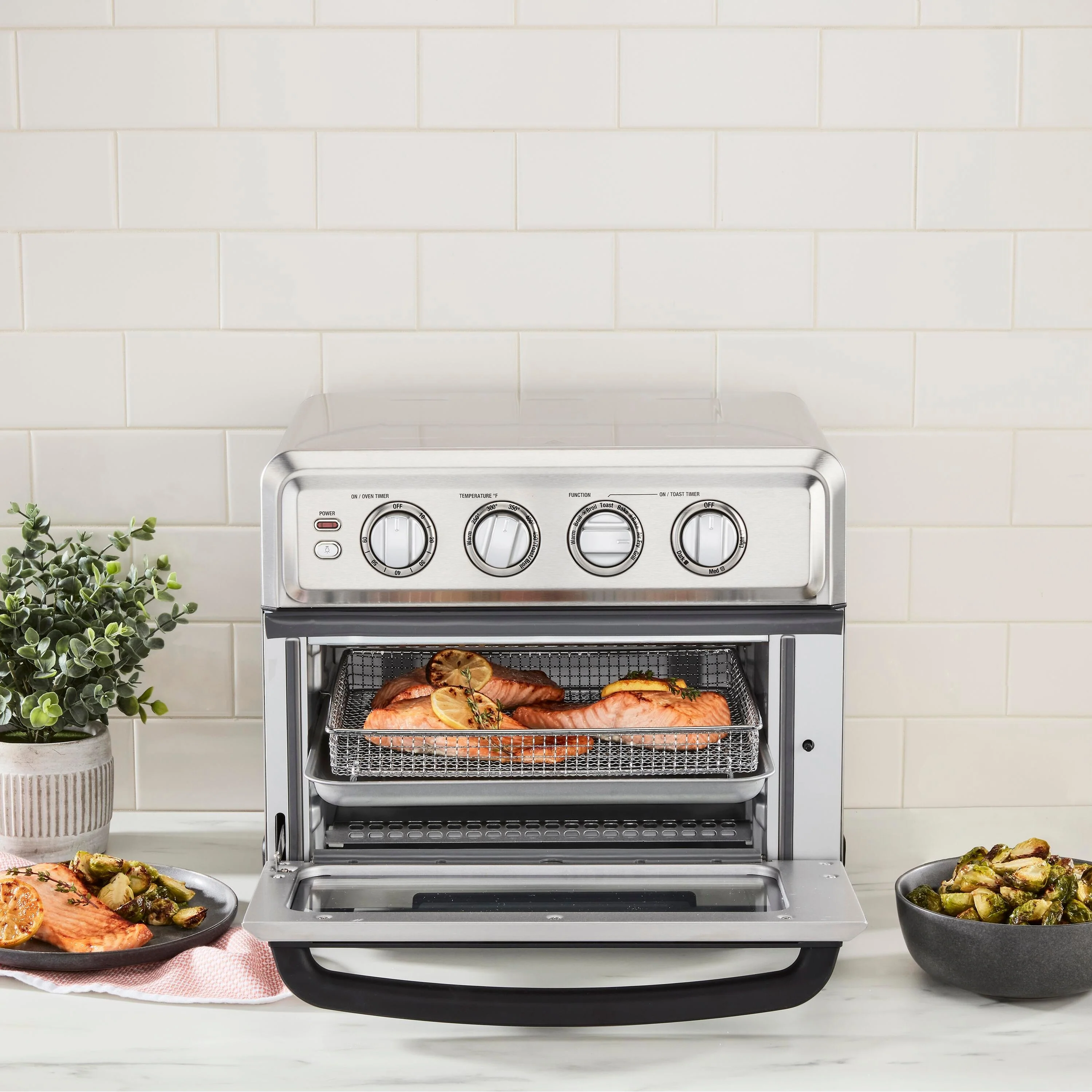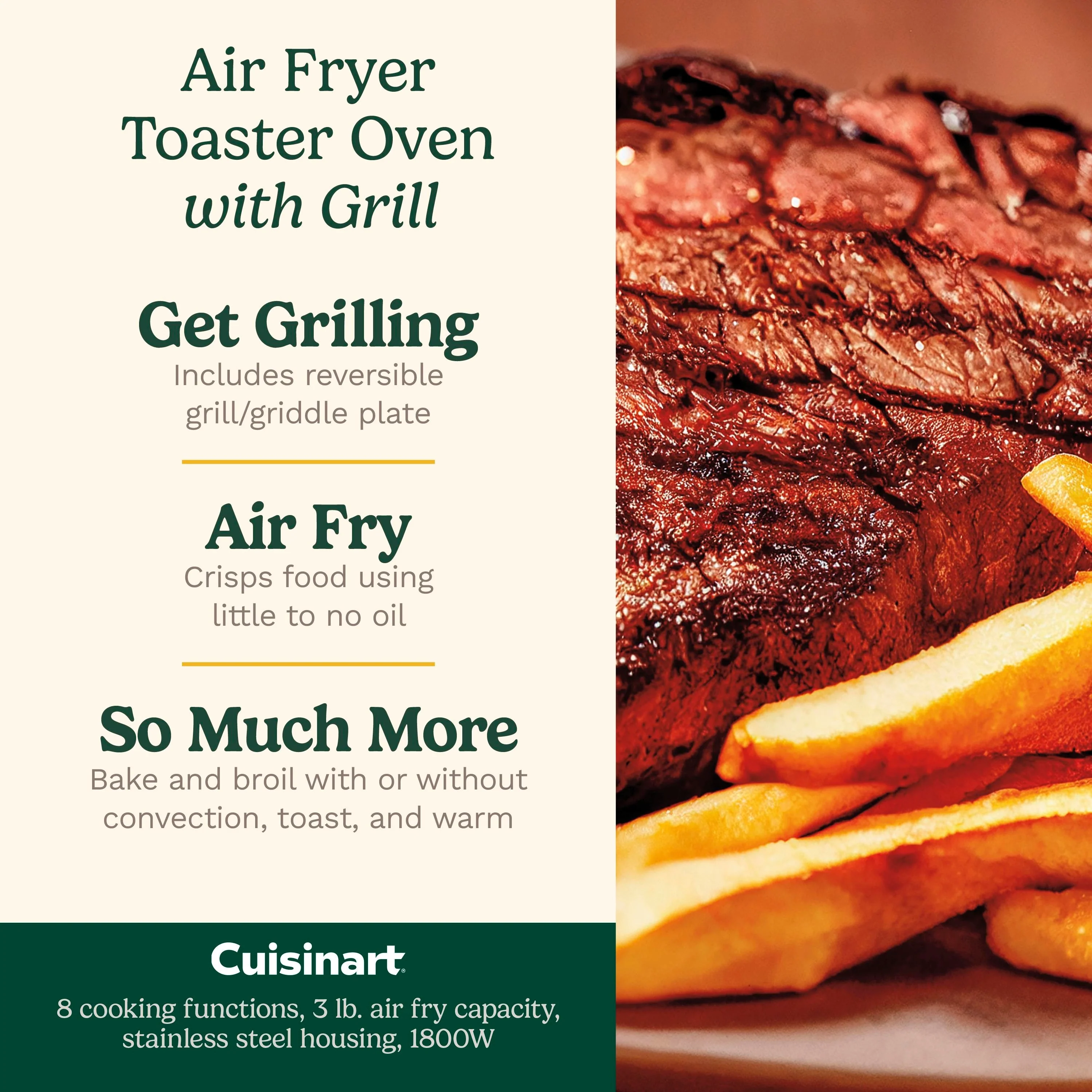 The Cuisinart Air Fryer Toaster Oven with Grill brings next-generation cooking to your countertop with a quiet, powerful, stainless steel construction. Air fry healthier and delicious proteins, from chicken breast, chicken wings to salmon or burgers. Introduce an array of air fried vegetables to your dinner table, including air fried potato wedges, crispy brussel sprouts and roasted broccoli. Use the reversible grill/griddle plate to sear steaks and vegetables on one side and griddle the perfect breakfast on the other.. Cook all of your family’s favorites including air fried french fries, baked cookies, and warmed up leftovers. This air fryer oven is our latest and greatest upgrade with a spacious 8-function oven that makes cooking a feast for family and friends — or a simple snack for one — fun, fast, and easy.