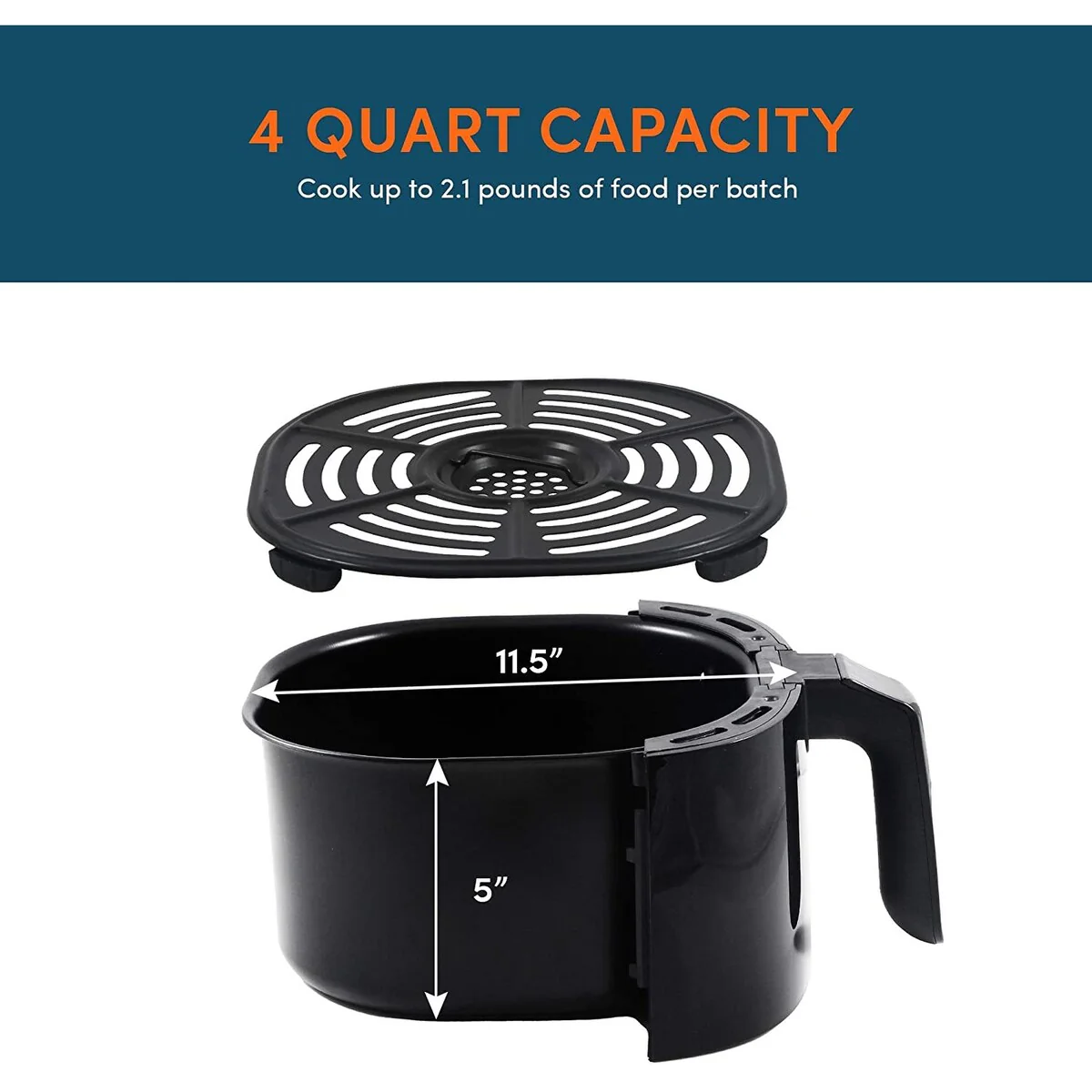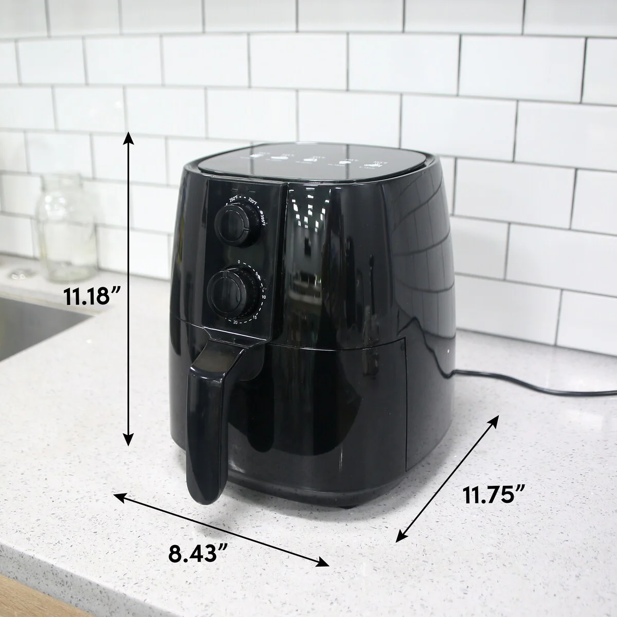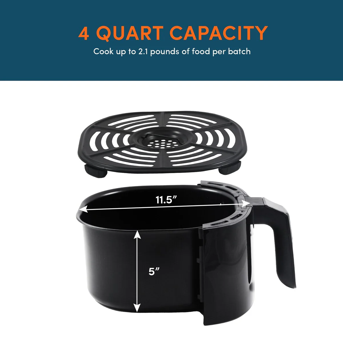 Elite Gourmet Oil-Free 4 quart Air Fryer can handle a wide array of cooking tasks. With its large 4 quart capacity and easy to use temperature and timer controls, you can fry, cook, or even bake your favorite meals and snacks with ease for the whole family! Not only can you cook foods without the mess of oil but you can cook faster which saves you time and energy. Unlike most conventional deep fryers, the Oil-Free Air Fryer's unique vapor system combined with circulating hot air will automatically make foods crispier and of course healthier without oil.