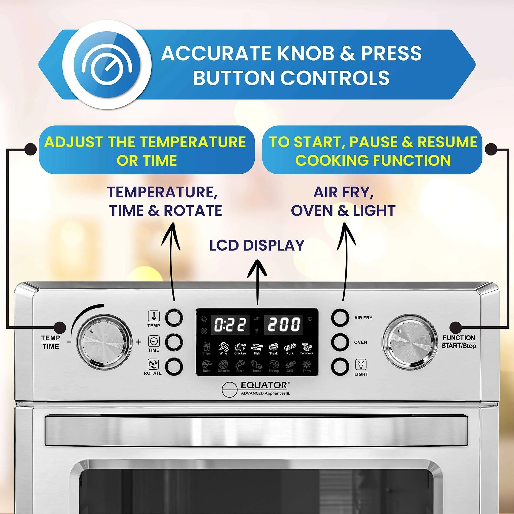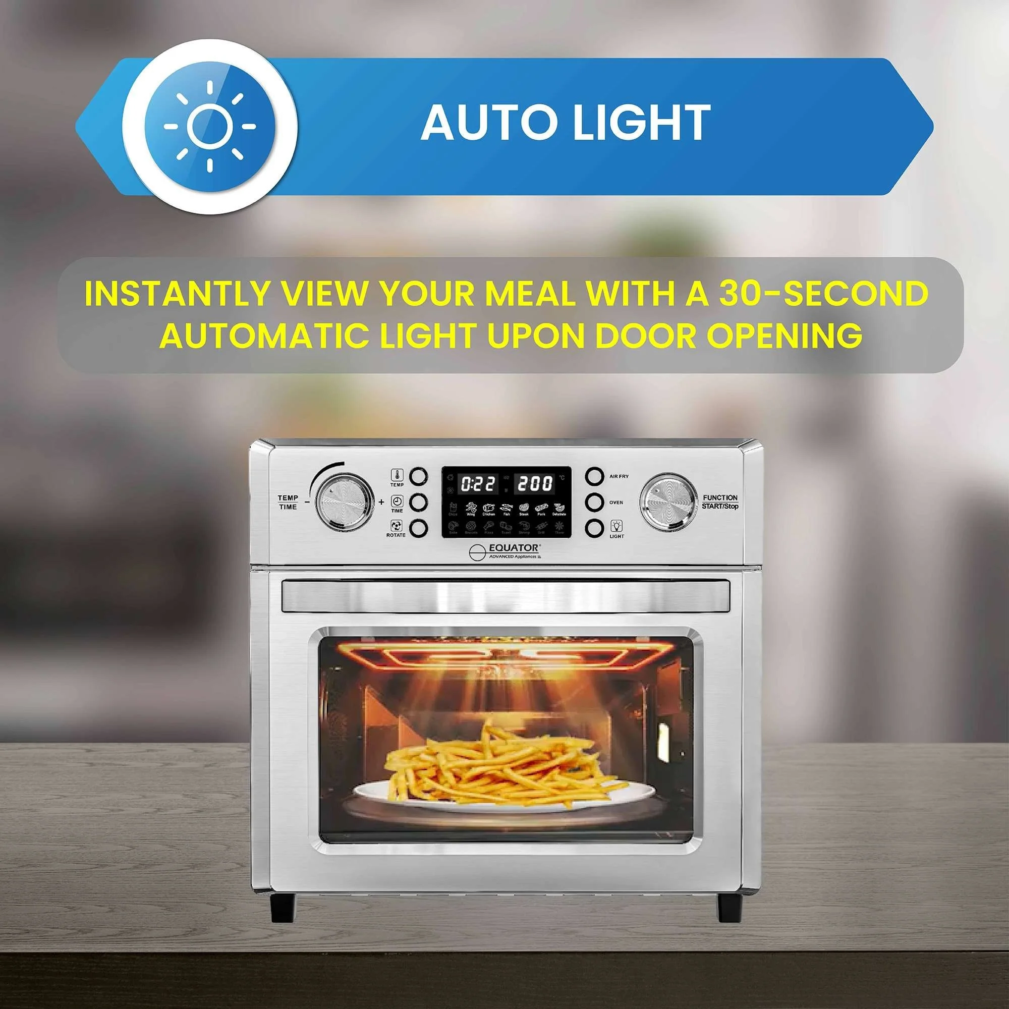 Auto Light & LCD Touch Display - Bright interior light activates when the door opens, paired with a sleek control panel for intuitive cooking.