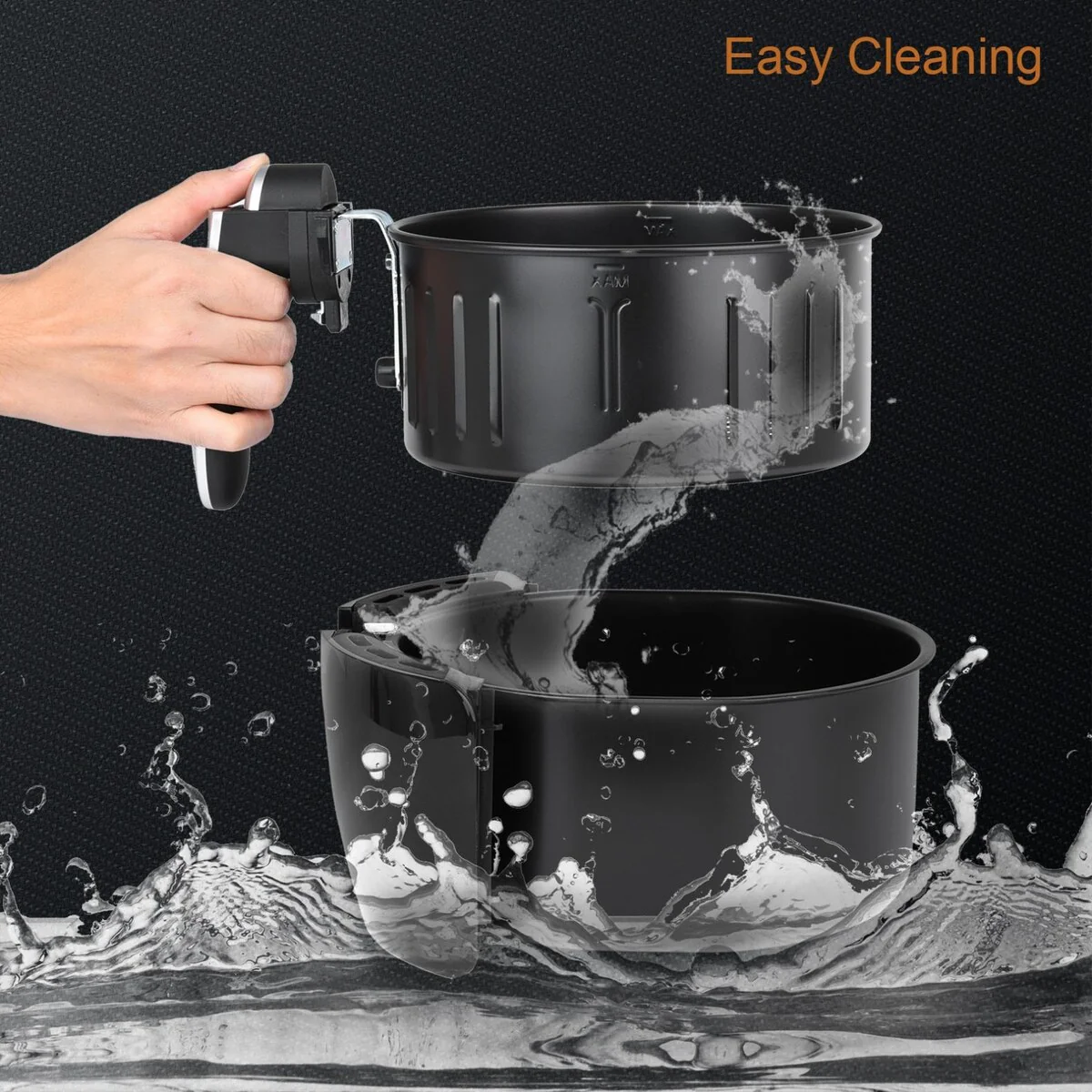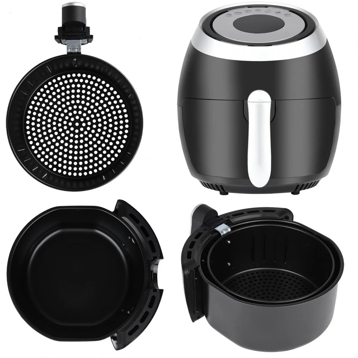The hot air fryer comes with cake pan & metal holder allowing you cook different food in the same time with such a large capacity basket