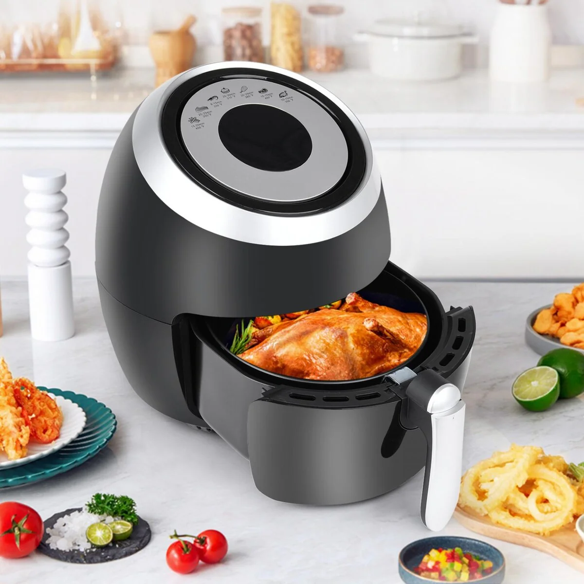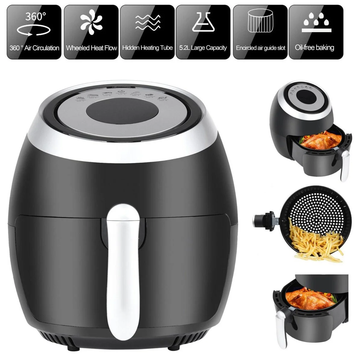 Utilizing the latest advances in 360° hot air technology this large air fryer circulates hot air at a high speed from every angle cooking your favorite dish without losing the nutrition and taste