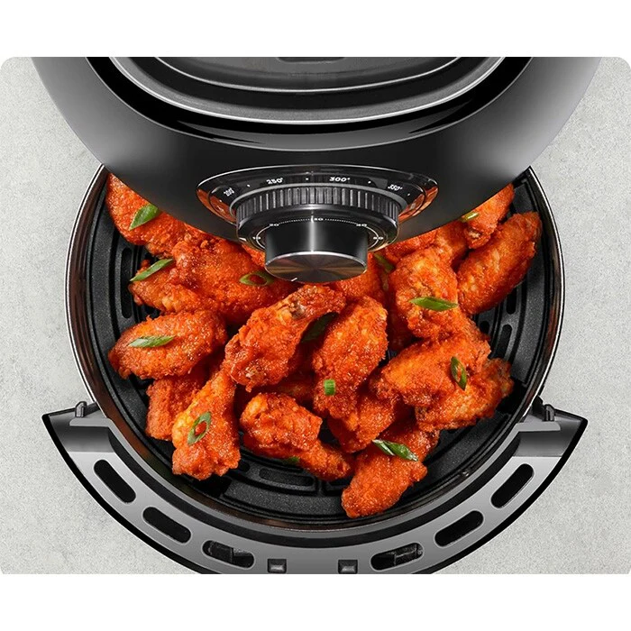 HEALTHIER FRYING: This air fryer makes ‘healthy fried foods’ a reality. Temperature ranges from 200-400 F allows you to cook at your desired temperature, achieving a healthy, crispy, fried finish using at least 98 percent less oil than traditional fryers. Air fry vegetables, pizza, frozen foods and leftovers – this air fryer evenly crisps every inch of your food.