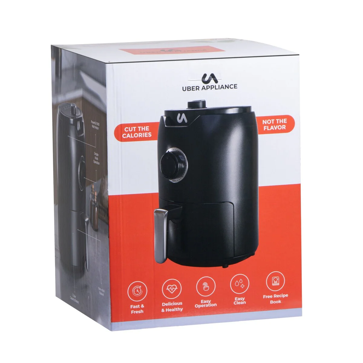 The Uber Air Fryer mini features an easy to use knobs for temperature and time setting with temperatures ranging from 150F to 400F, the air fryer can perfectly cook chicken, steak, fries, wings and so much more with a single turn of a knob. Every Uber Air Fryer Mini Comes with a free recipe book so that you can explore tasty meals as soon as you get it with plenty more recipe’s on our site.