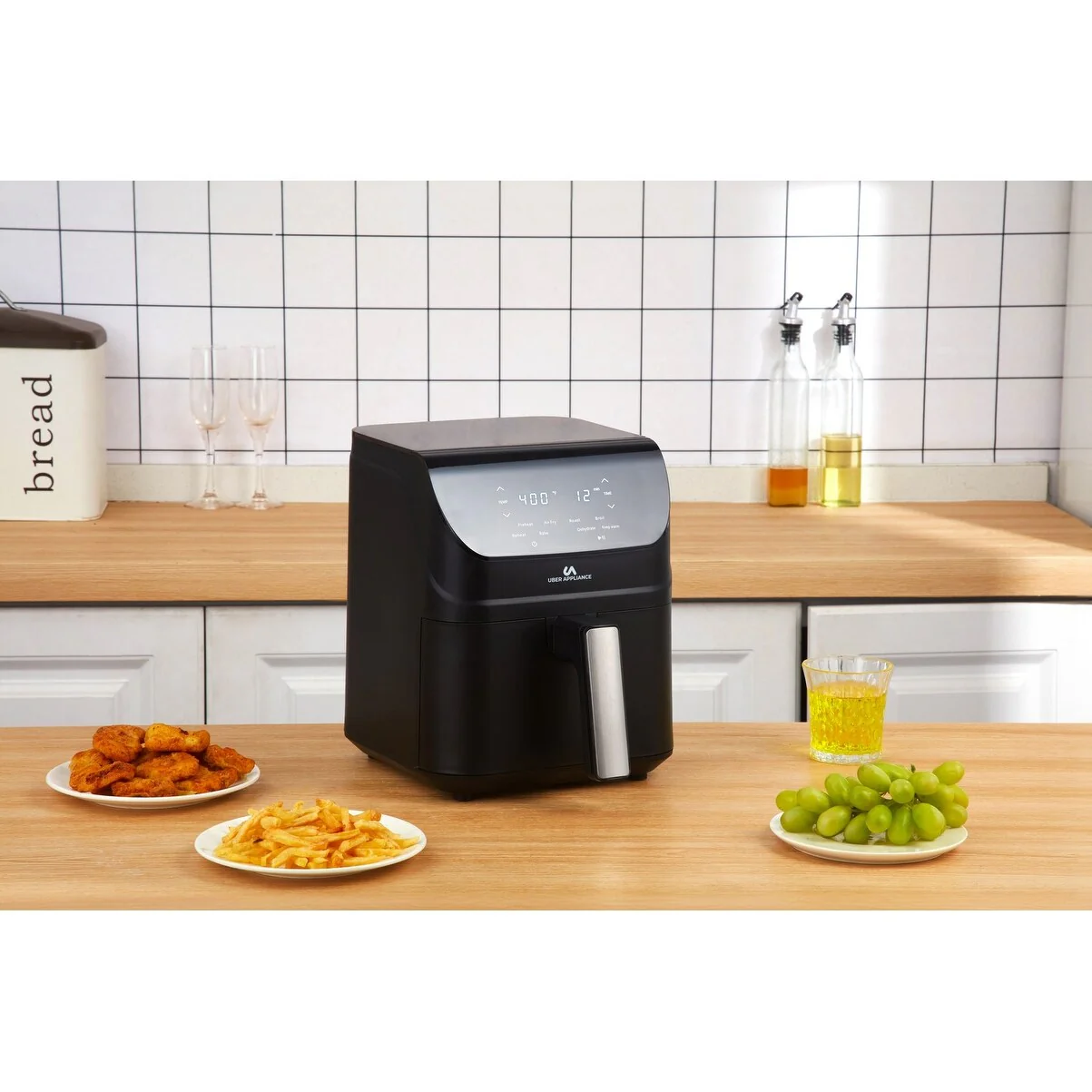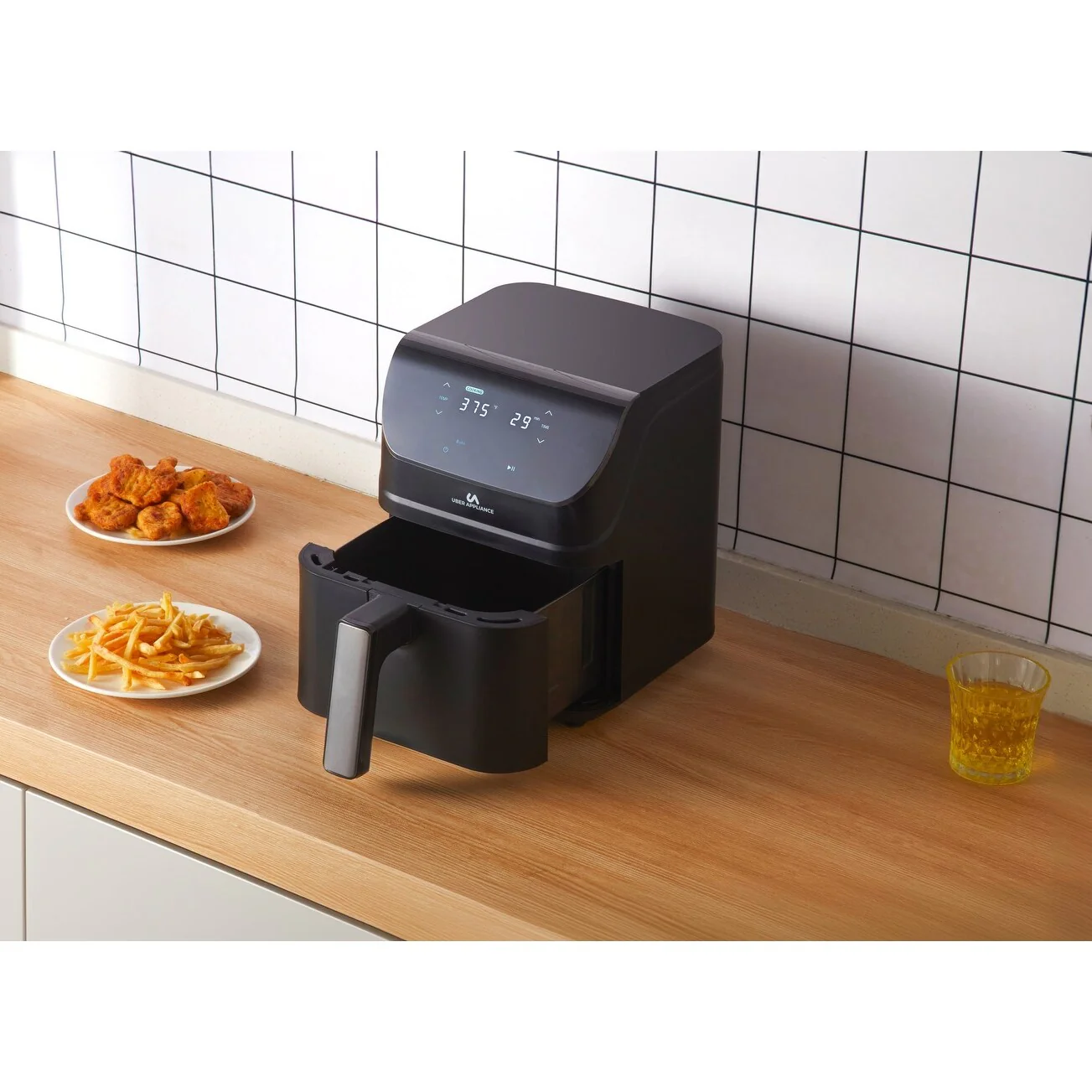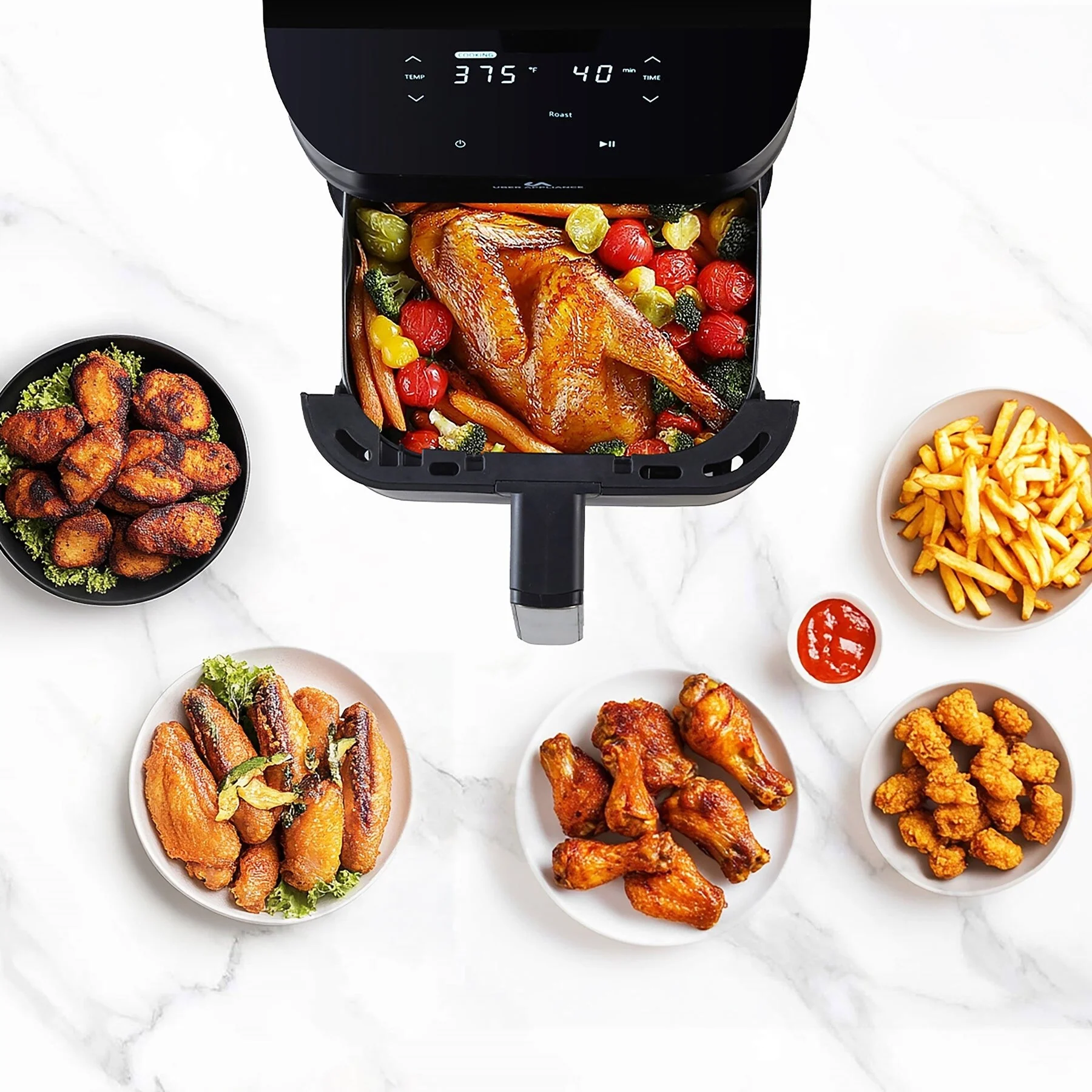 The Uber Air Fryer XL features an easy to use touch display for temperature and time setting with temperatures ranging from 150F to 400F, the digital display also has several pre-set cooking temperature and time to perfectly cook chicken, steak, fries, wings and so much more with a single press of a button. Every Uber Air Fryer XL Comes with a free recipe book so that you can explore tasty meals as soon as you get it with plenty more recipe’s on our site.