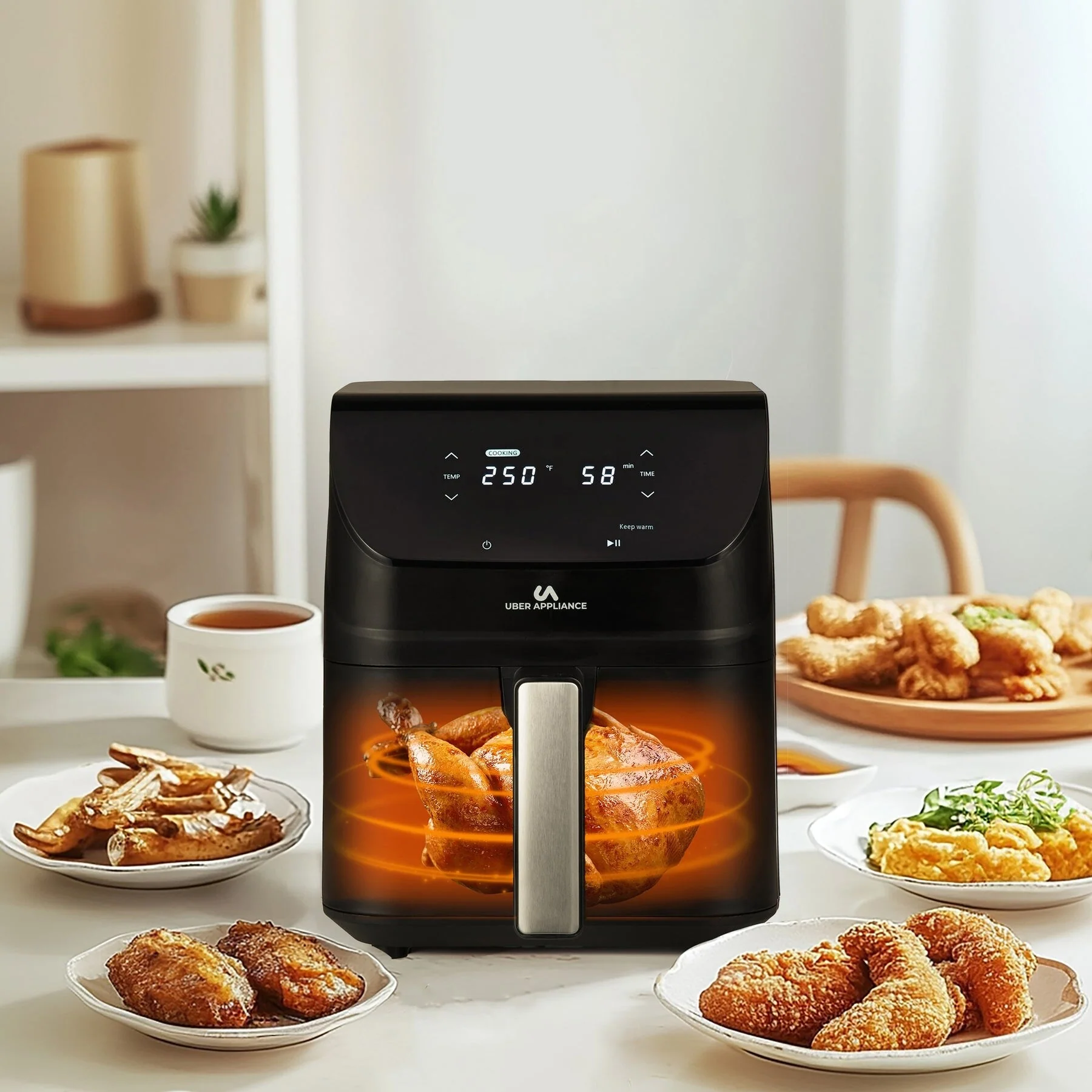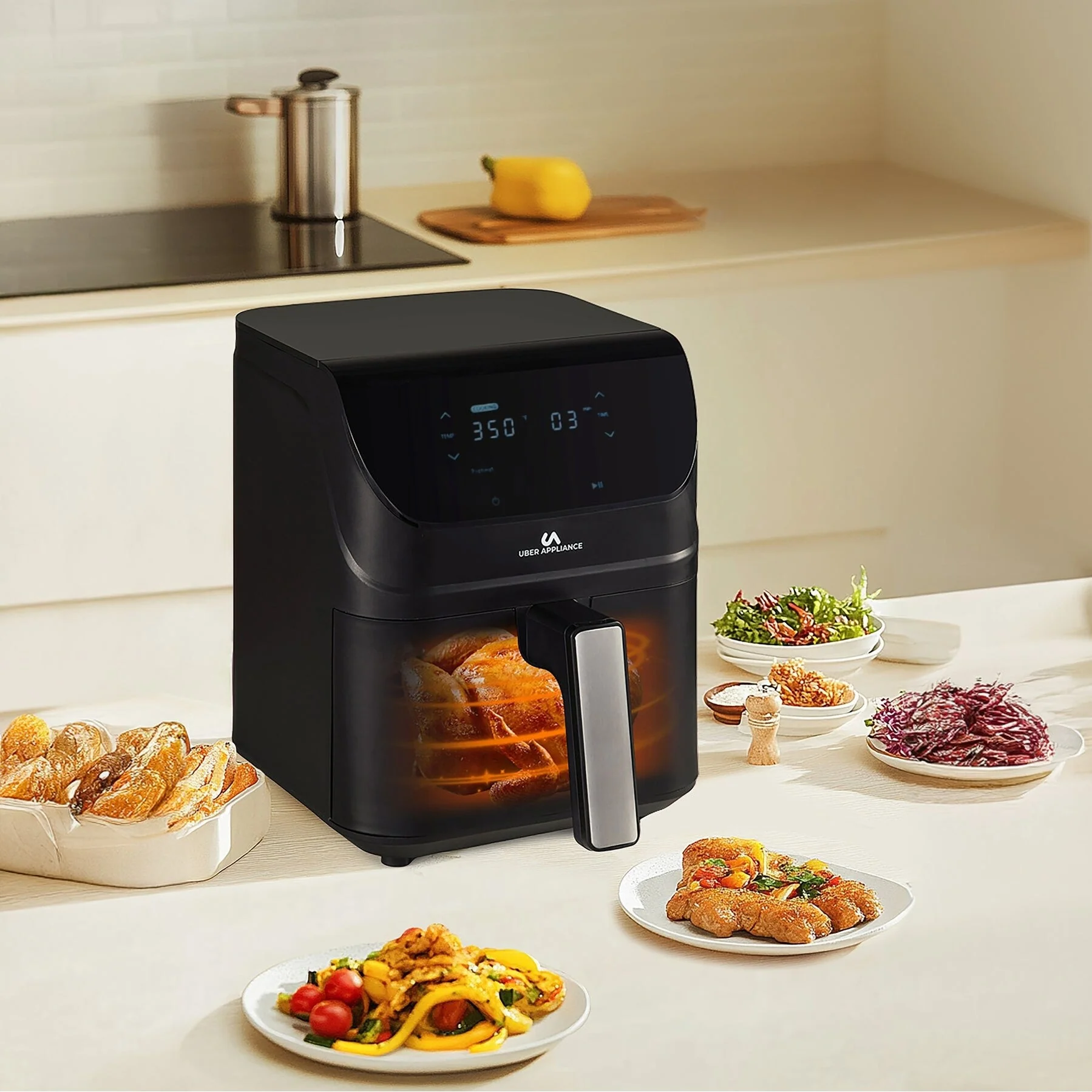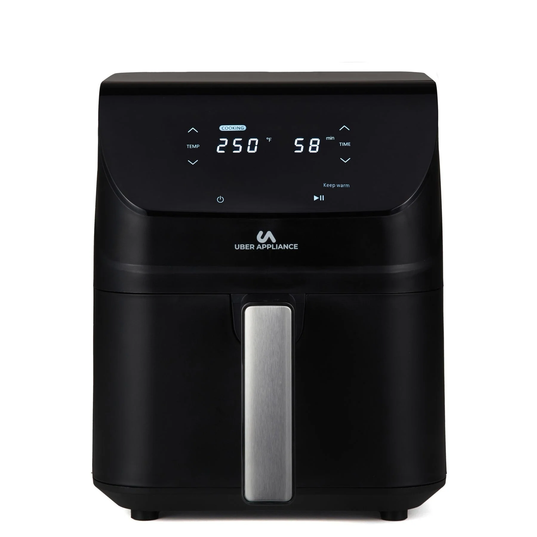 Uber Appliance offers one of the best air fryers on the market today, our Uber Air Fryer XL is perfect for any family with its roomy 5 quart basket you can air fry a whole chicken. The dishwasher safe basket and grease separator with non stick coating make cleaning a breeze, just wipe it down with a damp soapy microfiber towel and toss it in the dish washer.