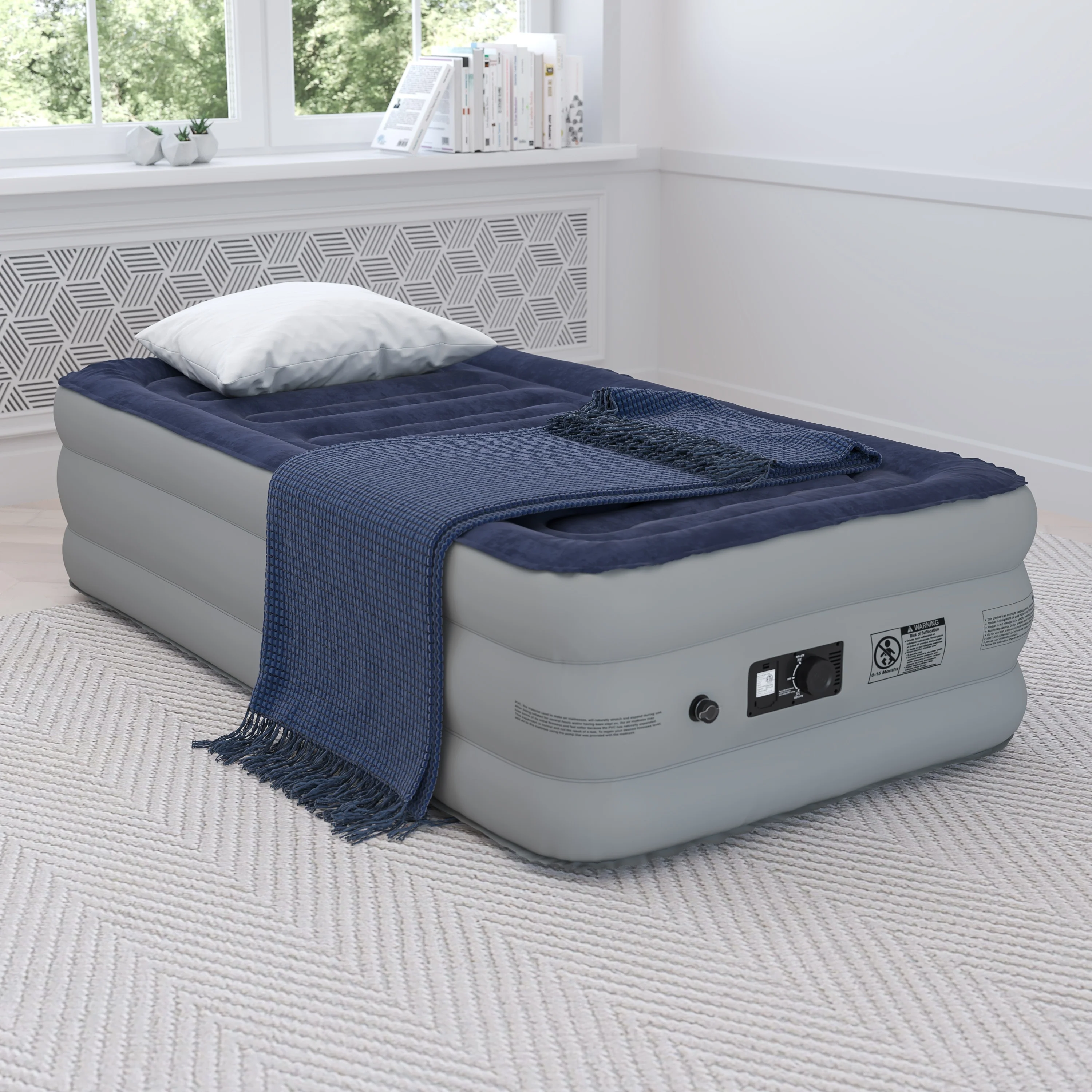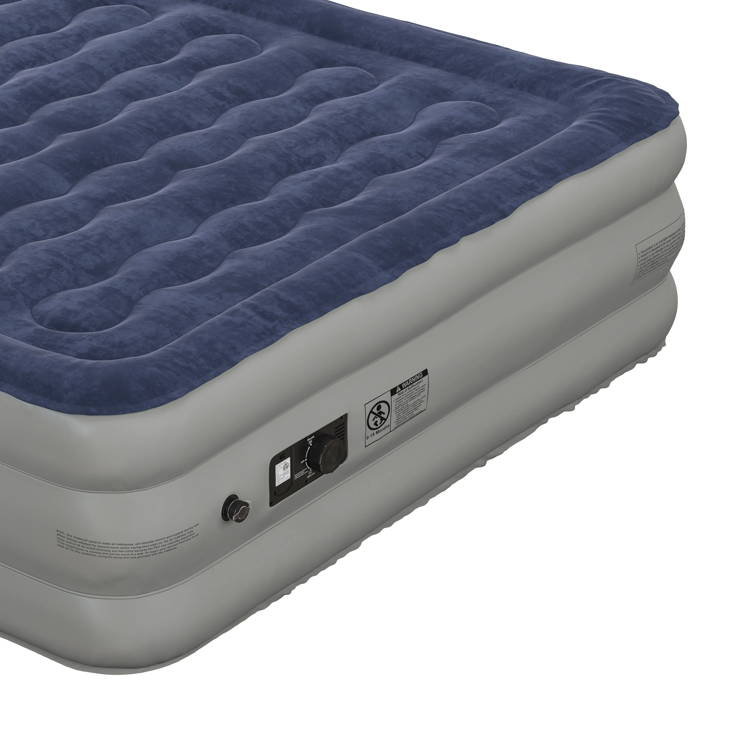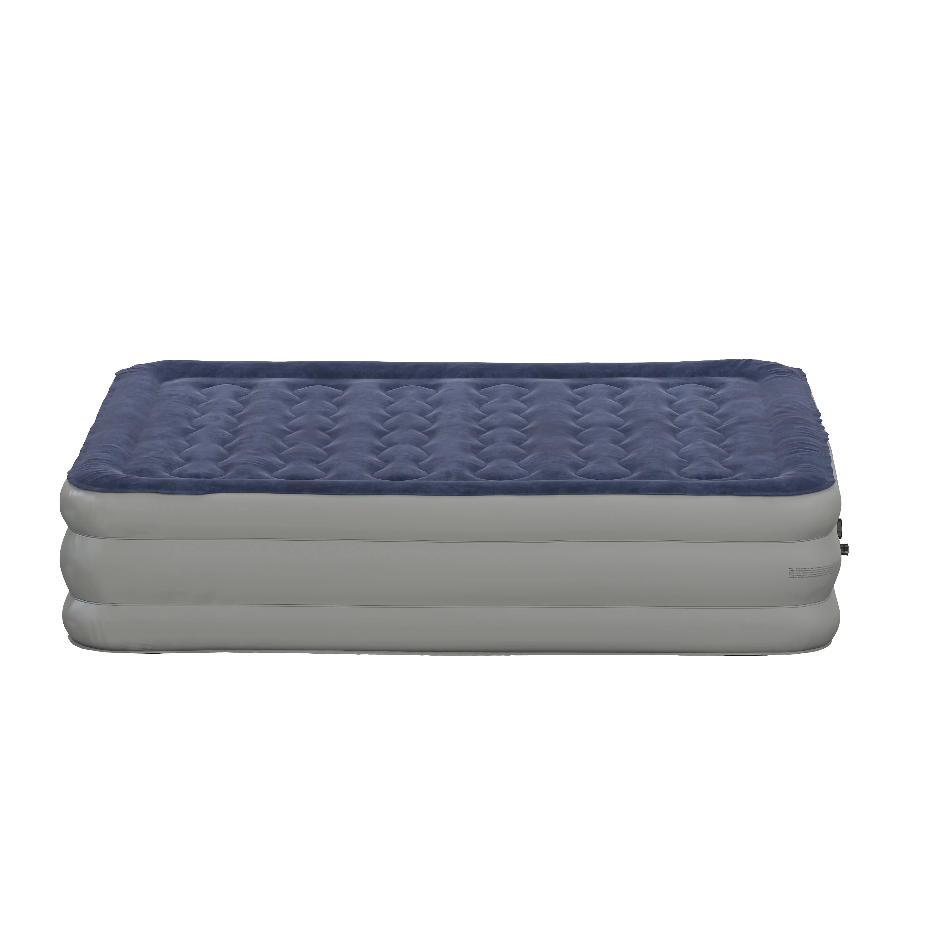 Always be ready for out of town company, visits from the grandchildren, or ensure a comfortable sleep space for party guests who shouldn't be driving when you purchase this air mattress with a built in pump. Everyone likes their sleep surface a little different, and this portable air mattress allows you to customize the firmness to your desired level. Add or remove air with the inflate/deflate switch on the internal built in pump to get your perfect fit. The flocked top over the base is pleasing to the eye and doesn't require bedsheets, so there is no added expense. Made from PVC, our air bed is puncture-resistant and will hold up to movement around the home. This inflatable mattress folds for compact storage and easy transport and features integrated cord storage and a carrying case, making it an excellent addition to your campsite tent or RV. It inflates or deflates in about 3 minutes for quick use.