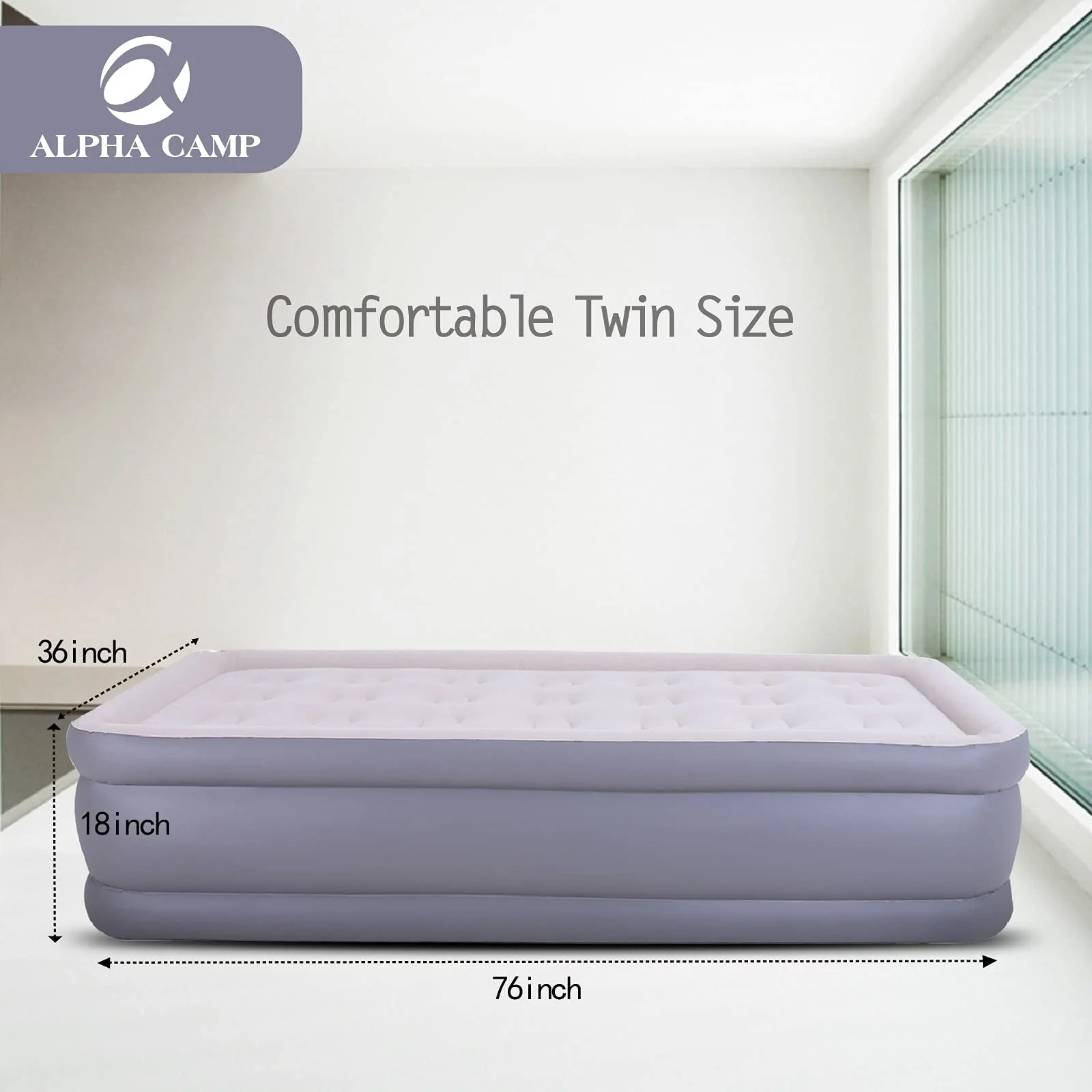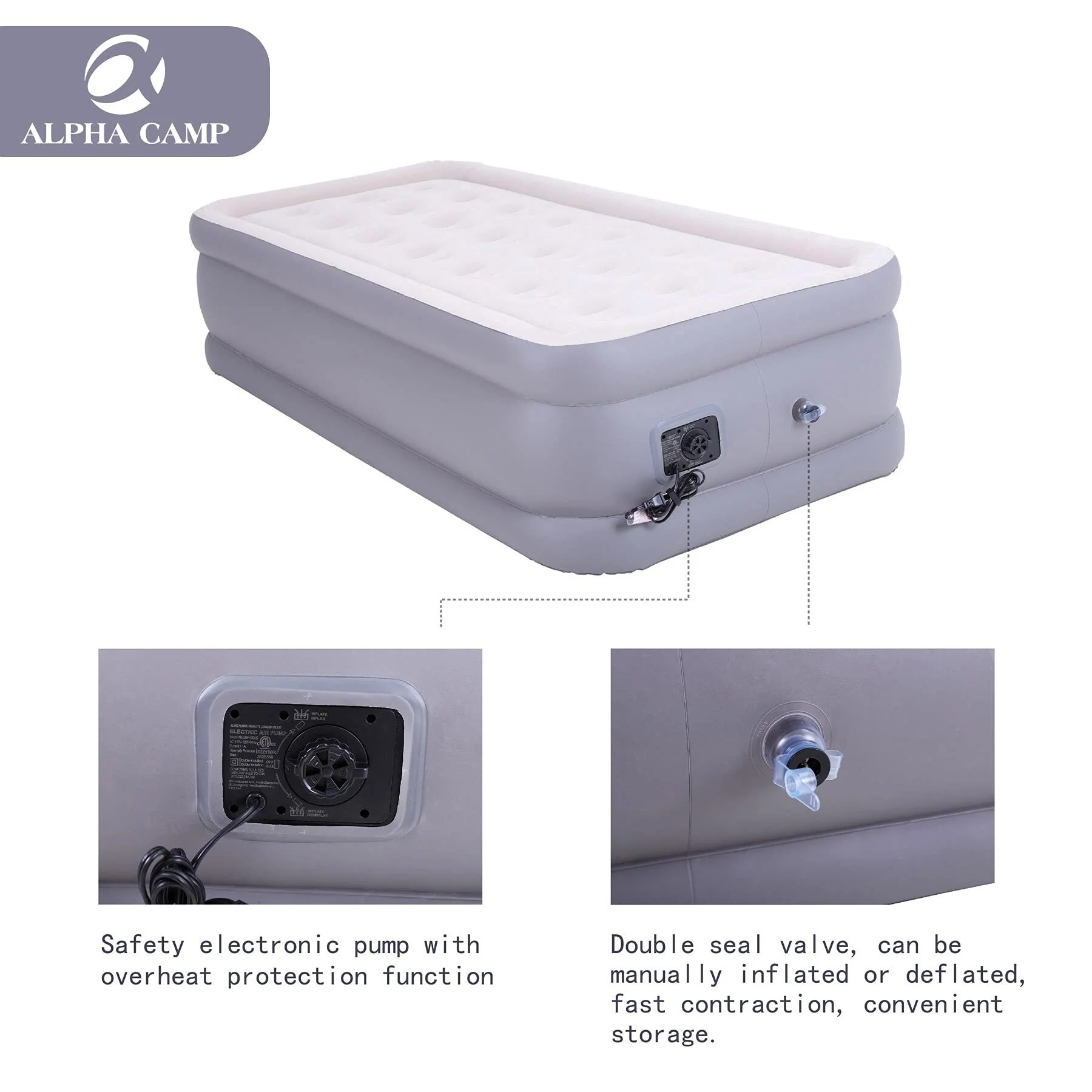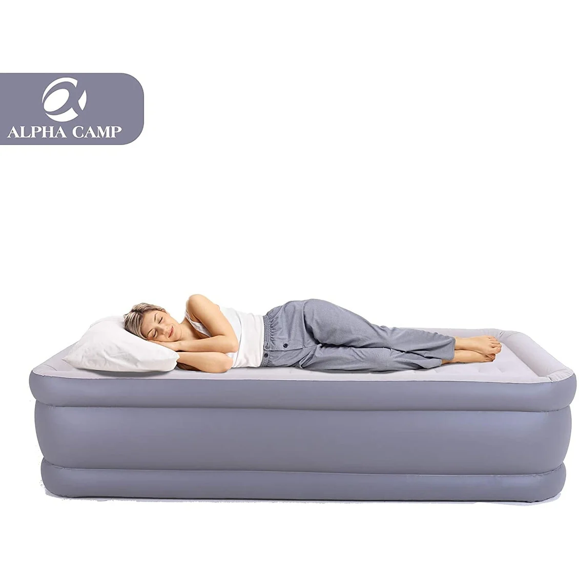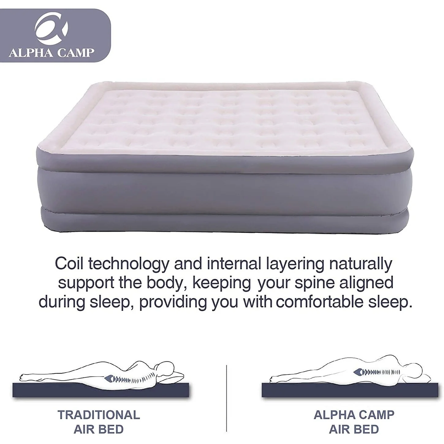 Alpha camp air bed pumps with built in pump inflates in under 2 minutes. Our portable, inflatable mattress has a sturdy coil beam construction - perfect for a comfy cat nap in your neck of the woods. It can be used as a floor mattress at home, a portable bed for traveling, and even as a camping mattress in the great outdoors. Includes a carry bag, making it easy to take your bed along with you anywhere you go. Inflate and deflate it any time you need to, and never worry about where you're going to sleep again!