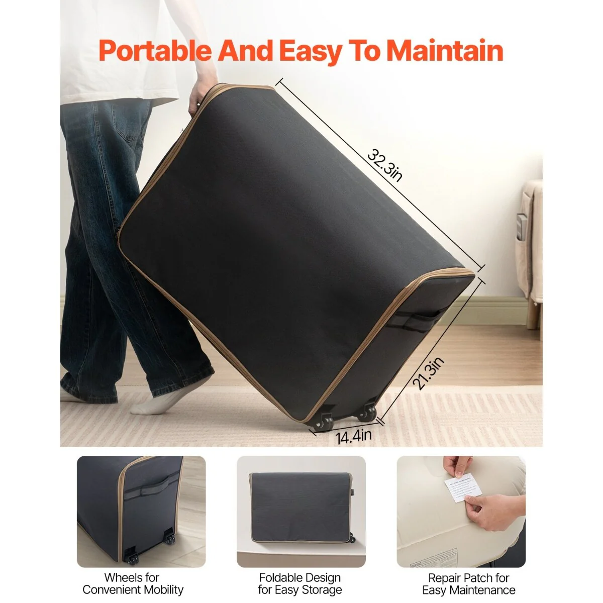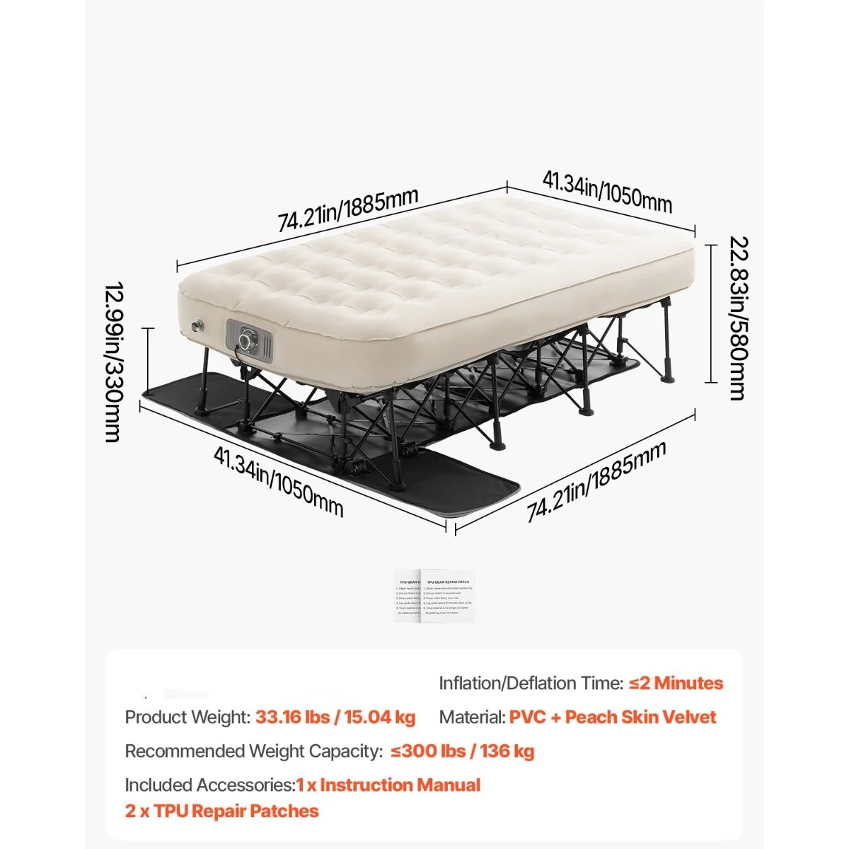 - Easy Storage & Maintenance: After use, simply deflate the camping cot mattress, fold the frame, and store it in the wheeled carry case for easy transport. Includes 2 TPU repair patches (7x7cm) for quick fixes.