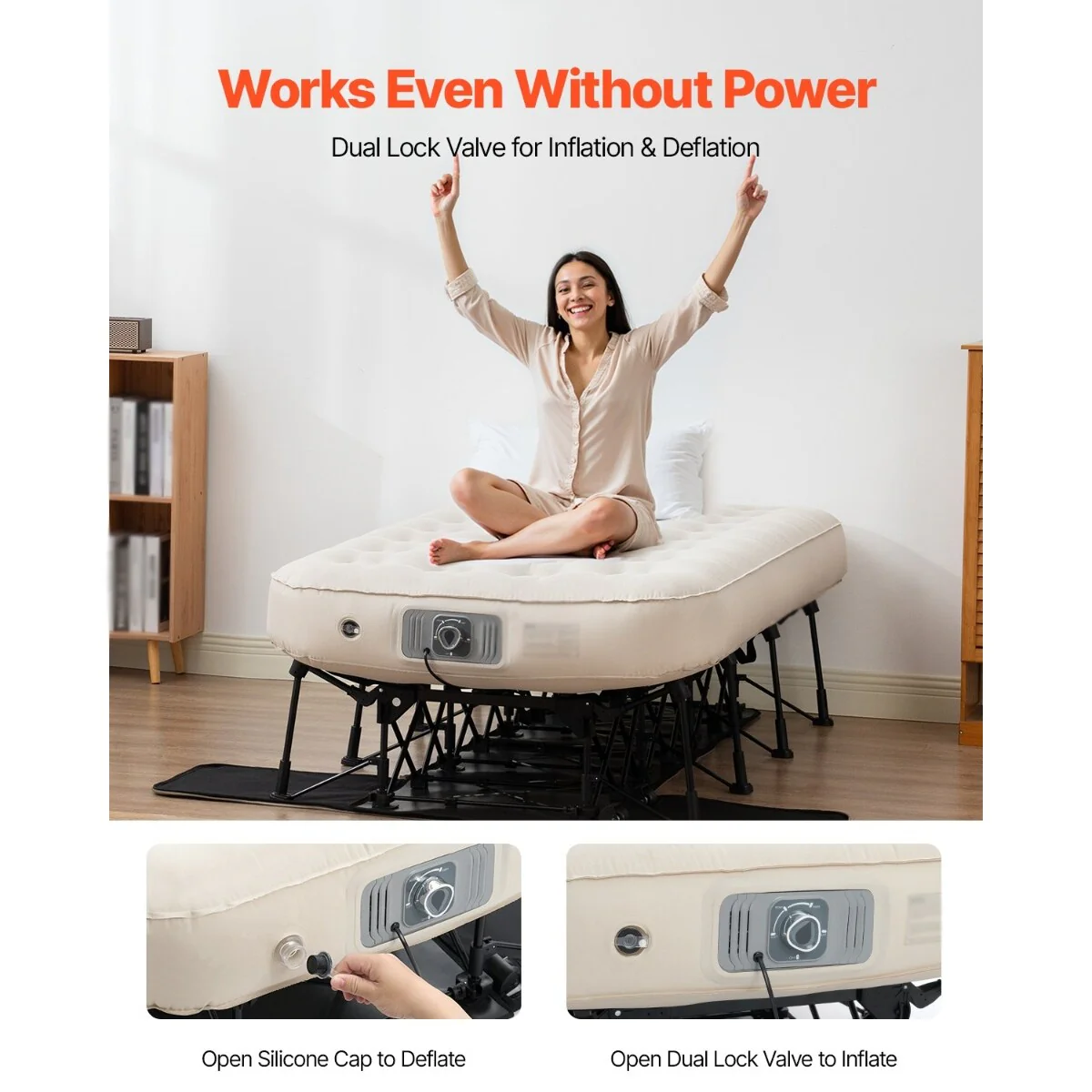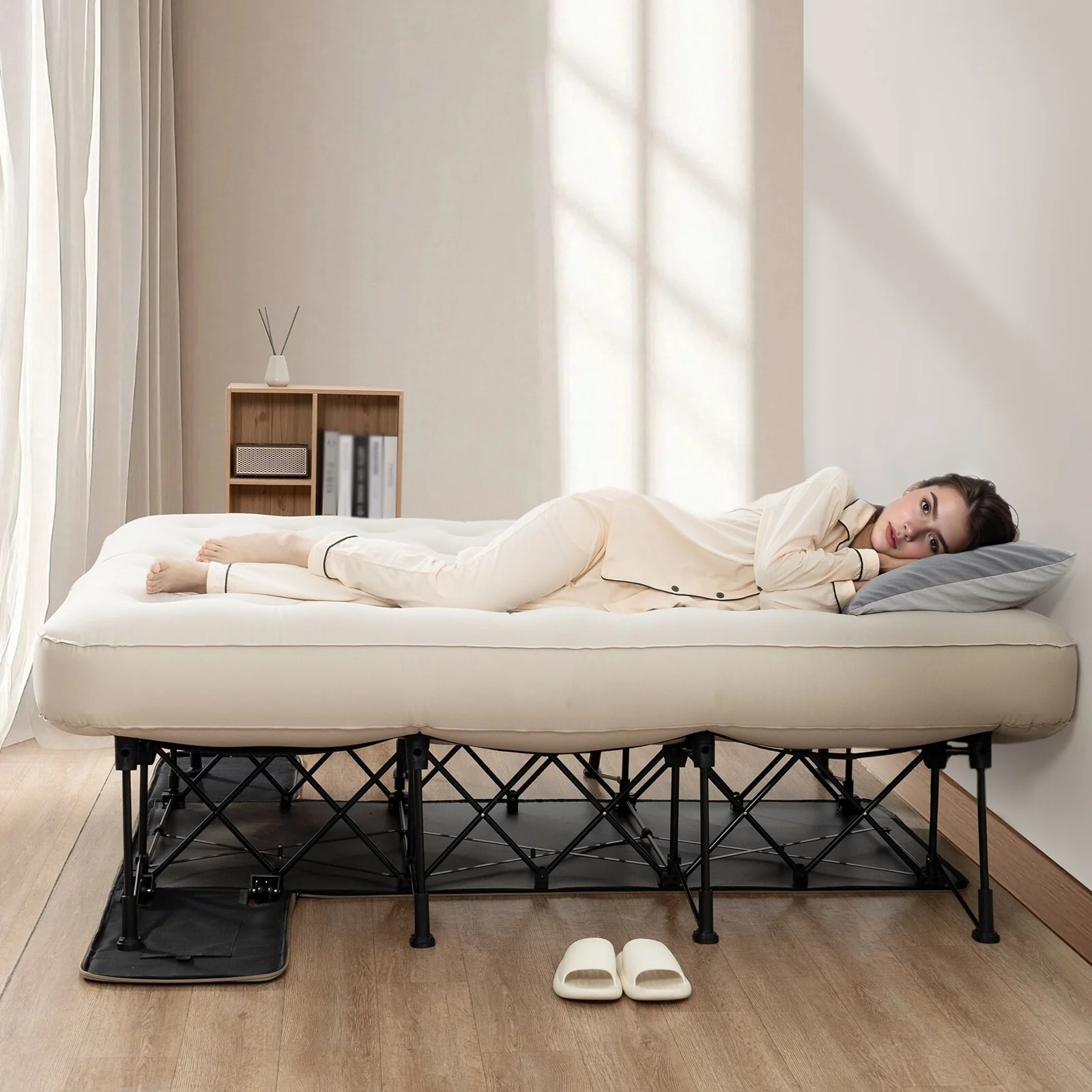 - Versatile Use: This air mattress with frame is ideal for both indoor use (bedrooms, living rooms) for hosting guests, and outdoor camping (It requires power station for outdoor use).