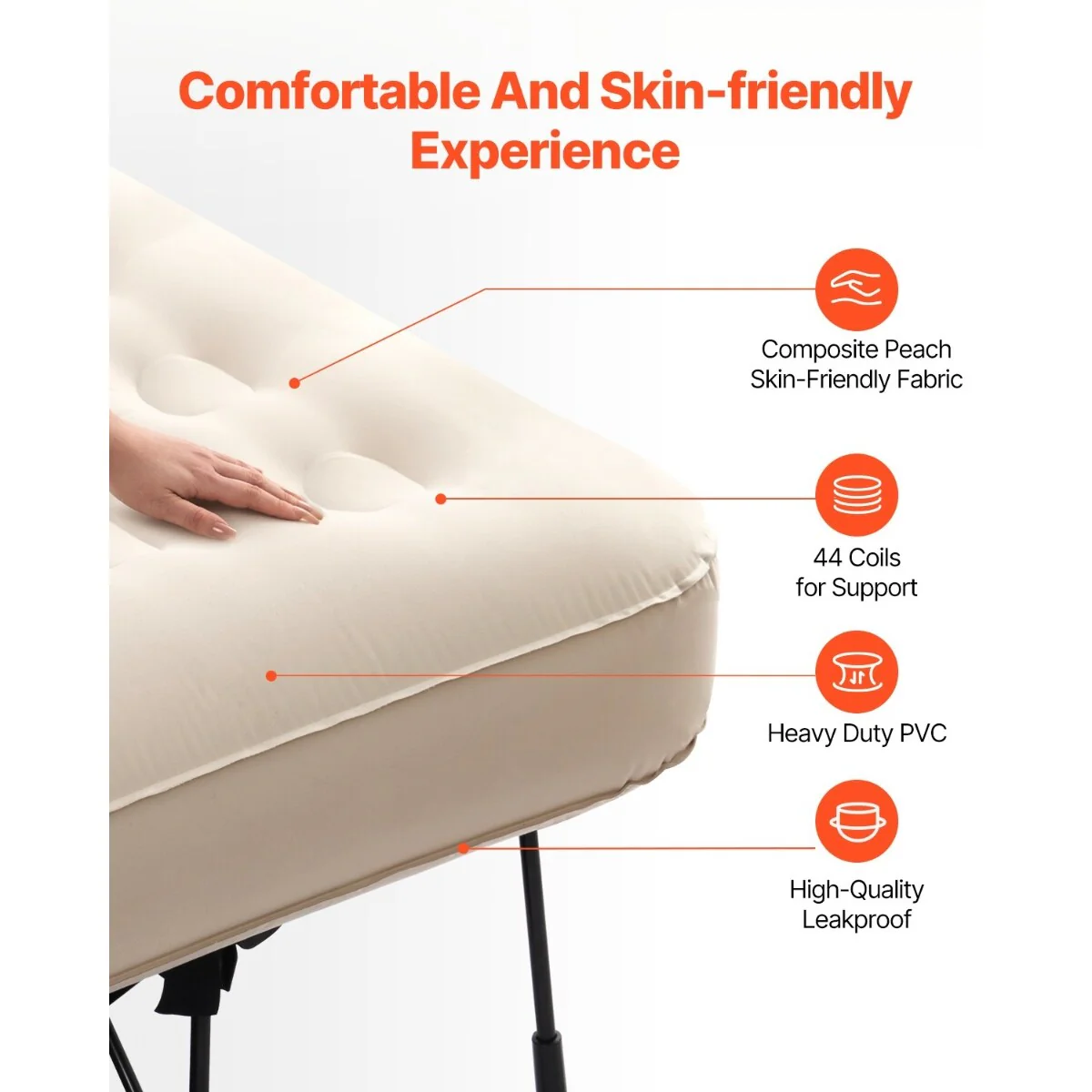 - Comfortable Use: The air pump has 3 adjustable pressure settings (soft, medium, firm), allowing you to achieve your desired comfort level. Featuring 44 circular coils, the inflatable mattress with legs provides soft, ergonomic support, making it easy for seniors to get in and out.