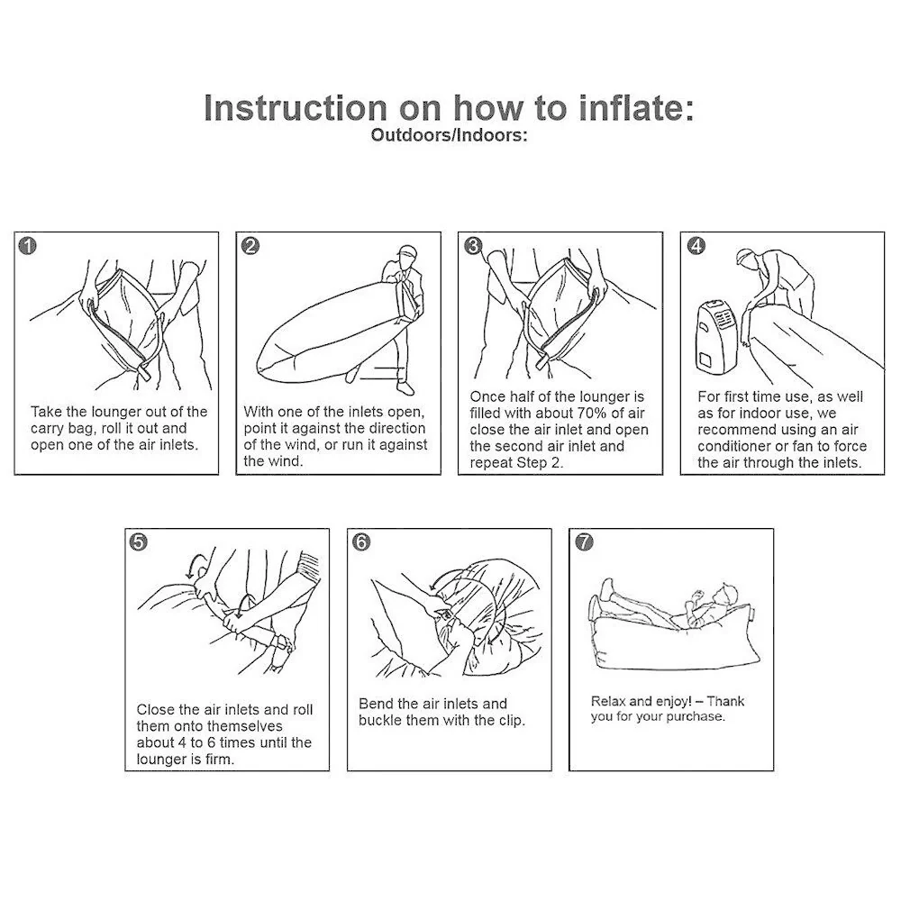 - No pump required. Just keep the air inlet open, run a few steps to inflate the sofa and quickly close the mouth to finish inflating.