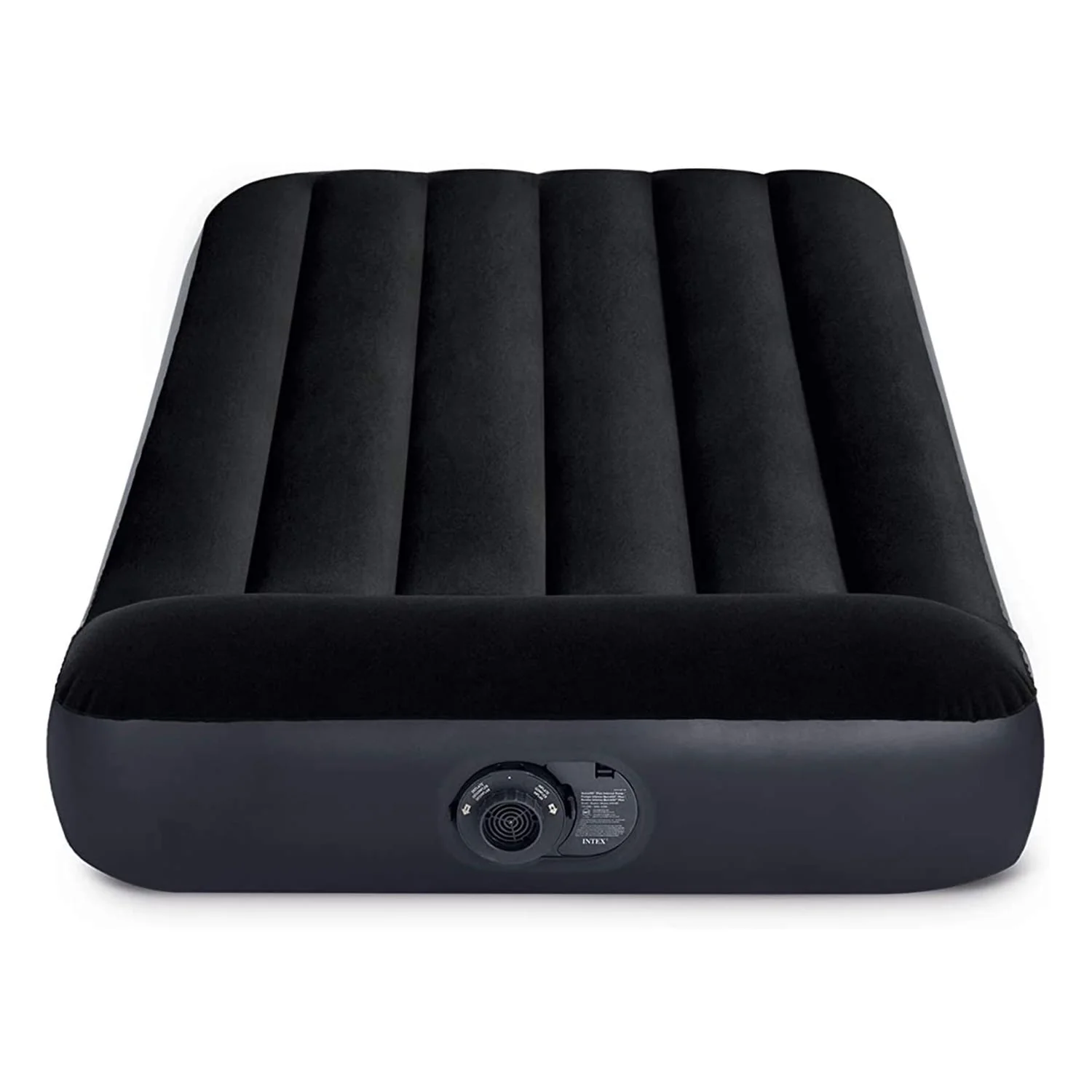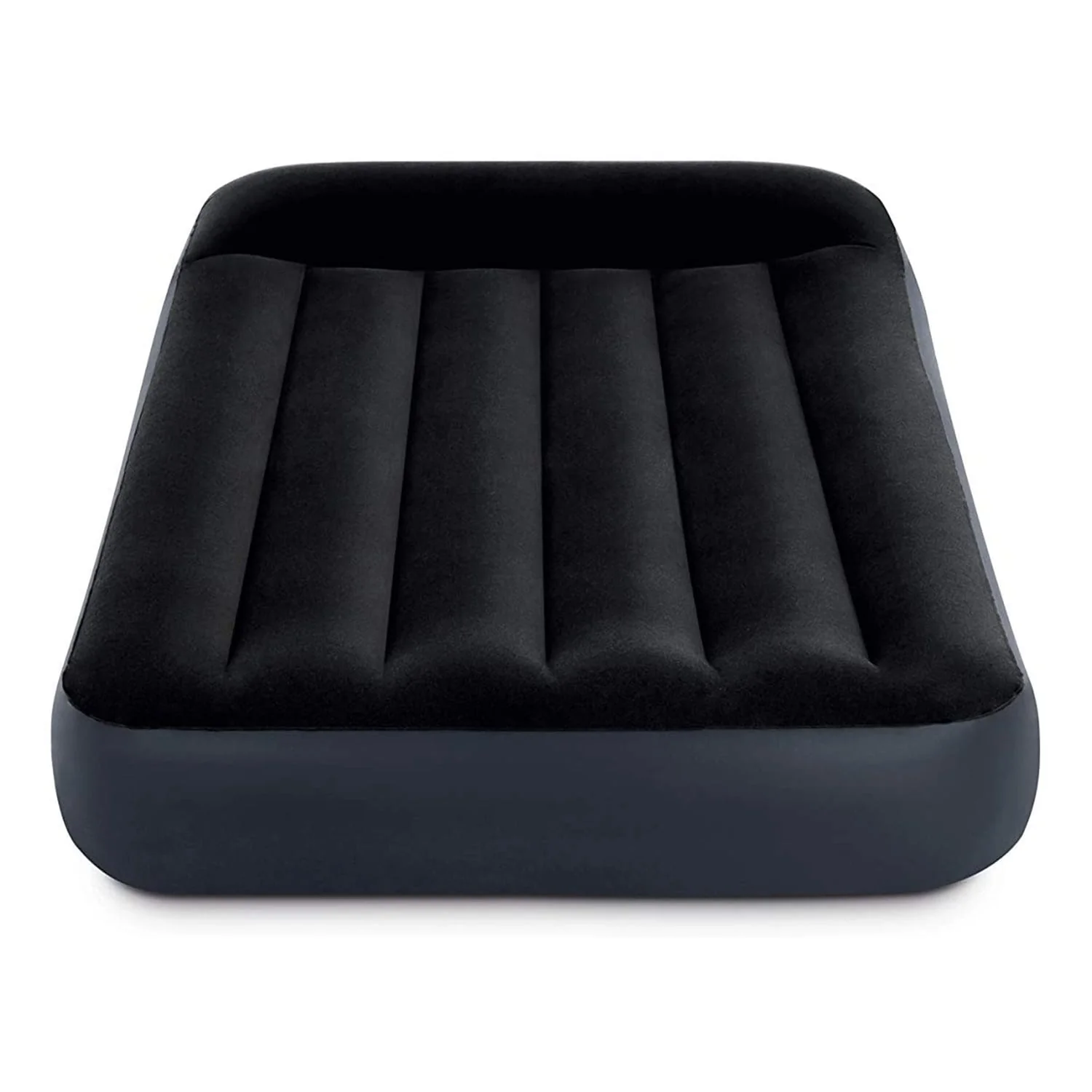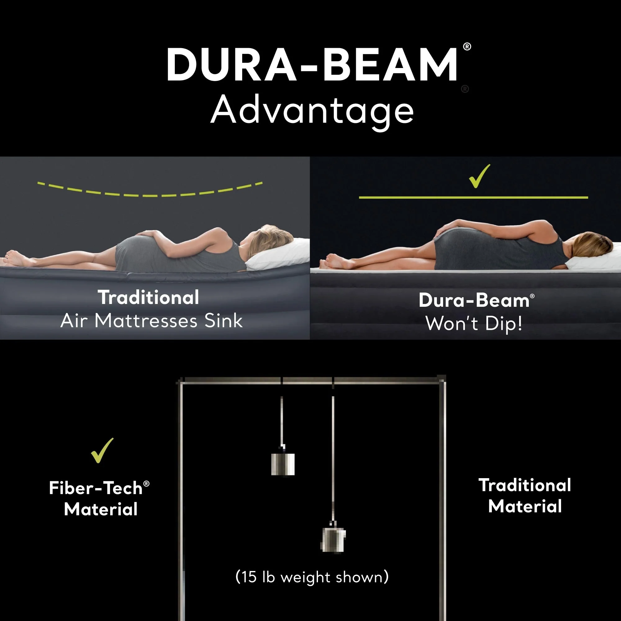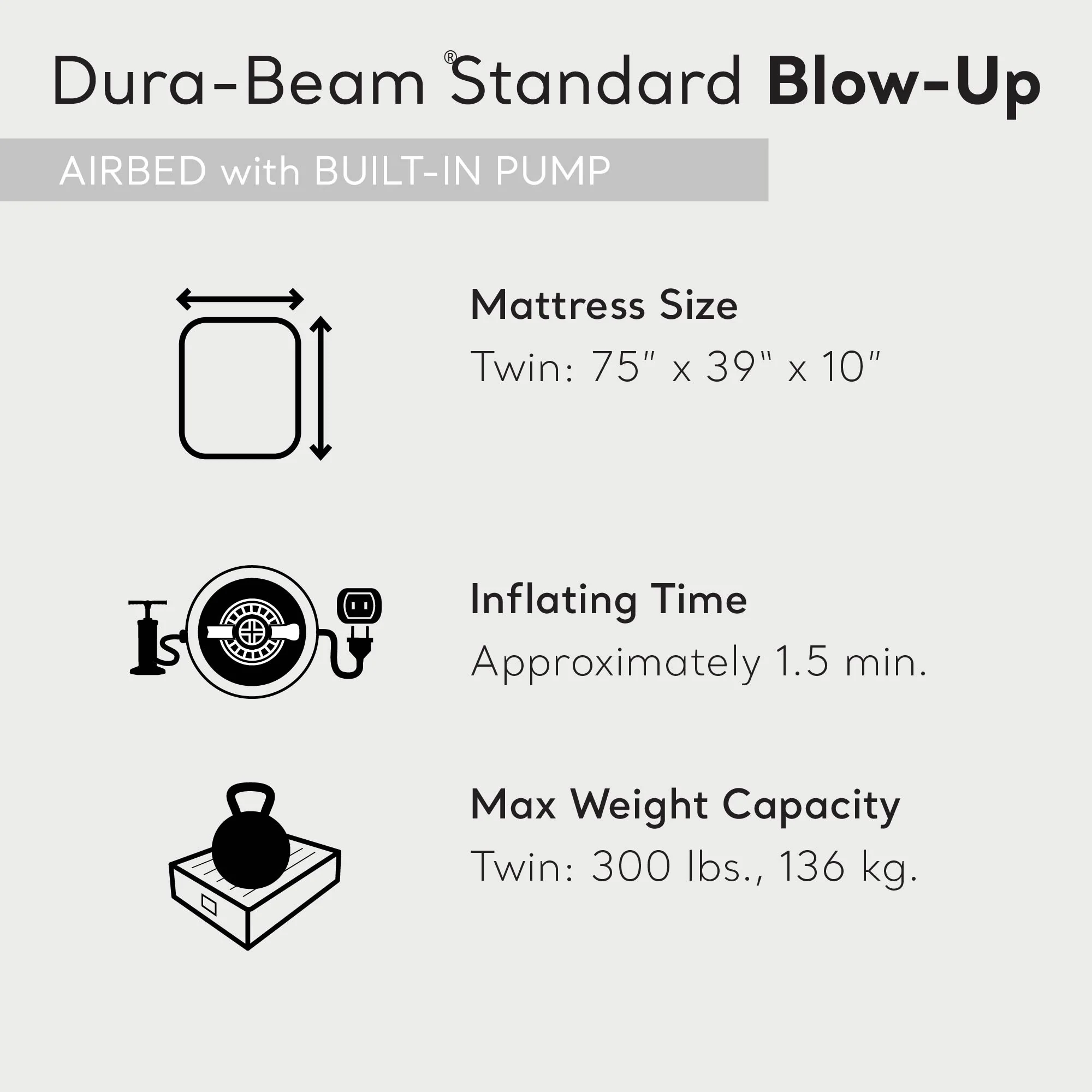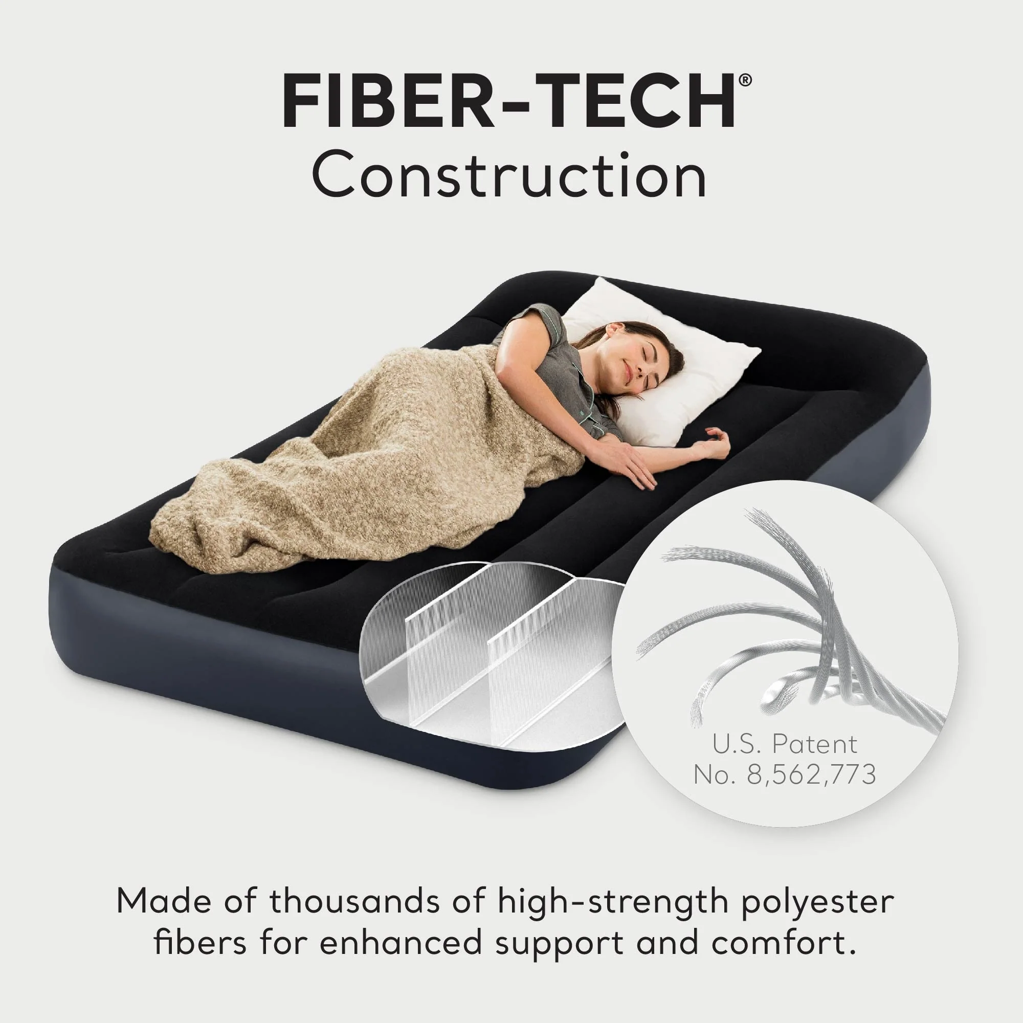 Covered in a velvety sleeping surface and enhanced with Fiber-Tech interior construction for lasting durability and comfort, this compact and lightweight airbed is built for great sleep anywhere you go. This mattress features a built in pillow and includes a carry bag. The built in pump inflates the bed in 3 minutes. Weight capacity is 300 pounds. WARNING: Never place an infant 15 months and young to sleep on an inflatable mattress. When used by children over 15 months old provide at least a shoulder width space between other objects to avoid entrapment.