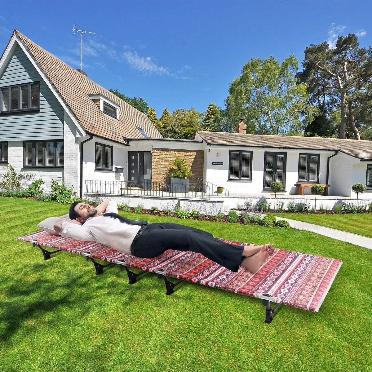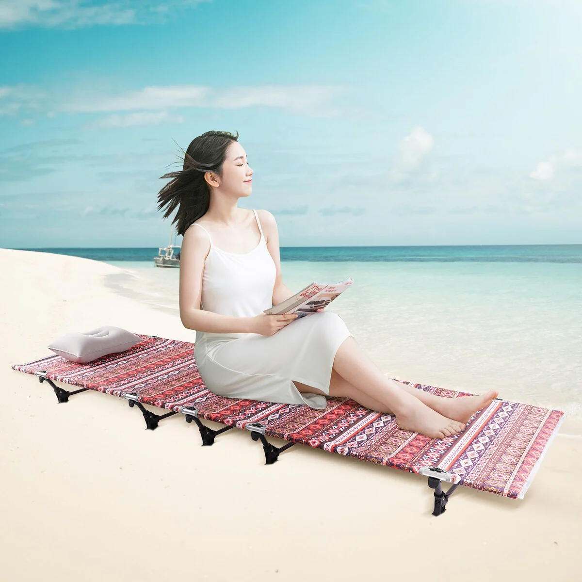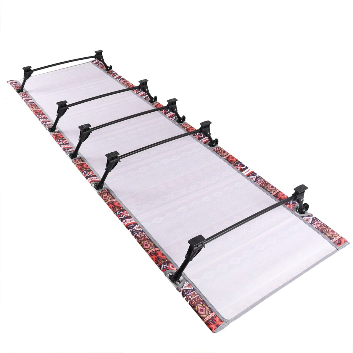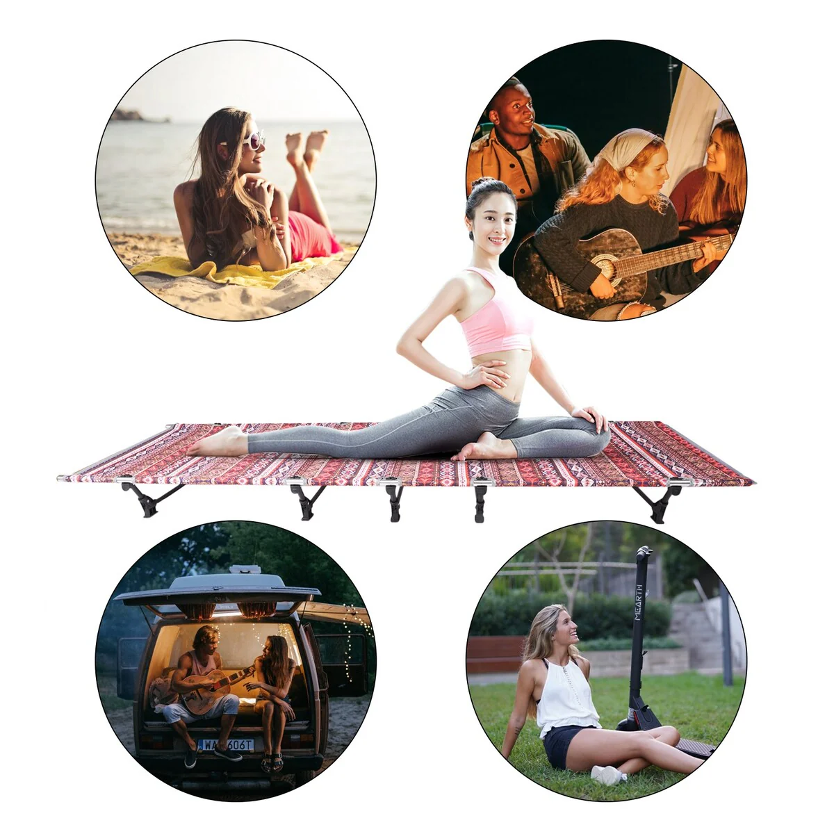 This is a portable folding bed that can be used as camp bed, tent mat, mat pad, fold-out bed for office nap or medical-aid stretcher. Applicable to a variety of activities, such as camping, traveling, hiking and some other outdoor activities. You can enjoy comfortable rest in the open air. It also can be used as a good rest furniture at home. It can be placed anywhere you want.
