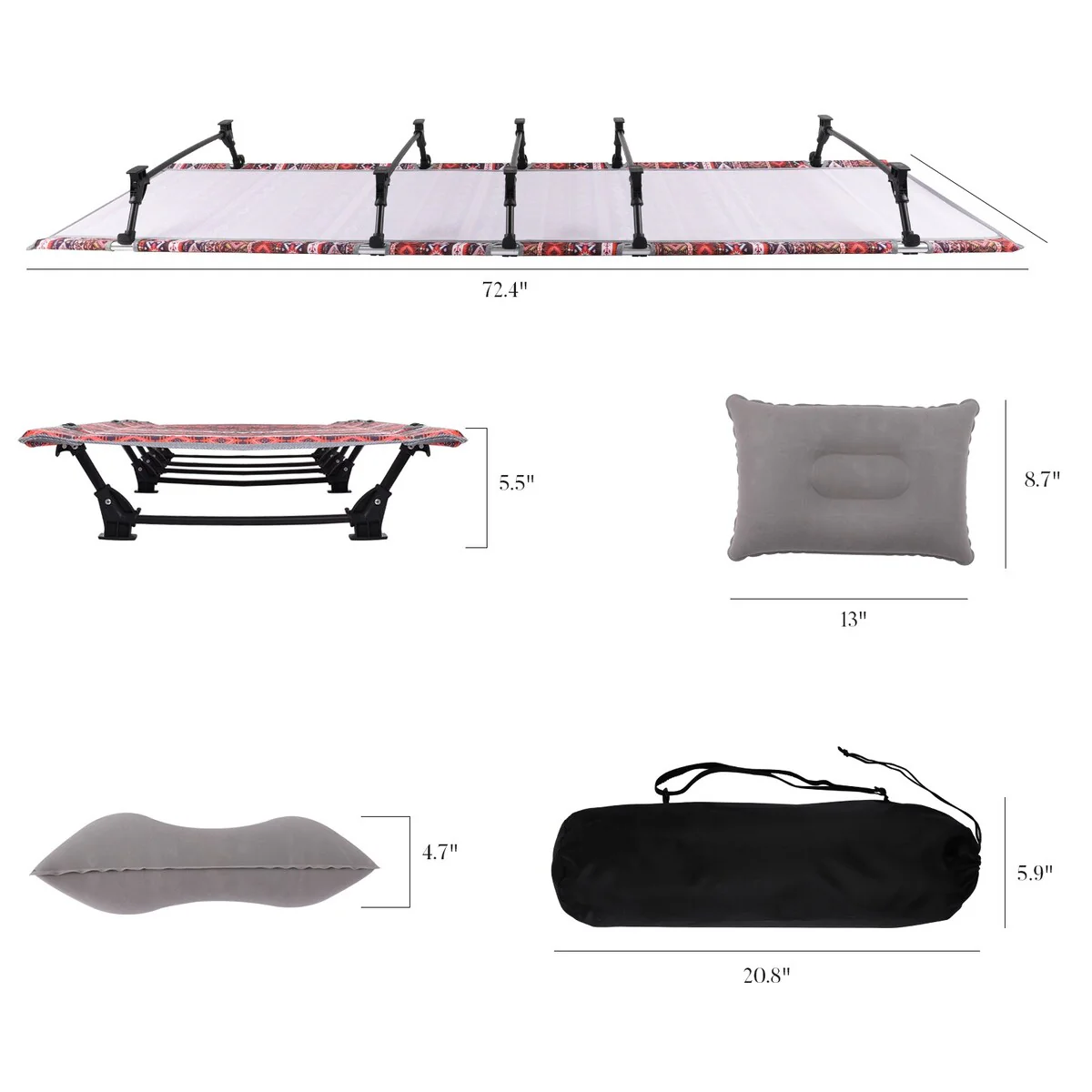 Unfolded Size: 72.4'L x 23.6'W x 5.5'H