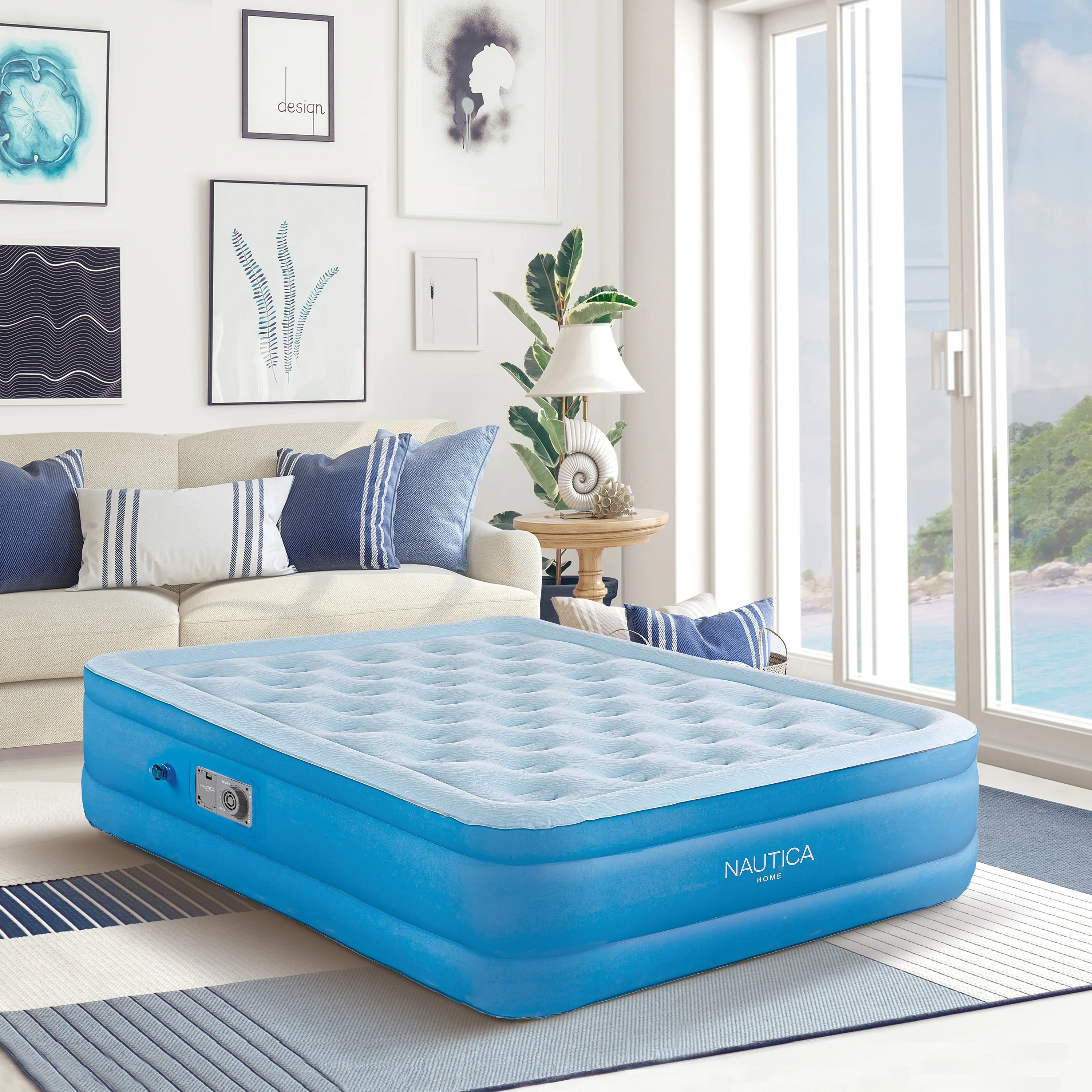 Nautica Home Cool Comfort Air Mattress with Built-in Pump - Raised Inflatable Bed with Cooling Top and Comfort Coil Support