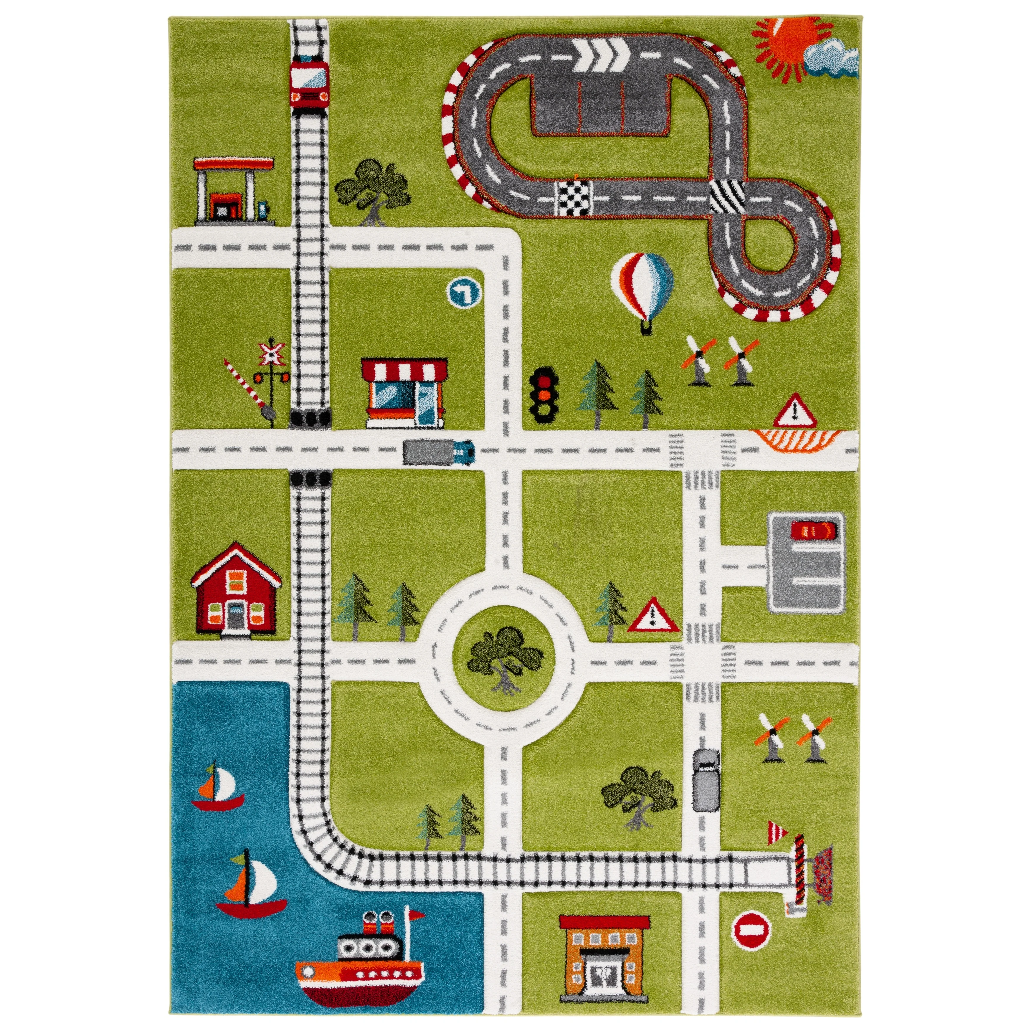 Add a touch of playful charm to your child's space with our delightful 2' x 3' Accent Area Rug, designed to spark imagination and create an engaging environment in any room. Skillfully power-loomed in Turkey using high-quality polypropylene pile, this rug boasts a soft and comfortable 5/8' height that is perfect for little feet to relax and play on.Dressed in a versatile grey and ivory color palette, this rug features an enchanting kids' style pattern that portrays a lively town scene complete with roads, vehicles, buildings, and a cheerful racetrack. It's an interactive backdrop for play and storytelling, encouraging hours of creative play.Crafted for durability and ease of care, this rug is an ideal choice for high-traffic areas and playrooms. Not only is it aesthetically pleasing and entertaining for children, but it is also OEKO-TEX certified, ensuring that it is free from harmful substances and safe for your home and family.Bring home this Turkish-made gem and watch as it transforms your child's ordinary play area into a bustling miniature world bustling with adventure and fun.