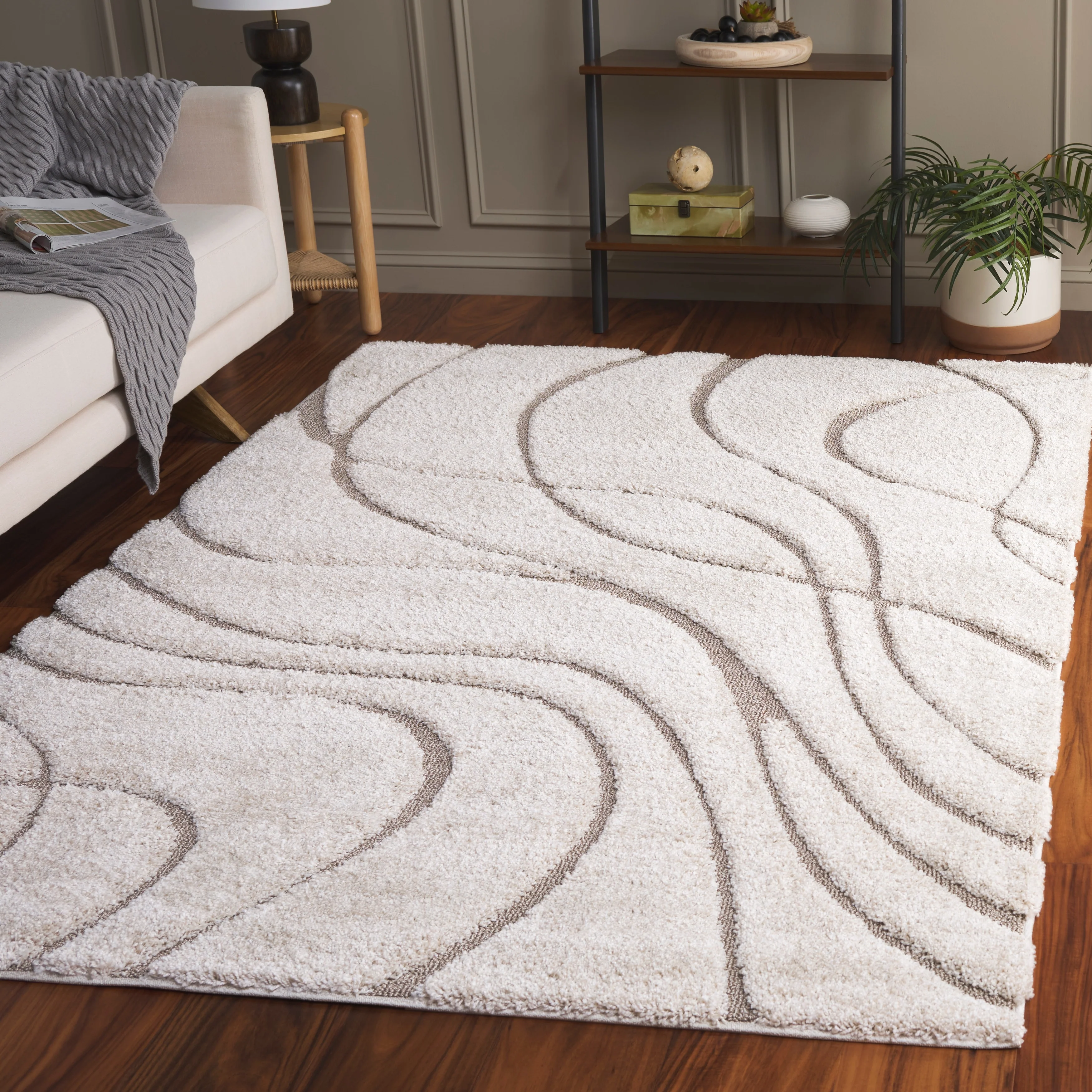Create a warm and inviting space with the SAFAVIEH Florida Shag Sigtraud Abstract Waves Area Rug. This expertly crafted rug boasts a luxurious high-low pile with an imaginative abstract wave design that adds a touch of visual interest to any room in your home. With over 10 different colorways and a variety of sizes to choose from, this rug is perfect for high-traffic areas and can suit any space. Expertly machine-woven from enhanced soft synthetic fibers, this rug is durable, non-shedding, and easy to maintain.